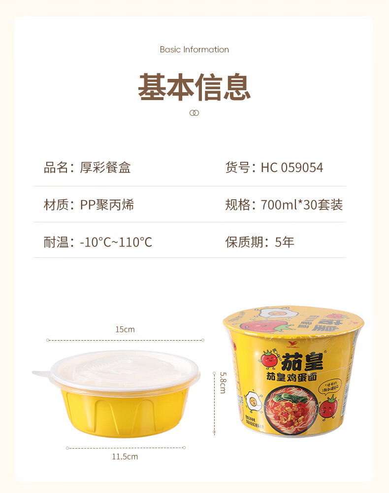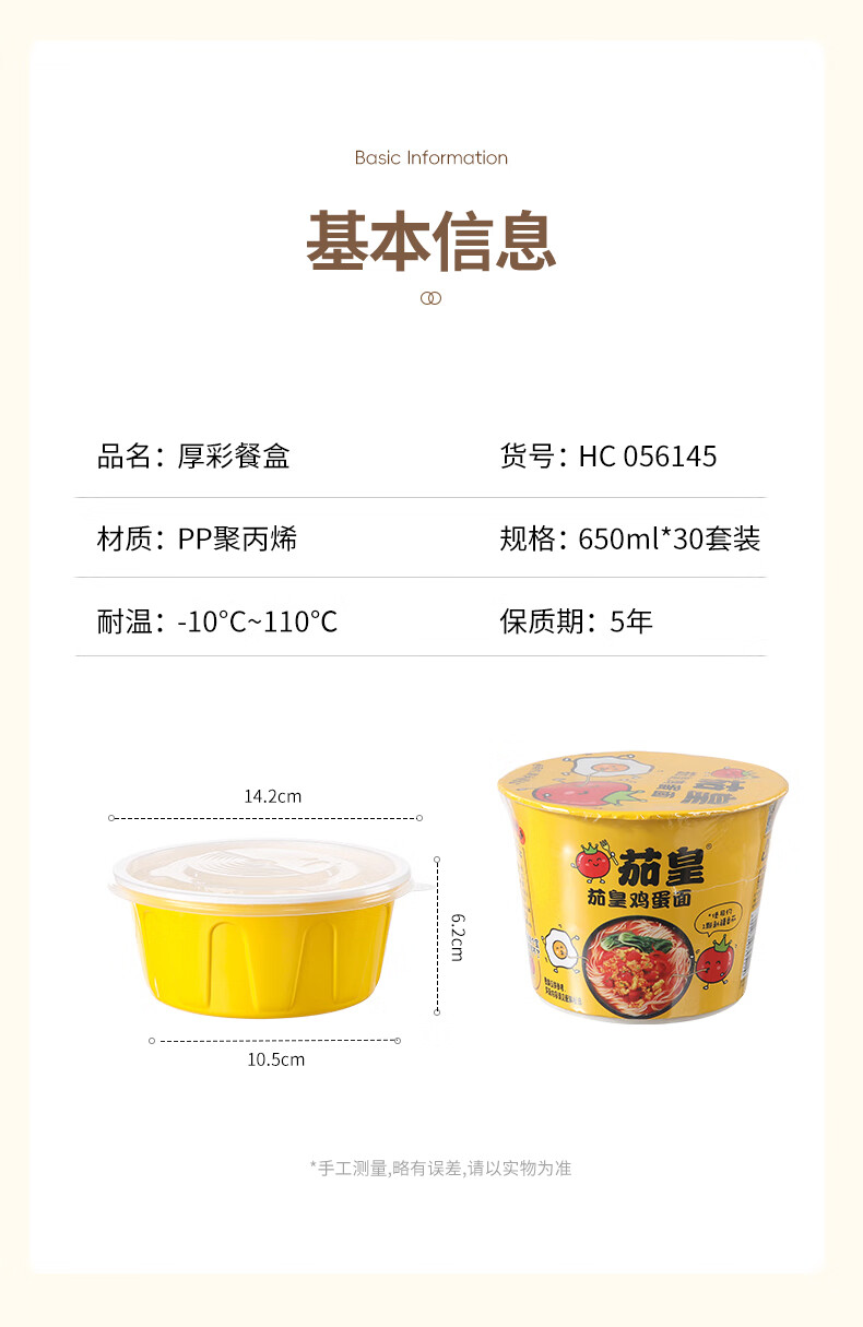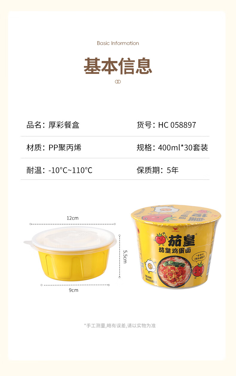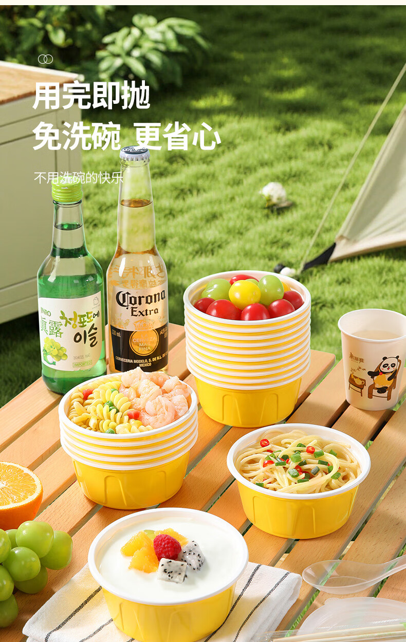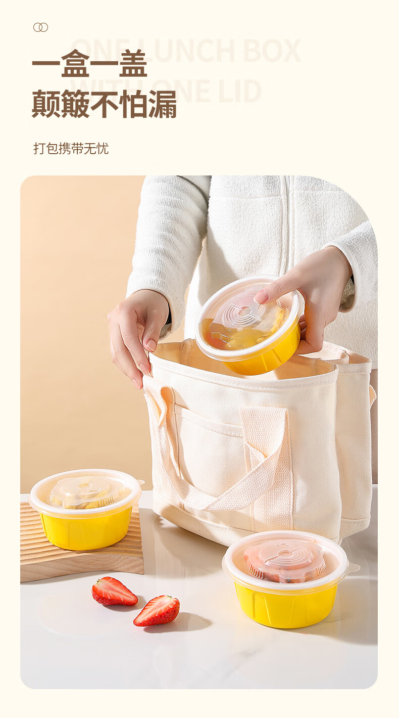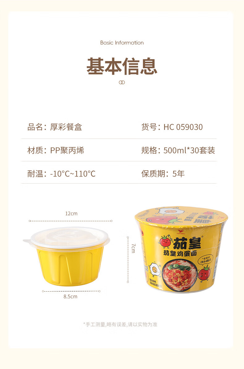 美丽雅一次性饭盒食品级餐盒带盖 快餐外卖打包厚彩餐盒碗 【圆形带盖】500ml* 30只
