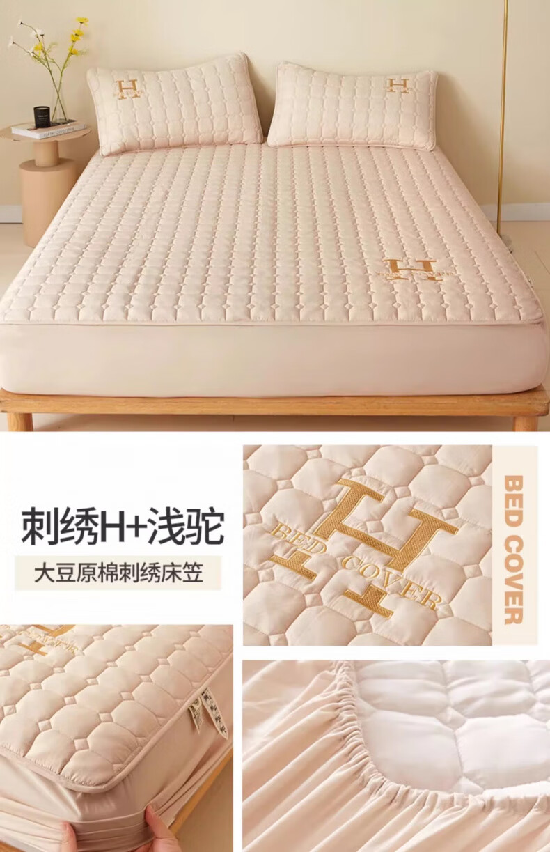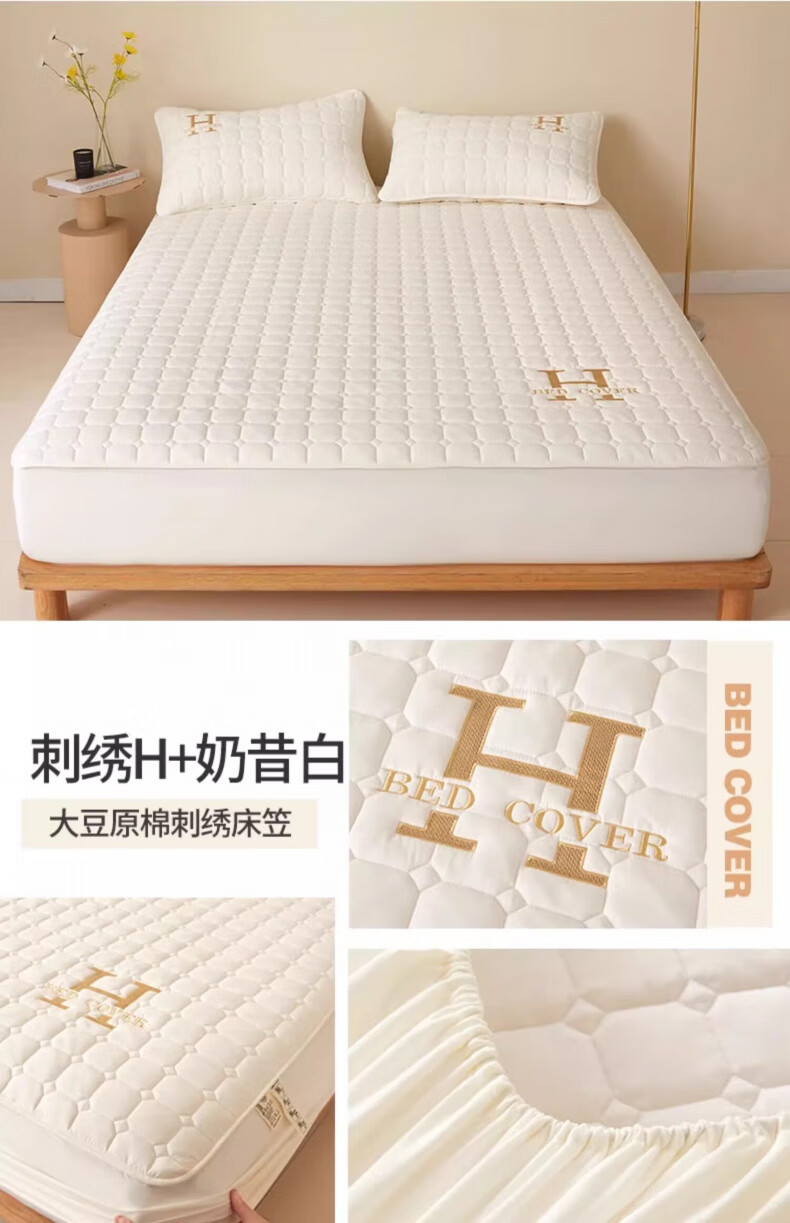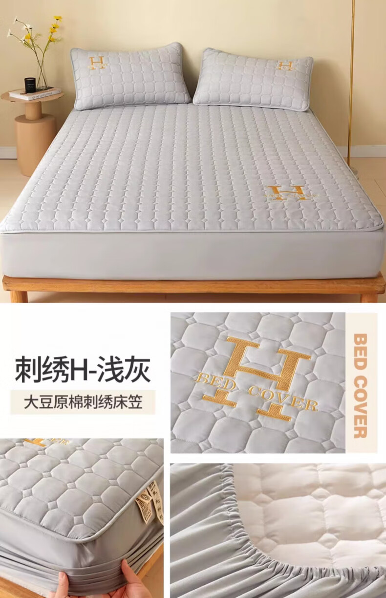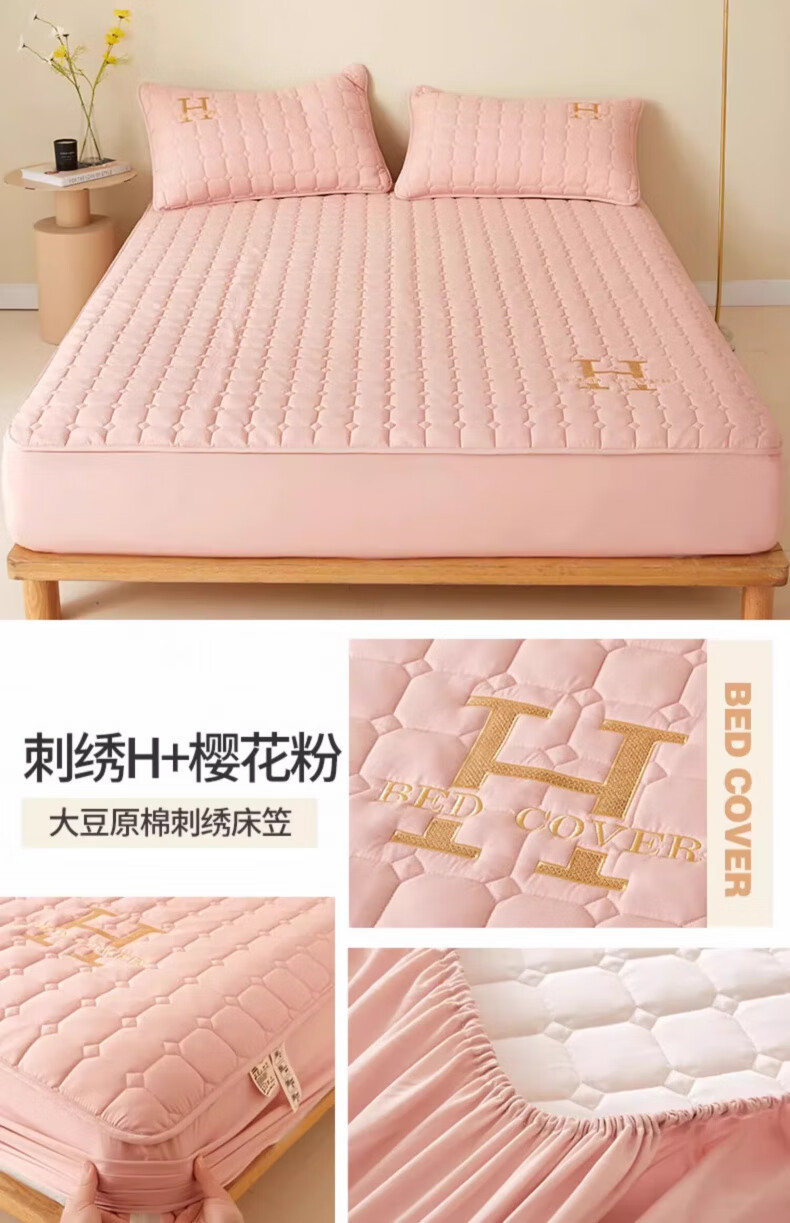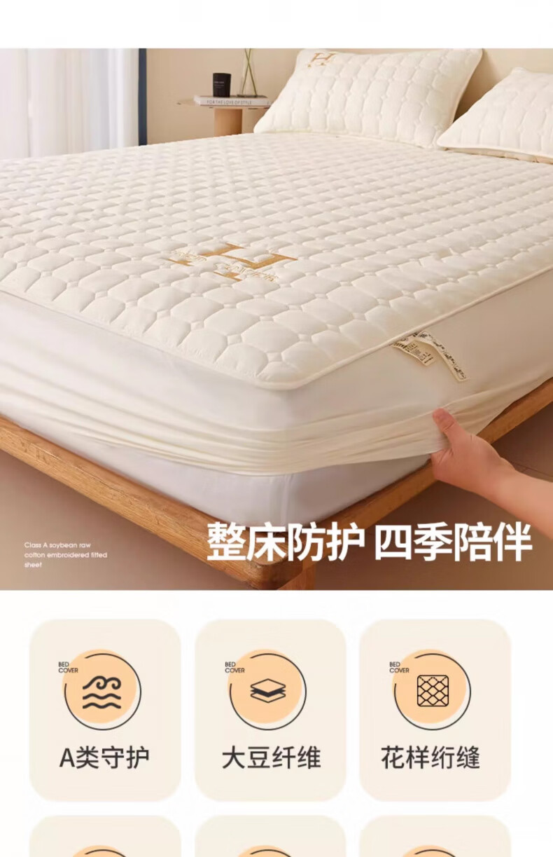 AILUKI日本全棉床笠A类母婴大豆纤维加厚夹棉防尘全包床笠罩 团购 床笠+枕套一对 180cm*200cm