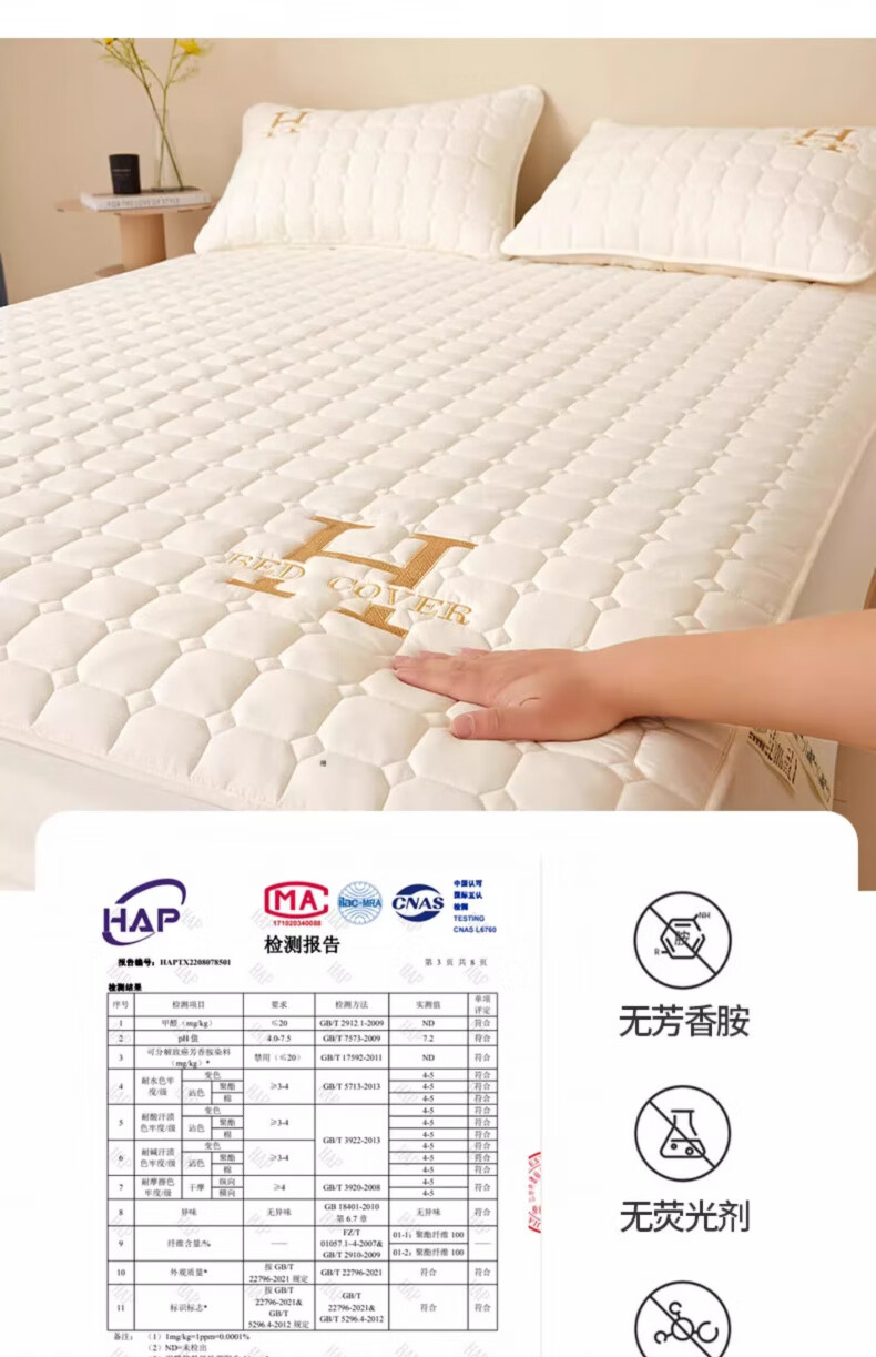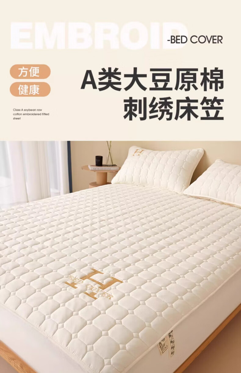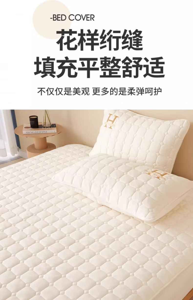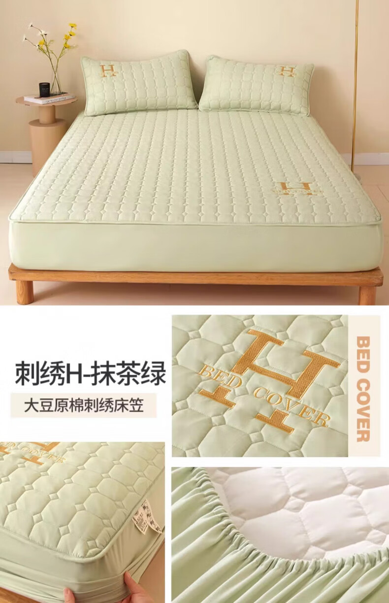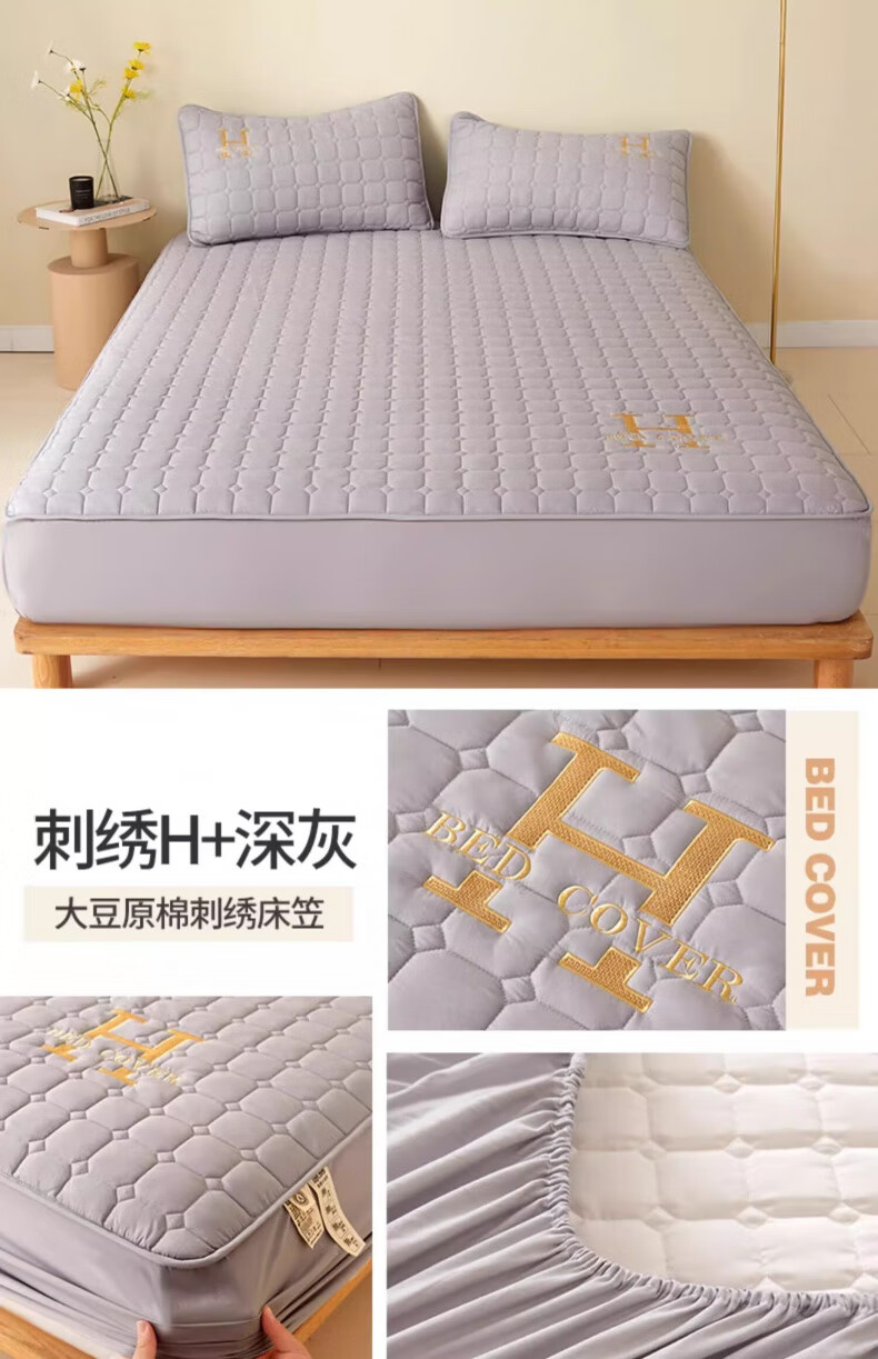 AILUKI日本全棉床笠A类母婴大豆纤维加厚夹棉防尘全包床笠罩 团购 床笠+枕套一对 180cm*200cm