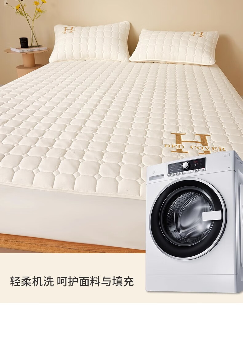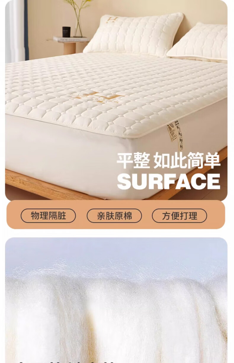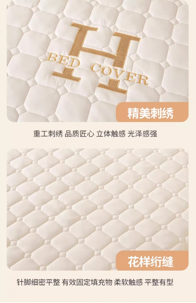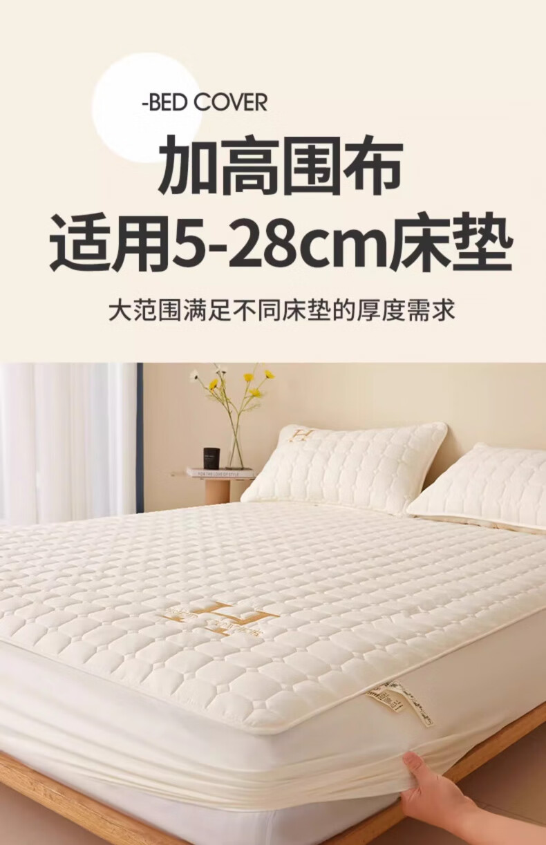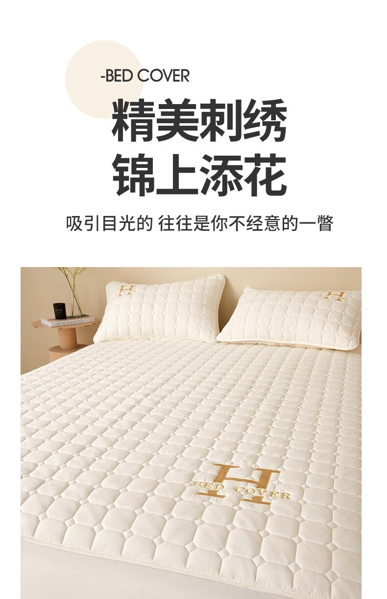 AILUKI日本全棉床笠A类母婴大豆纤维加厚夹棉防尘全包床笠罩 团购 床笠+枕套一对 180cm*200cm
