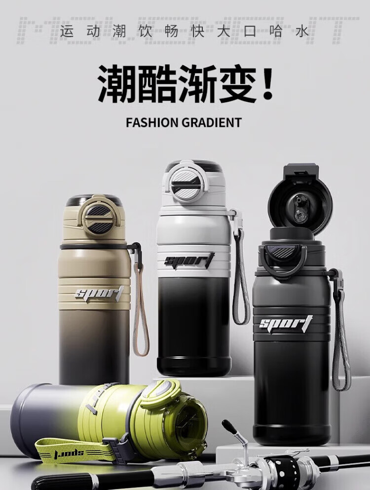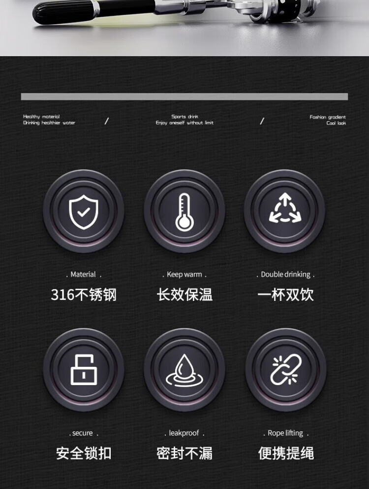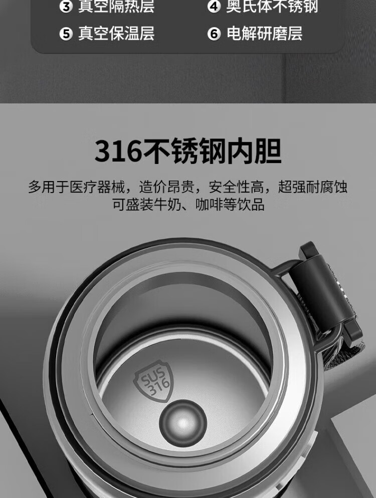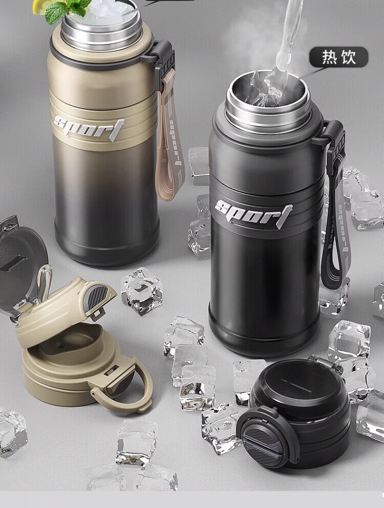 户璃德国保温杯大容量男款不锈钢户外保温壶便携车载旅行保冷水杯子 商务黑【升级手柄】 1ml 1000ml
