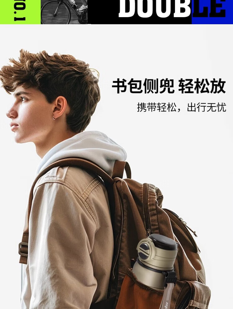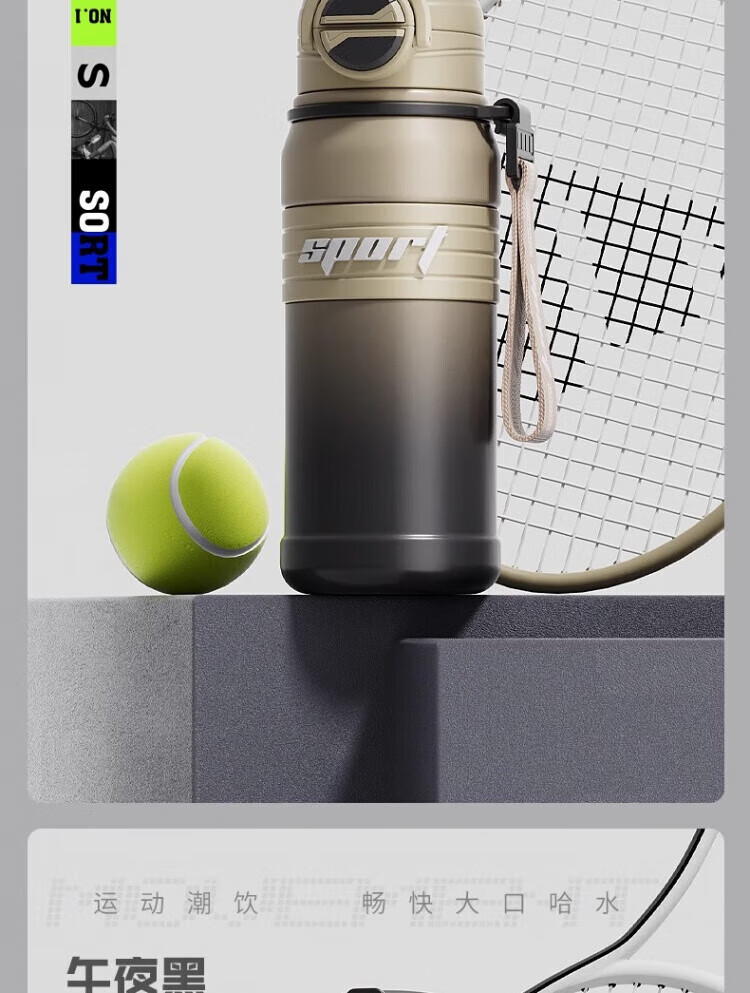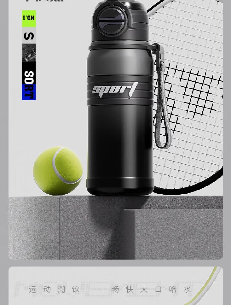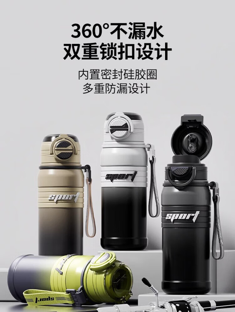 DEATKN德国高端青少年保温杯儿童上学男孩初高中生2025新款大容量水杯 午夜黑【德国316/保温48H】 680ml