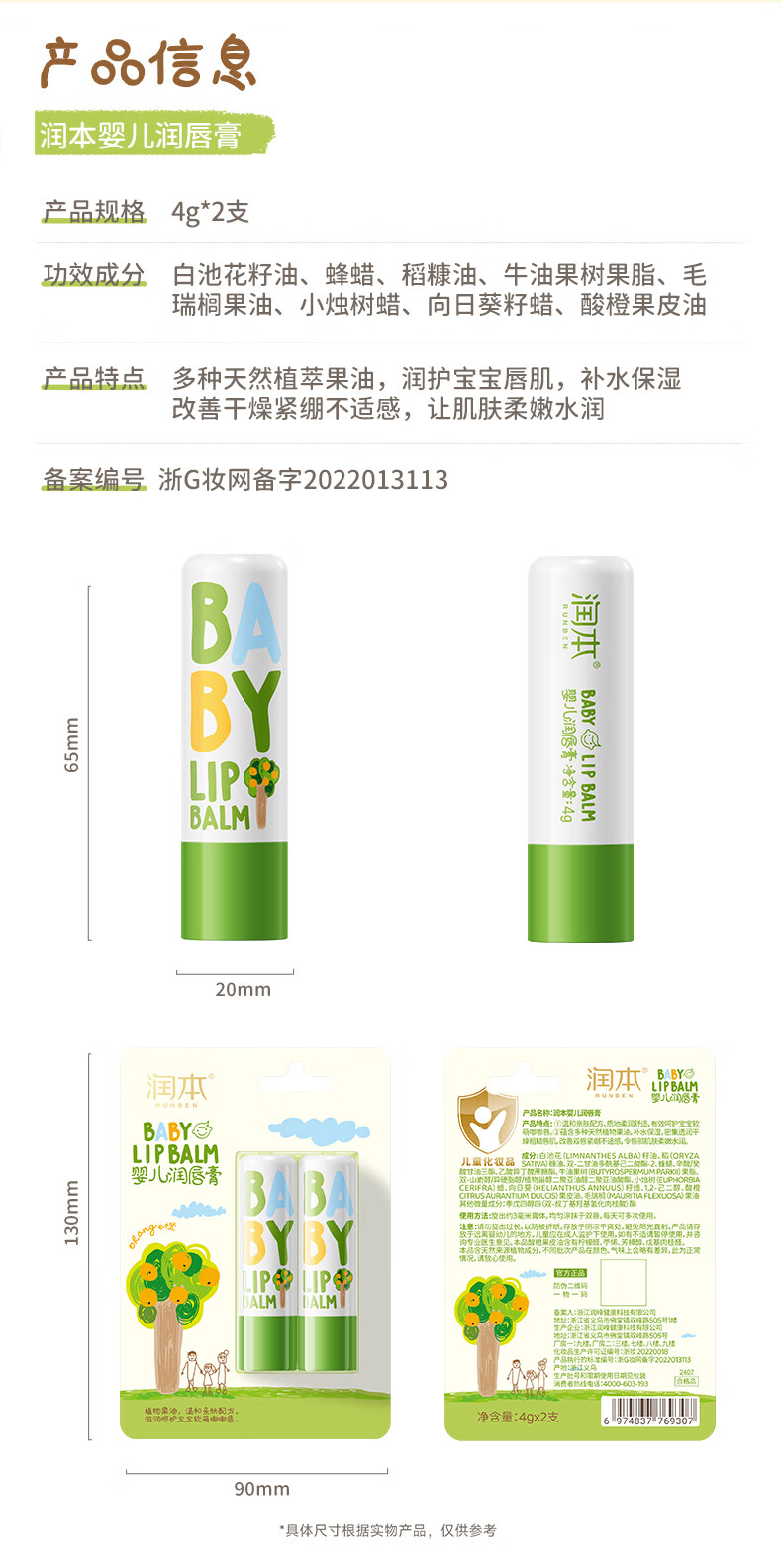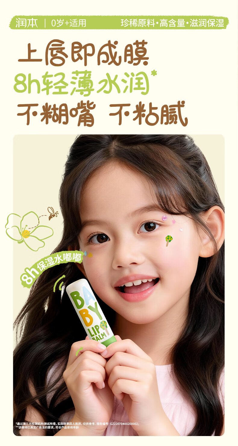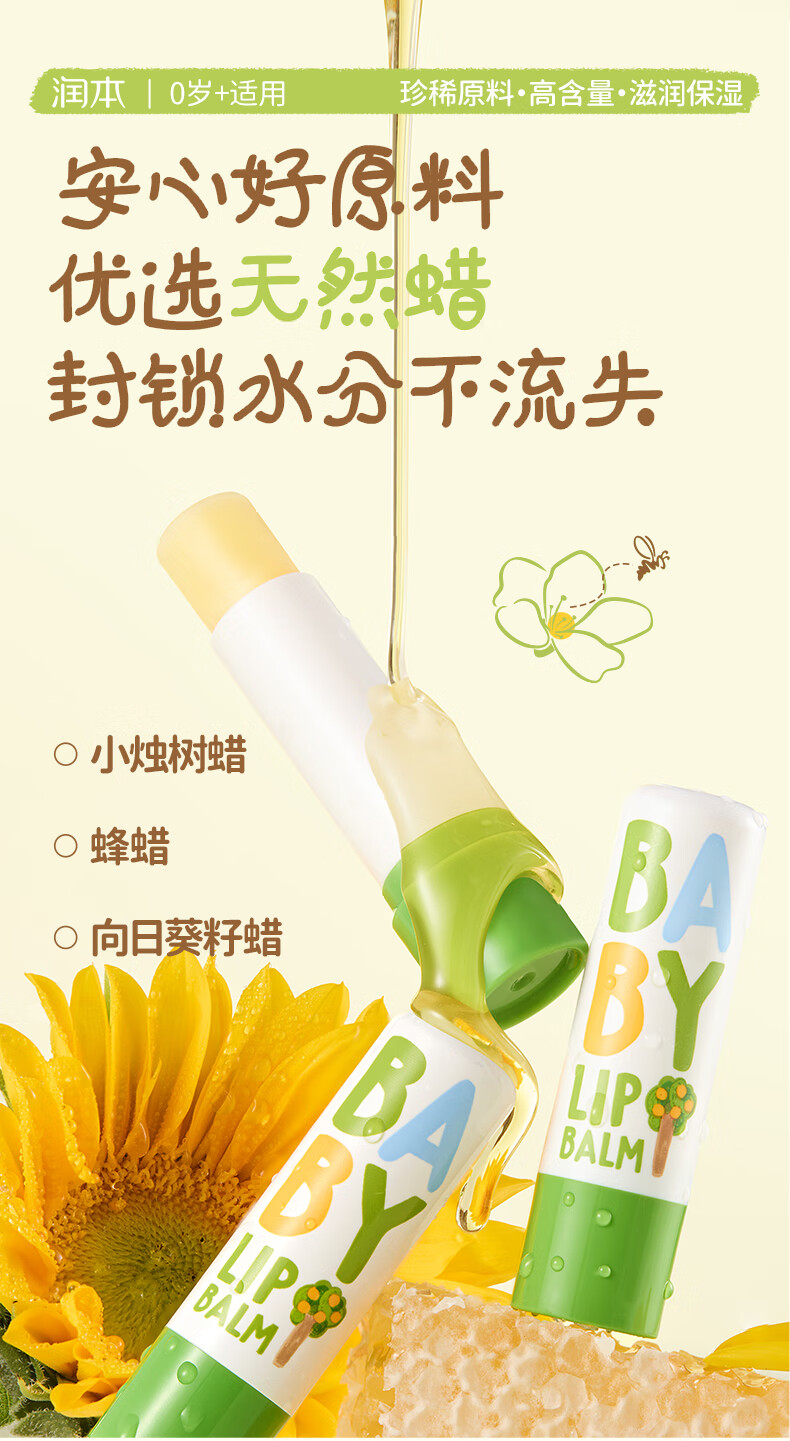 润本(RUNBEN)婴儿护唇膏4g*2支儿童唇膏 宝宝润唇膏 滋润保湿防干裂 无香型