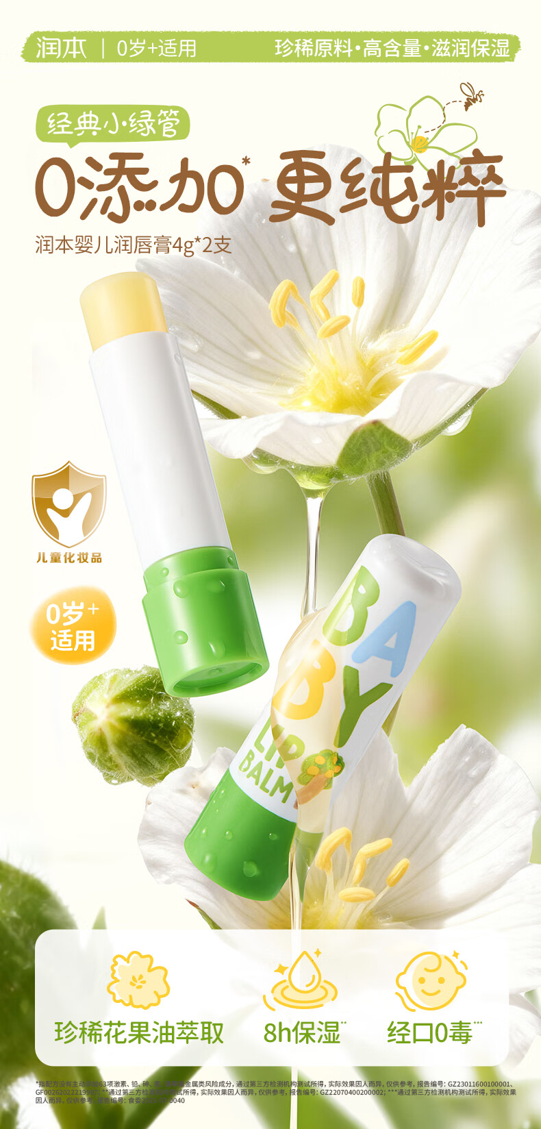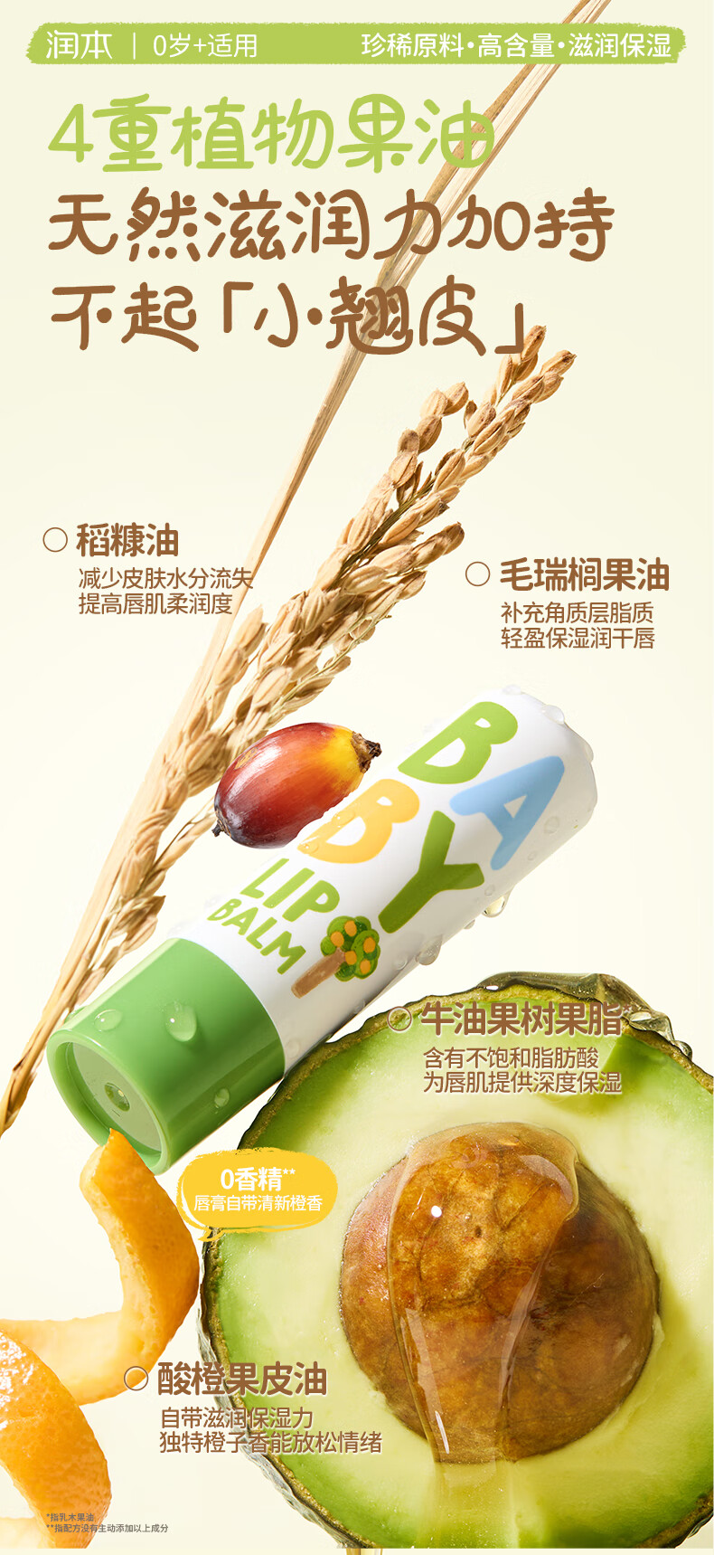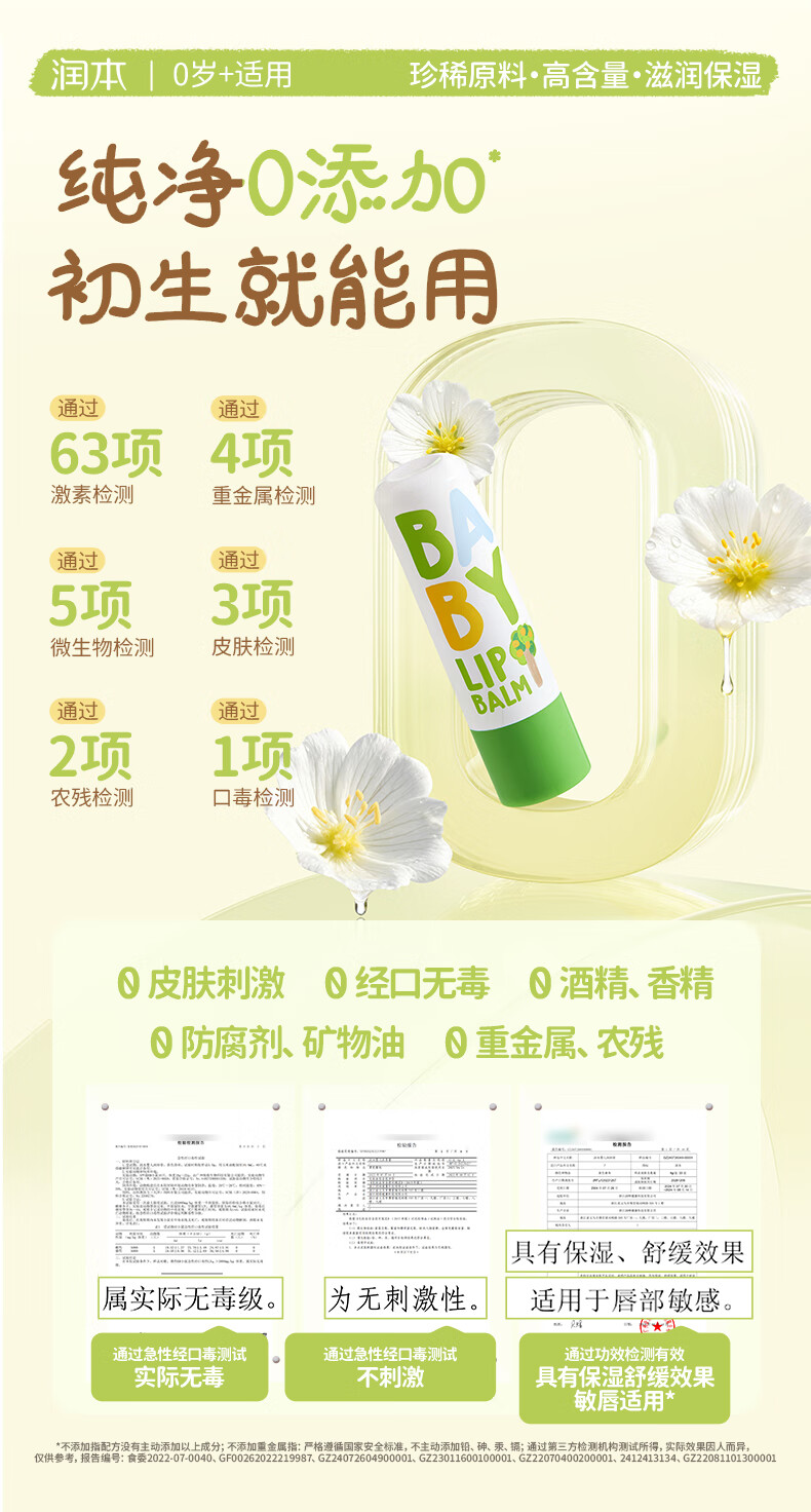 润本(RUNBEN)婴儿护唇膏4g*2支儿童唇膏 宝宝润唇膏 滋润保湿防干裂 无香型
