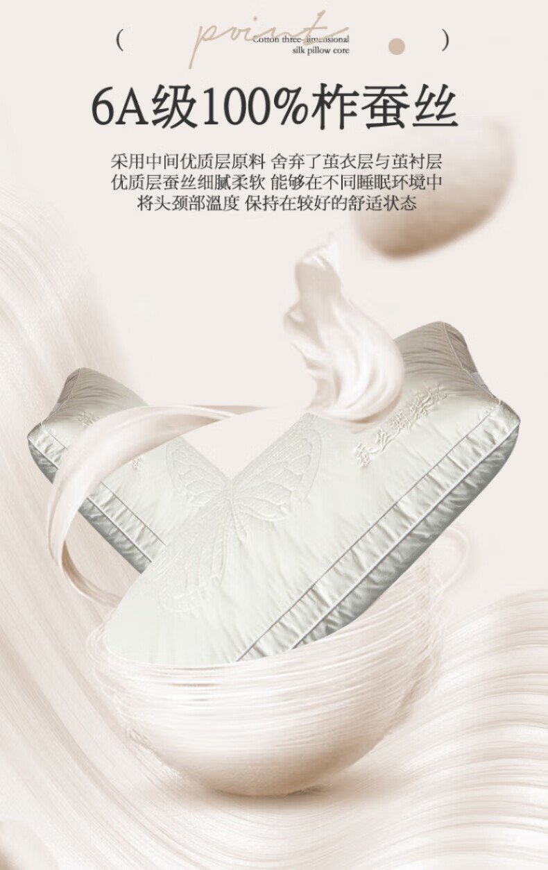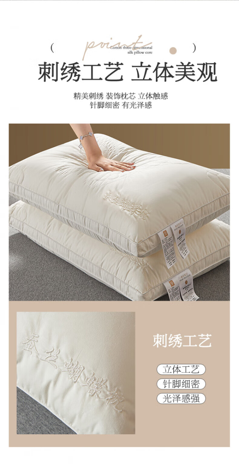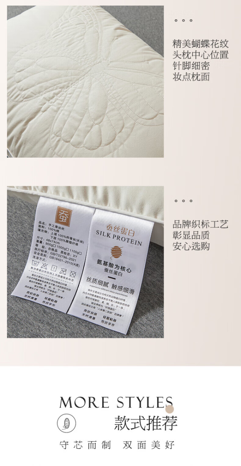 WCZ德国五星级酒店专用蚕丝枕枕头枕芯整头单人家用一对 蝴蝶蚕丝枕-单边-低枕1只-睡下高度6-7cm