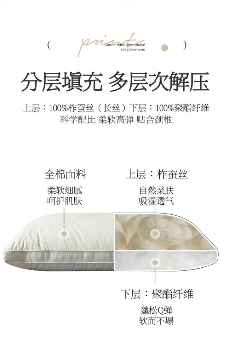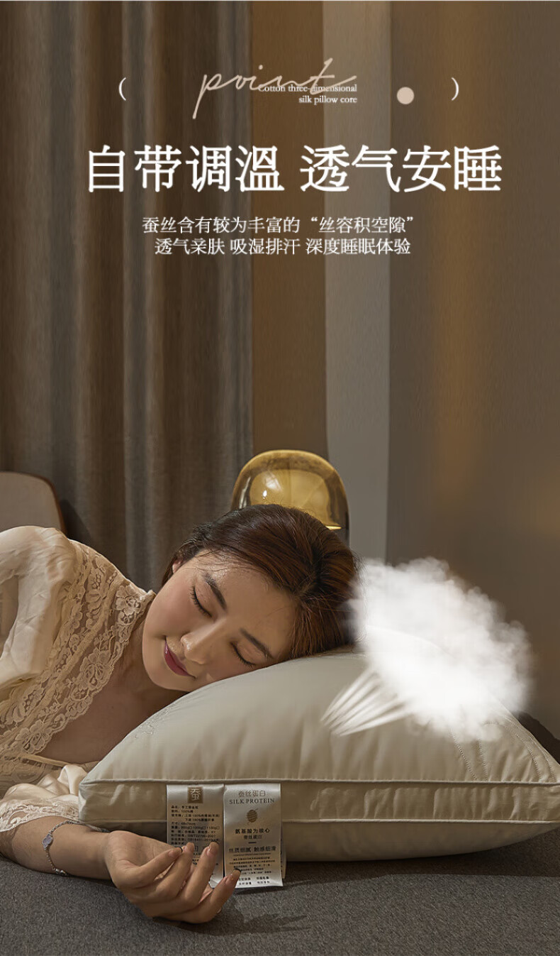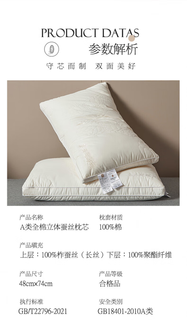 WCZ德国五星级酒店专用蚕丝枕枕头枕芯整头单人家用一对 蝴蝶蚕丝枕-单边-低枕1只-睡下高度6-7cm