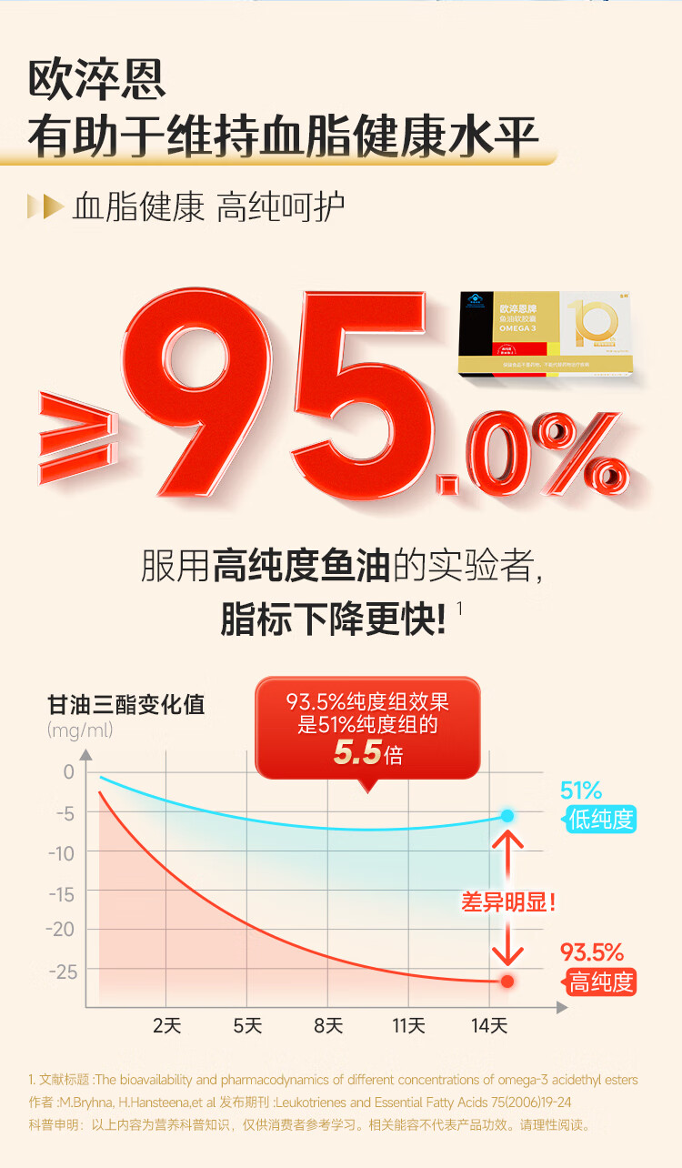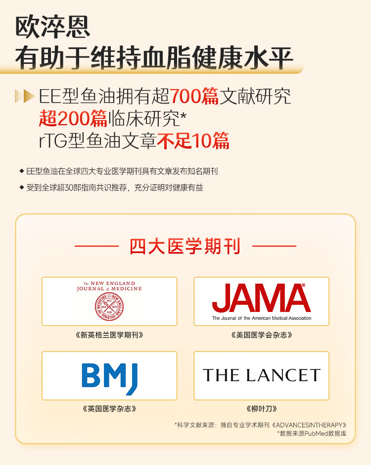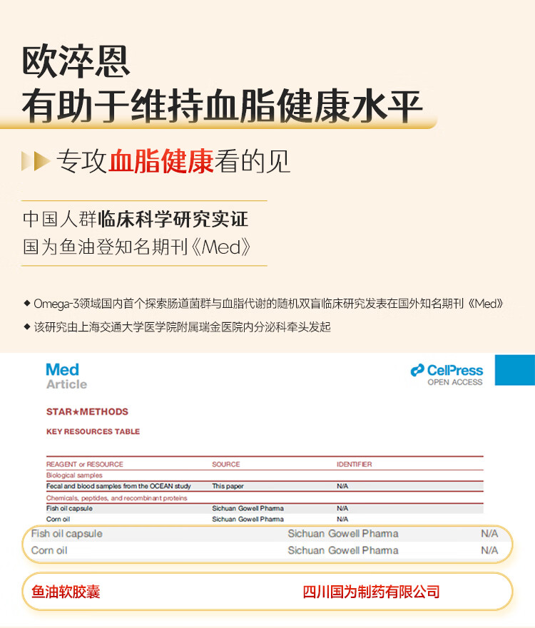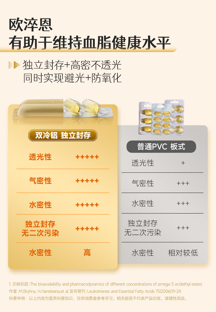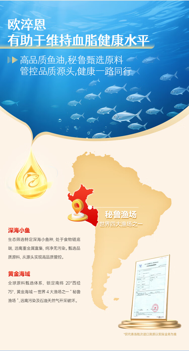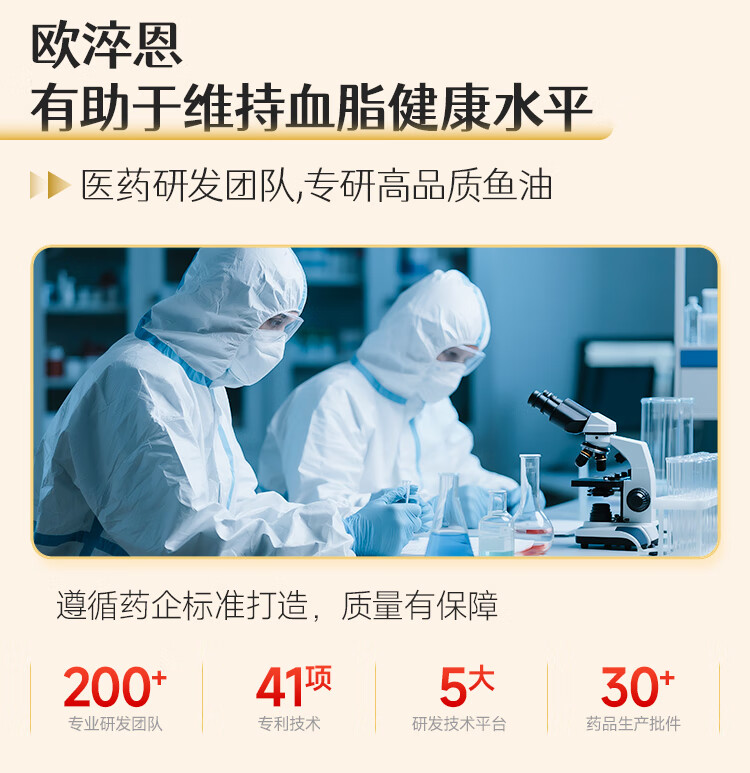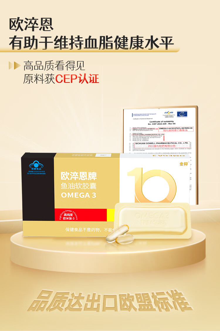 欧淬恩深海鱼油95%高纯度鱼肝油高含量omega3中老年易吞服送礼降血脂压 48粒*5盒【下单赠礼盒送礼优选】