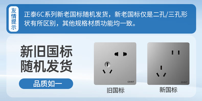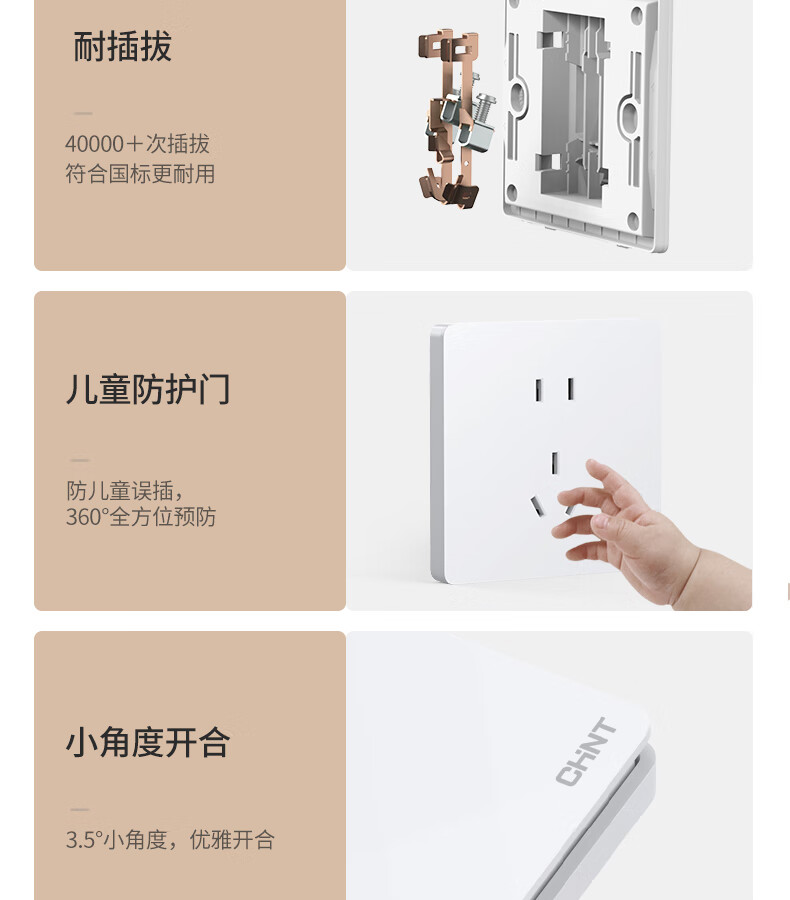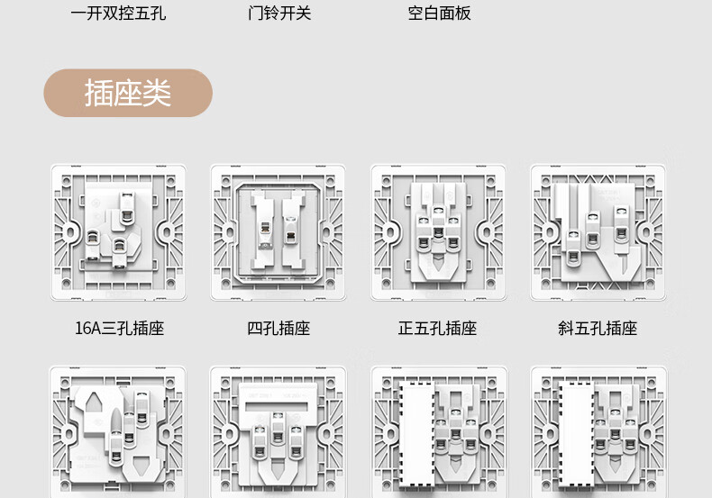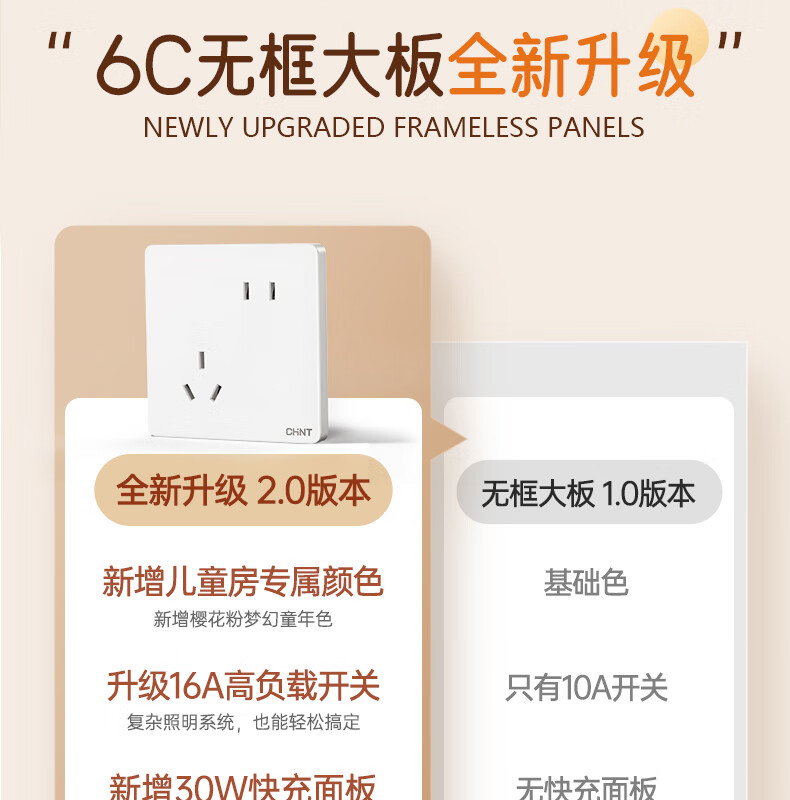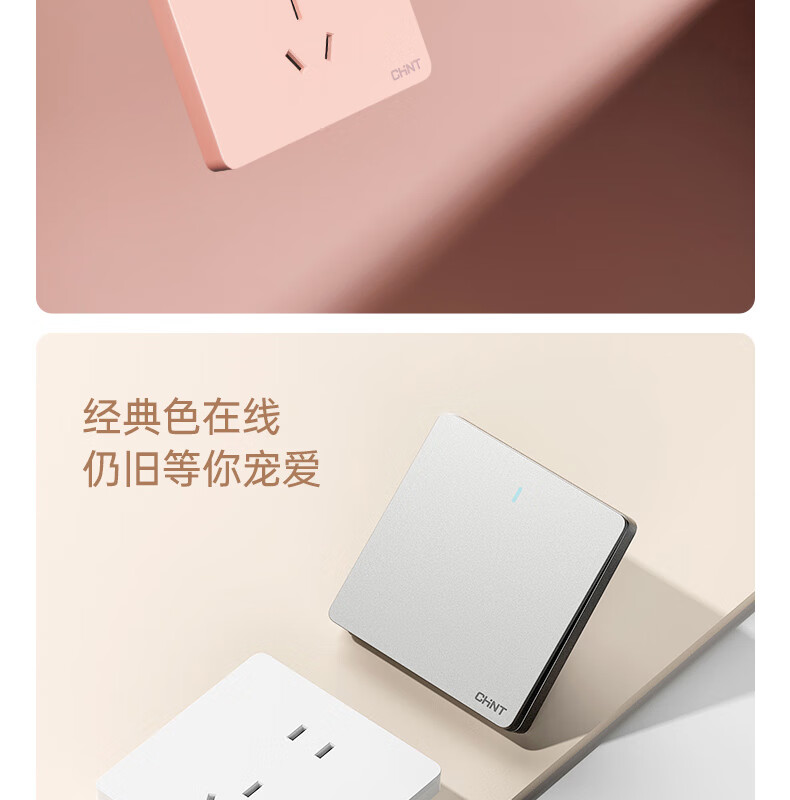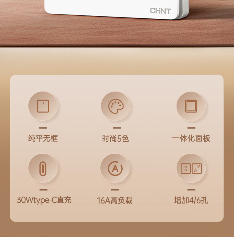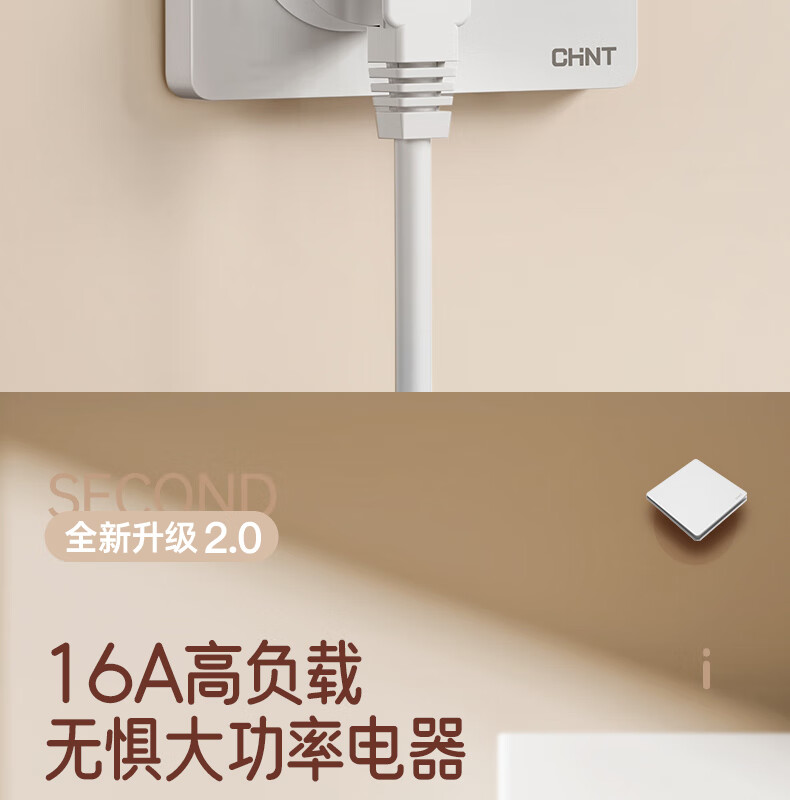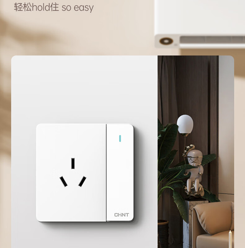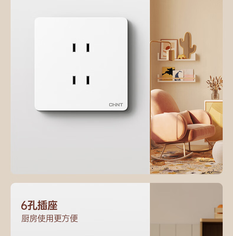 正泰(CHNT)开关插座6C奶油风 家用86型斜五孔插座面板暗装插座纯平大板 白色 斜五孔10A