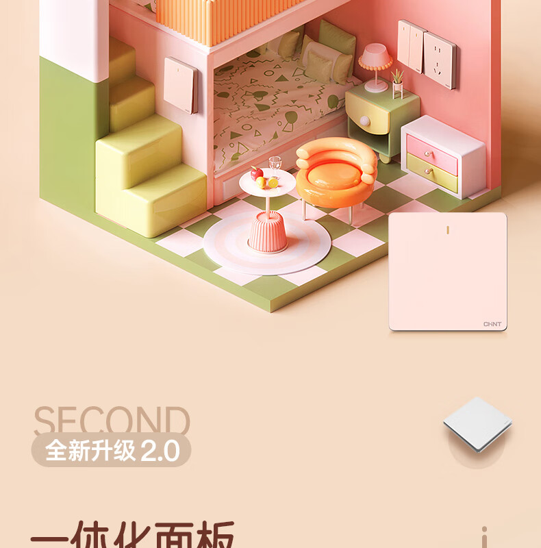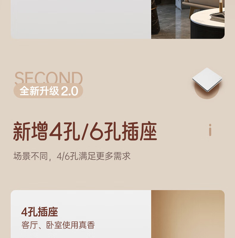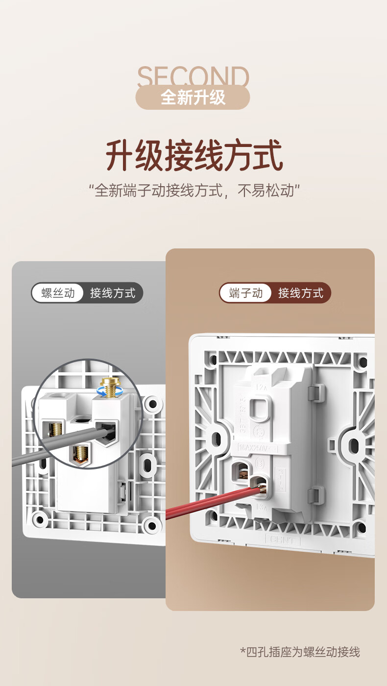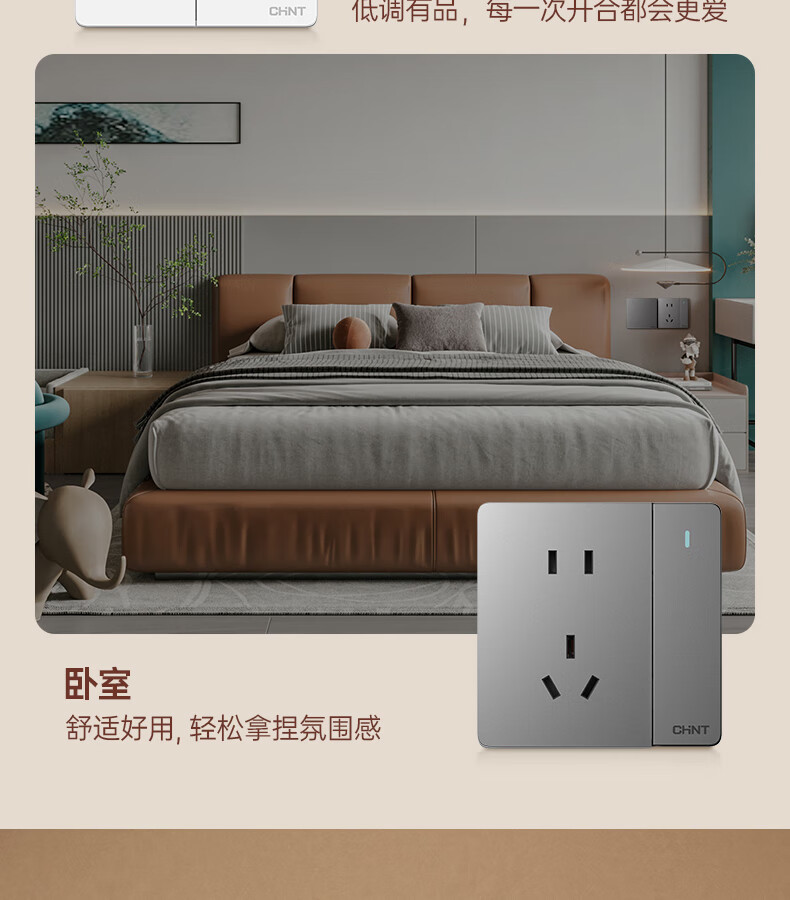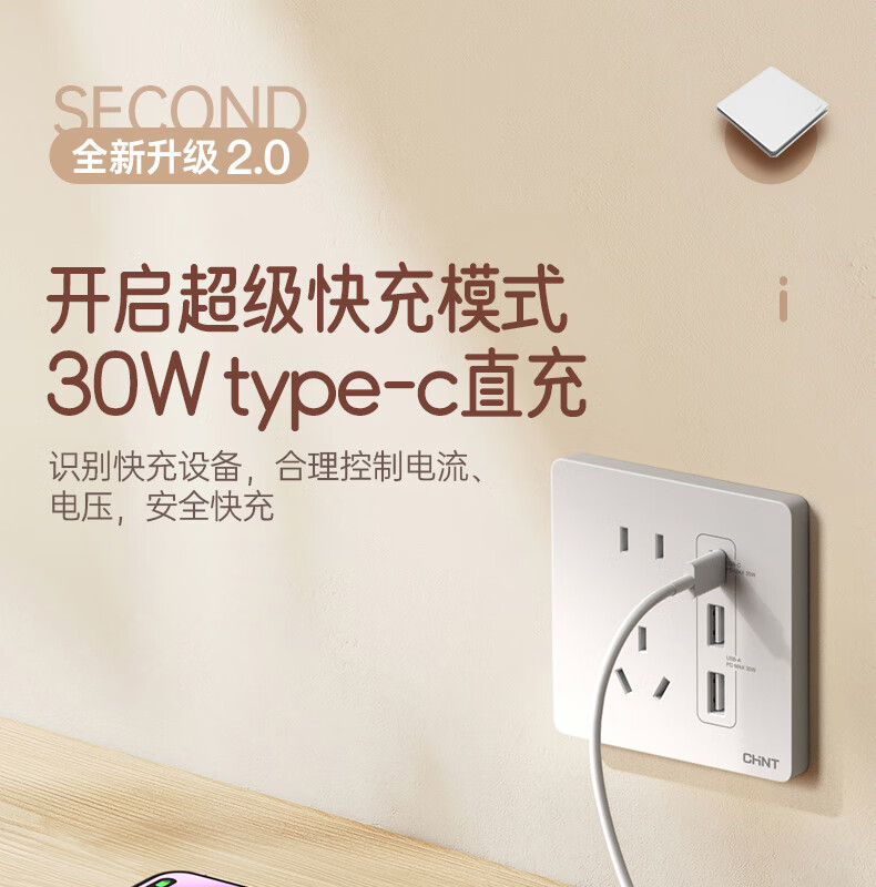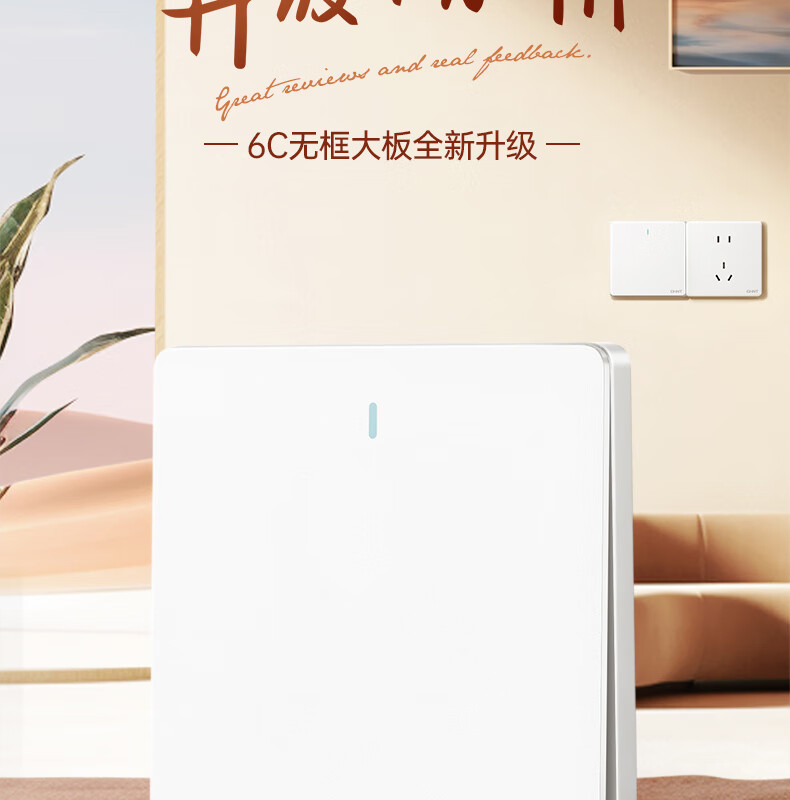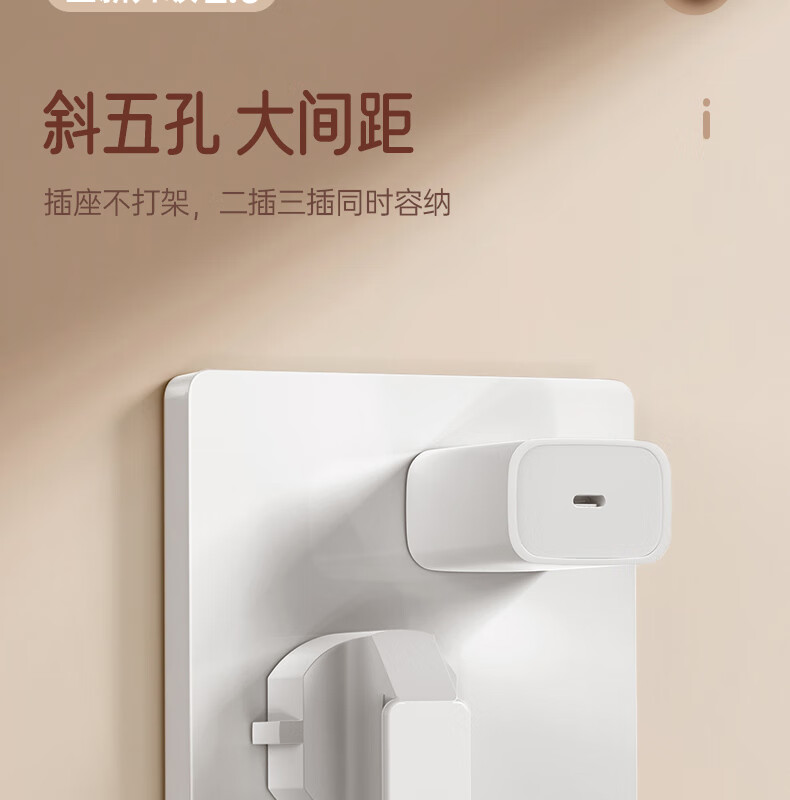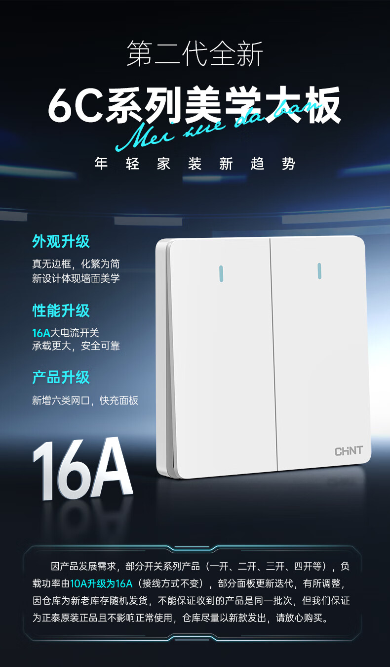 正泰(CHNT)开关插座6C奶油风 家用86型斜五孔插座面板暗装插座纯平大板 白色 斜五孔10A