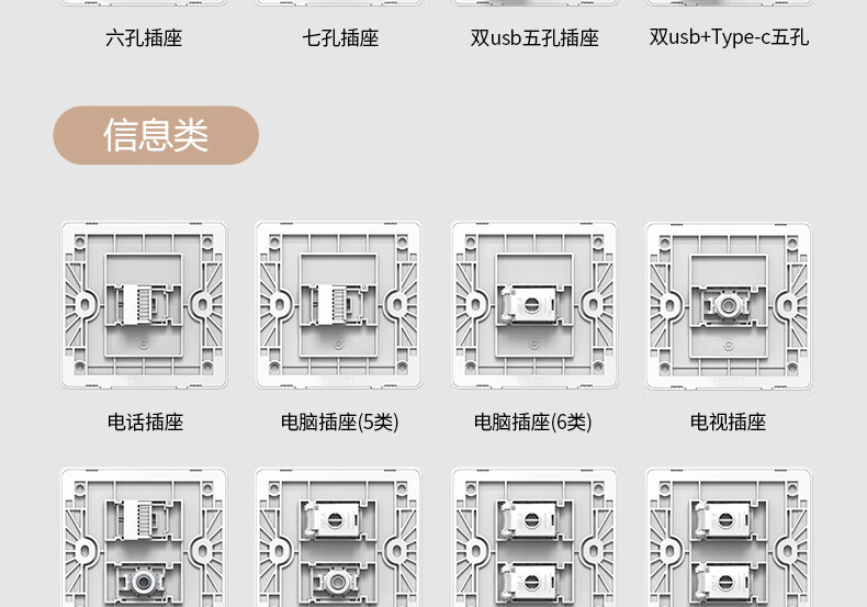 国际电工86型多位连体插座家用多孔面板二位十孔三位15孔四位开关墙插座 4位五孔+1位电视电脑-白色