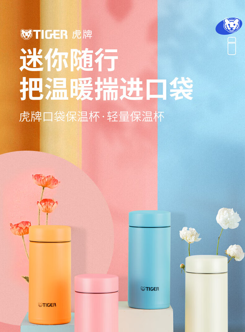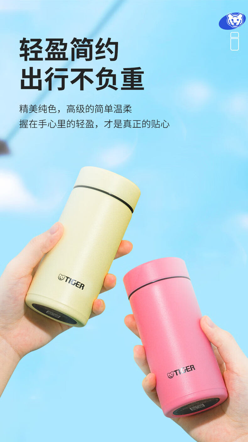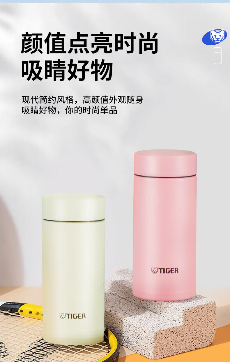 虎牌(TIGER)迷你口袋杯轻量便携双层真空保温保冷杯MMP-B20C-CZ海岸黄200ml