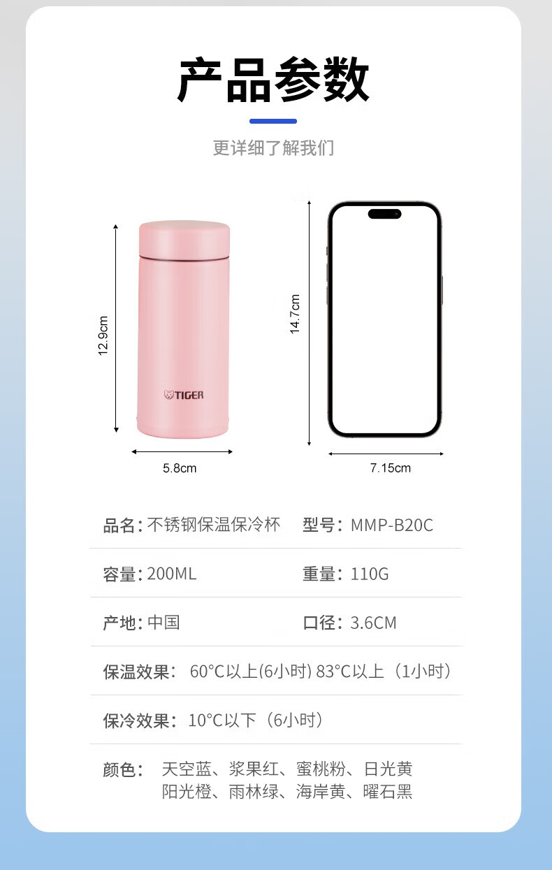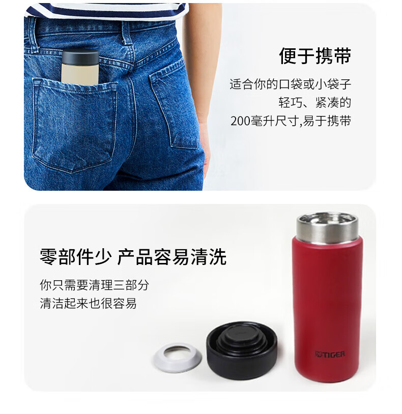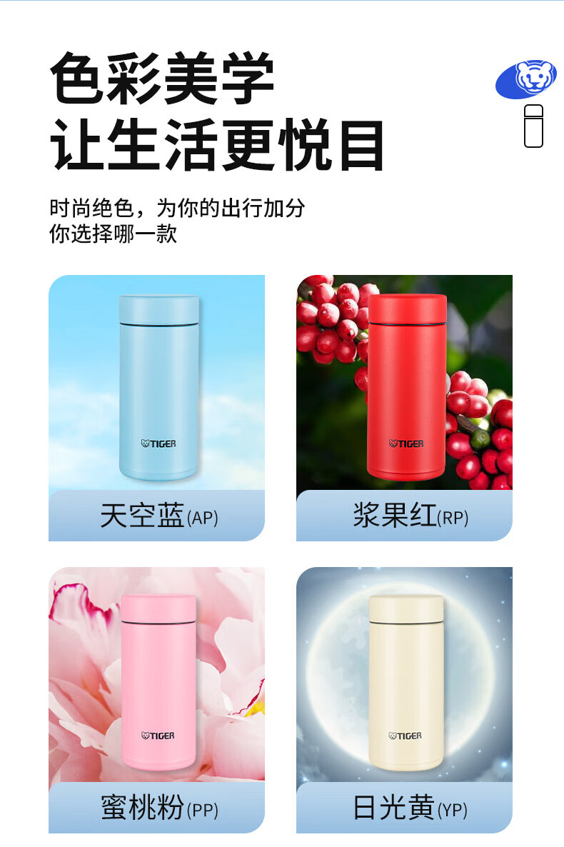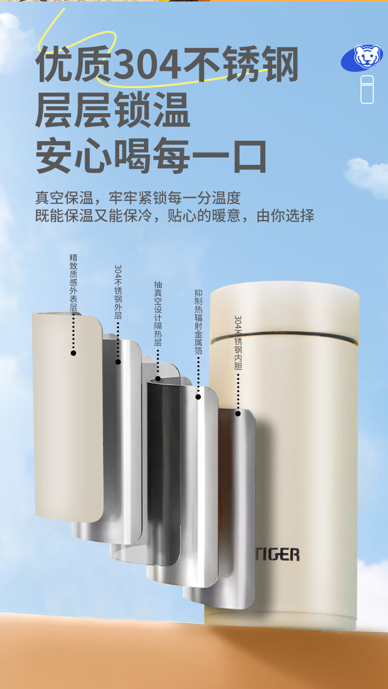 虎牌(TIGER)迷你口袋杯轻量便携双层真空保温保冷杯MMP-B20C-CZ海岸黄200ml