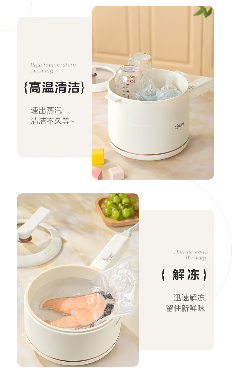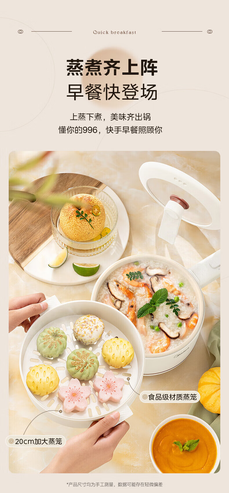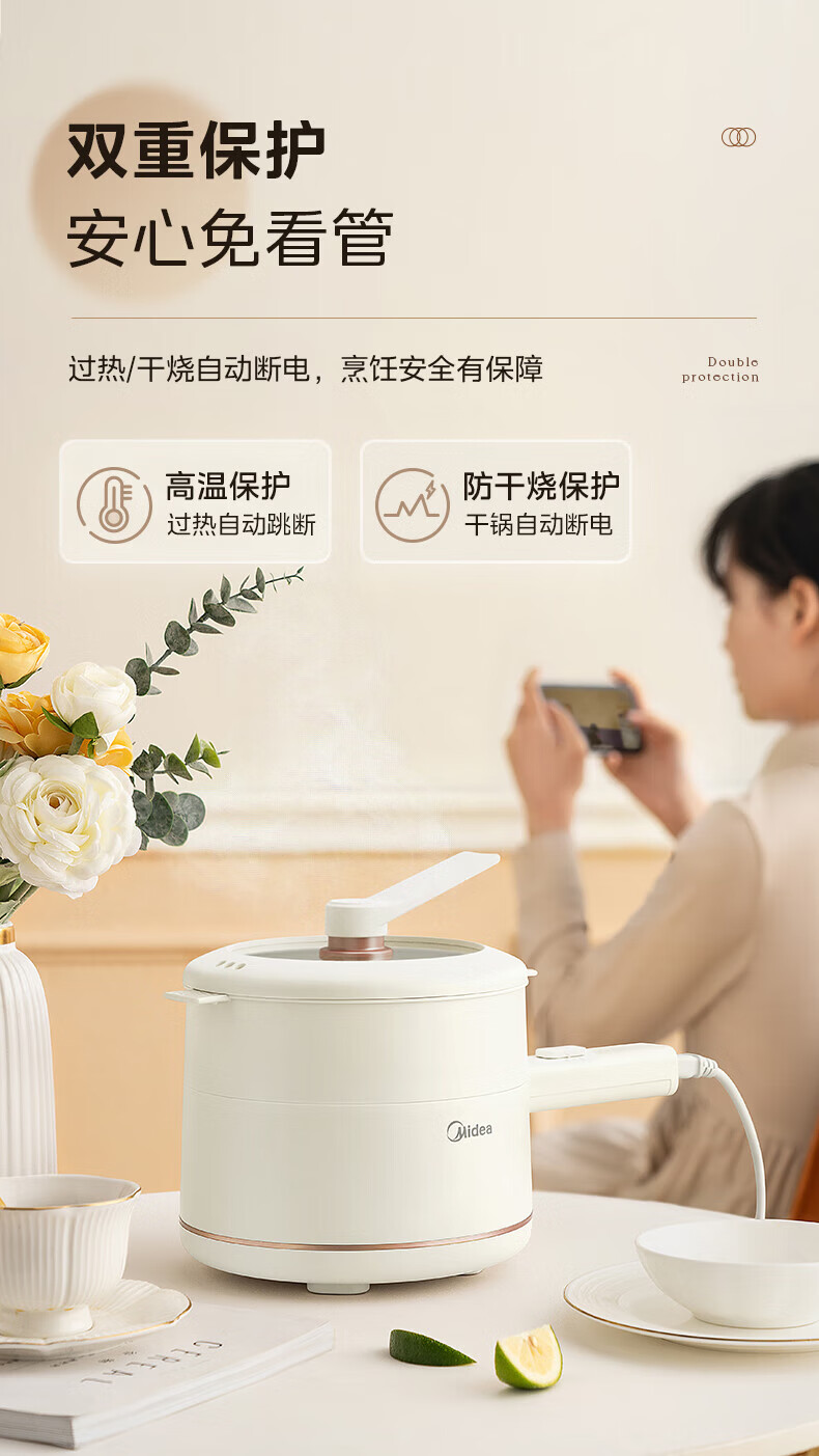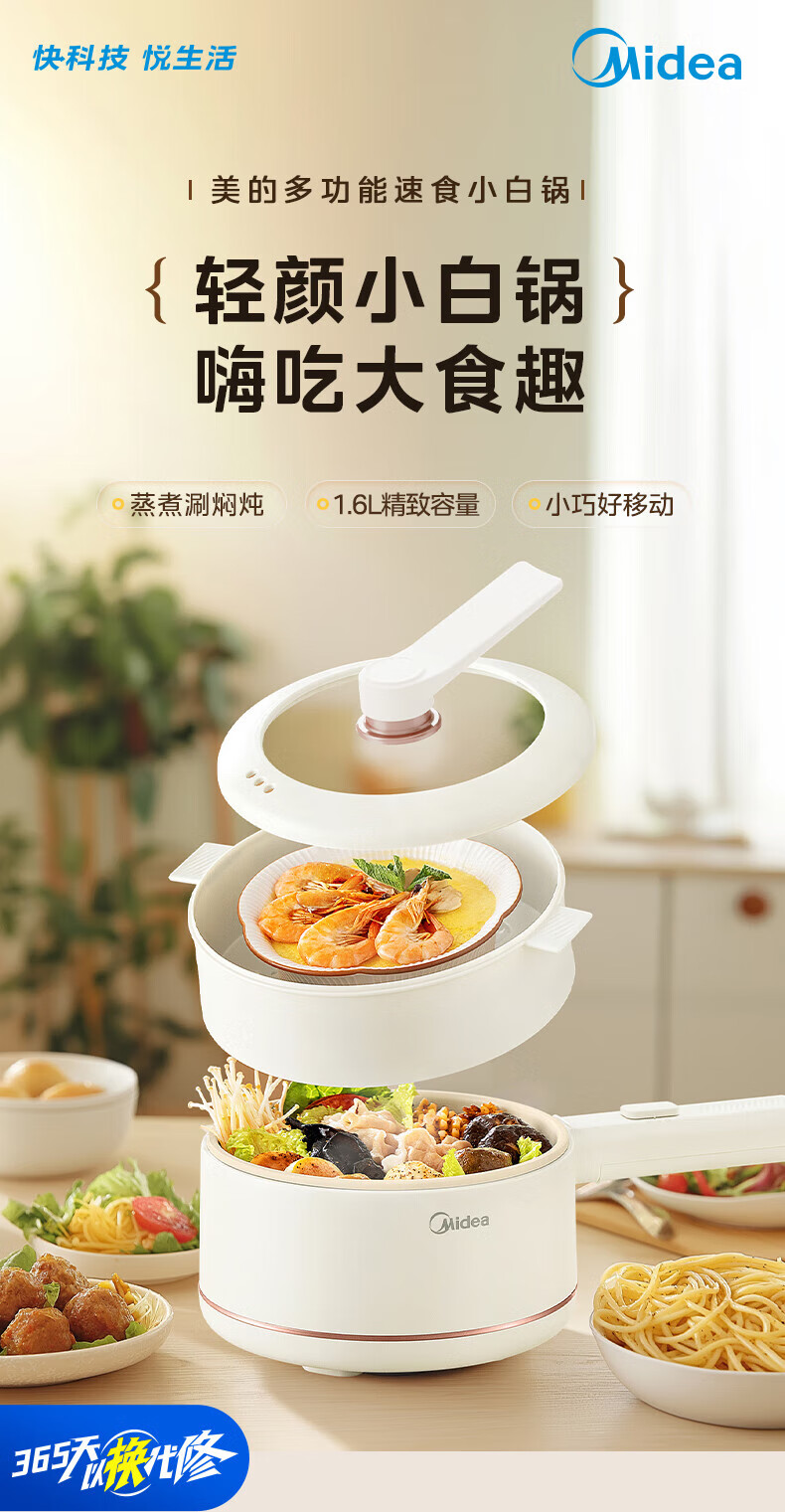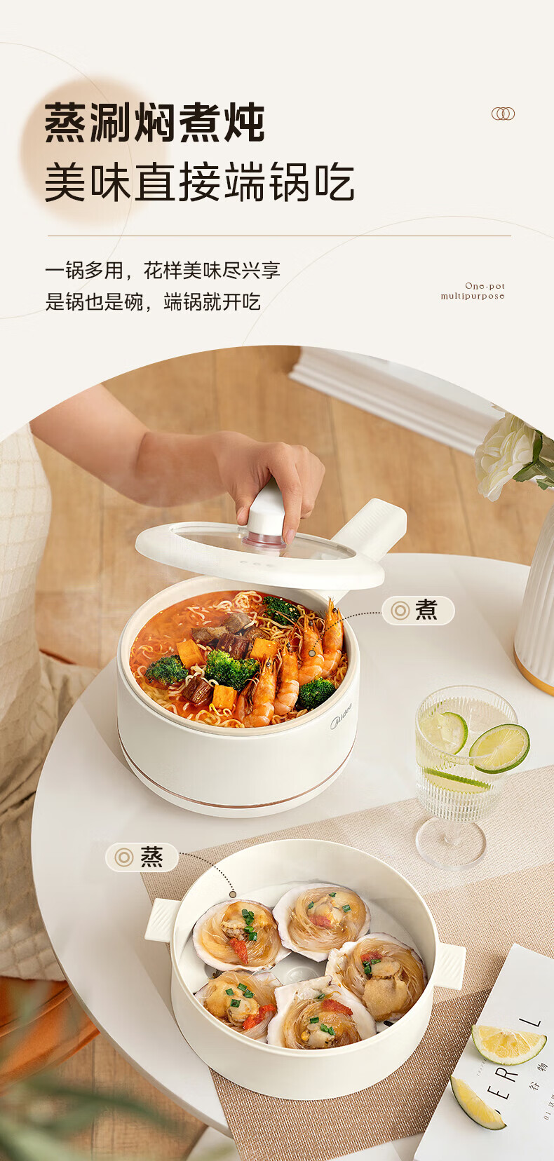 美的(Midea)电煮锅 小电锅 宿舍小锅 电热锅 学生宿舍泡面电火锅 多功能多用途 电蒸锅 不粘涂层内胆 1.6L 【带蒸笼】MC-XZE2017