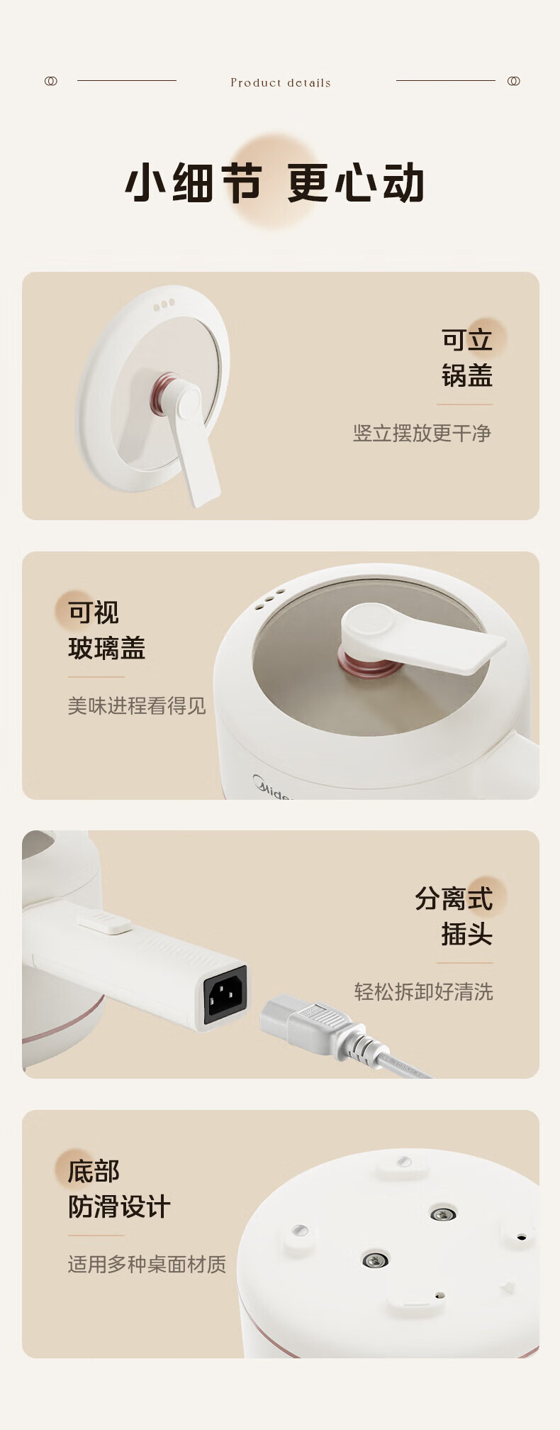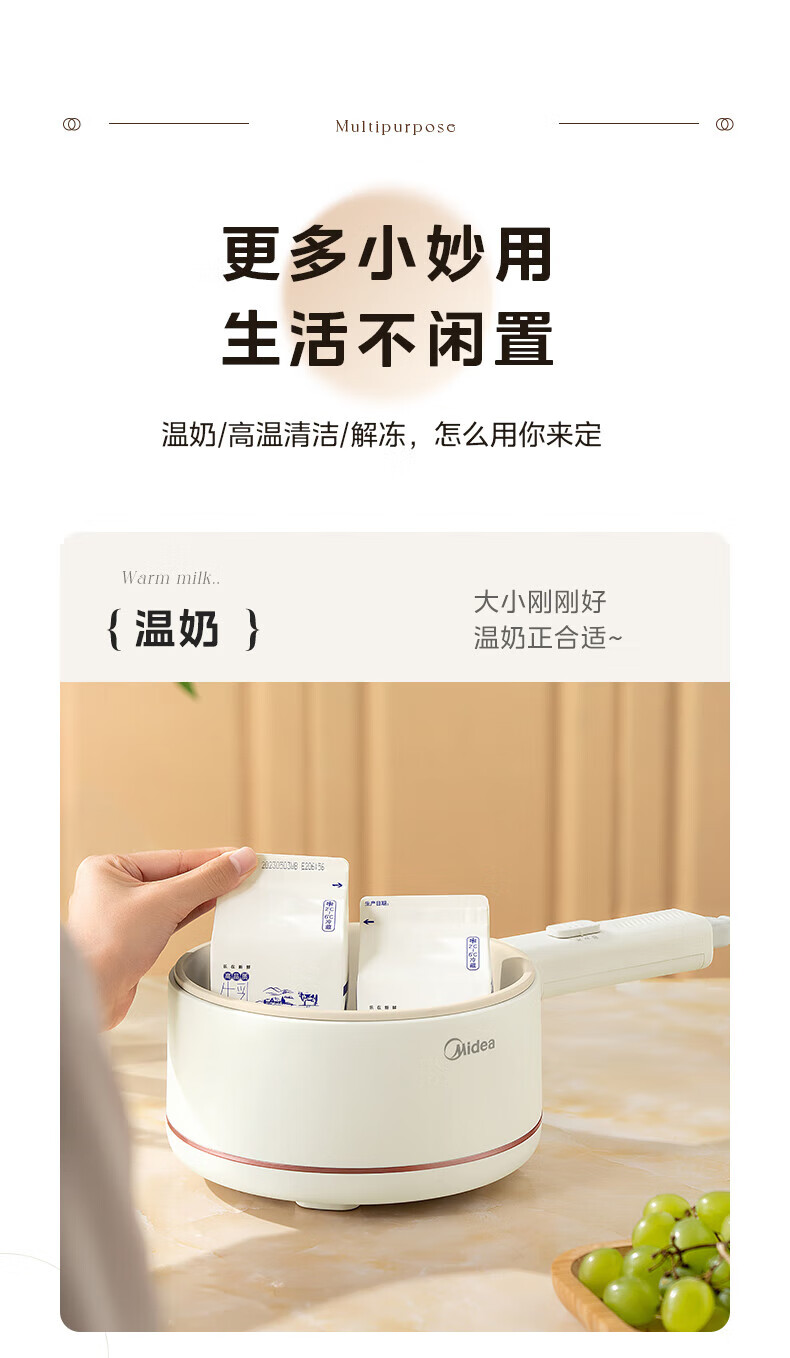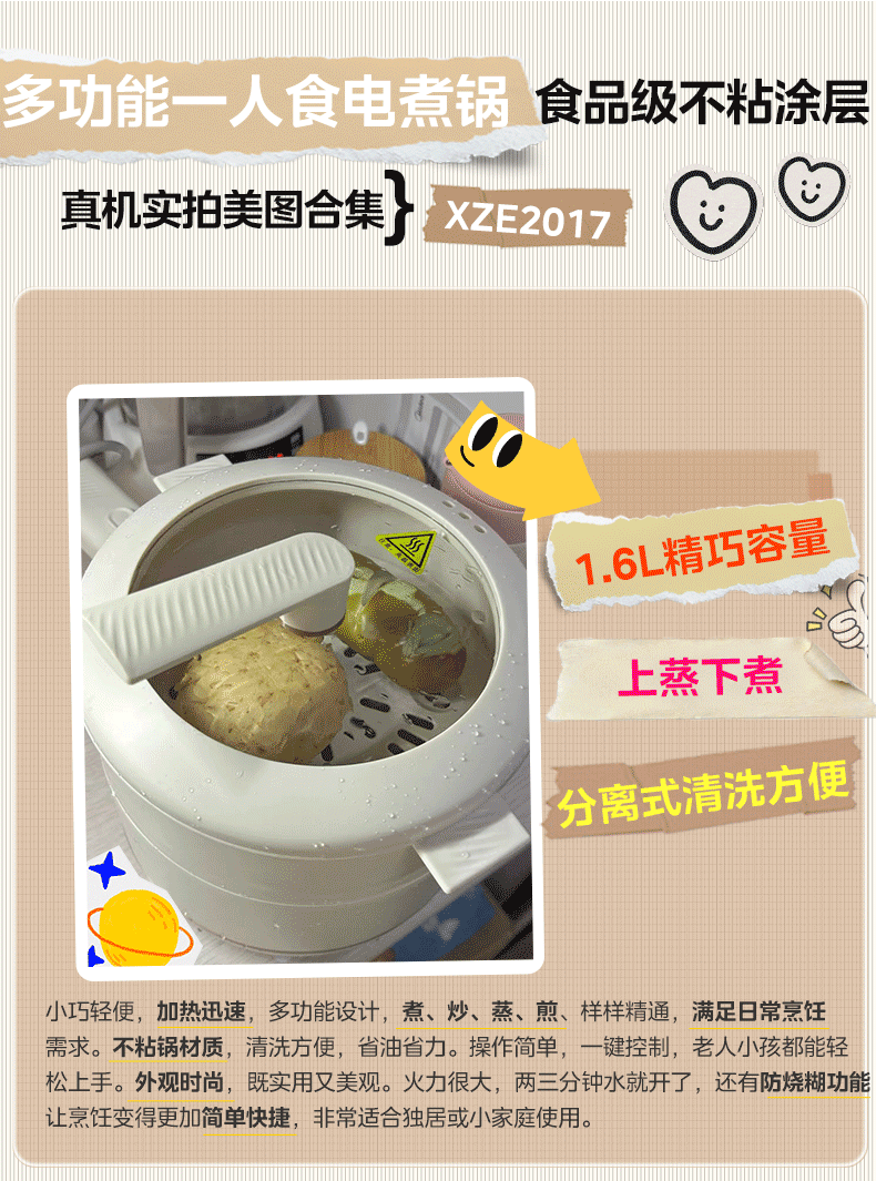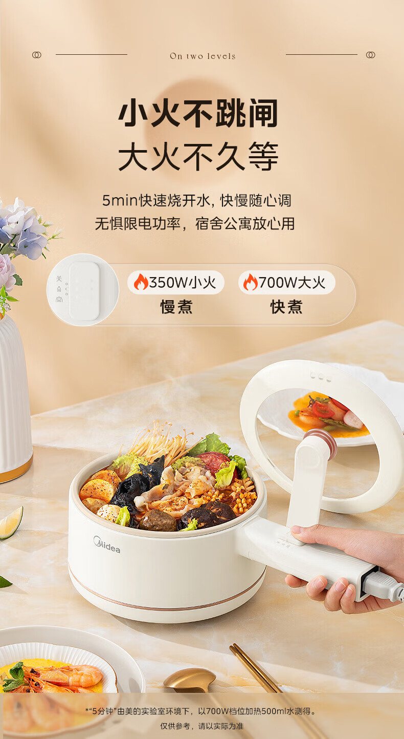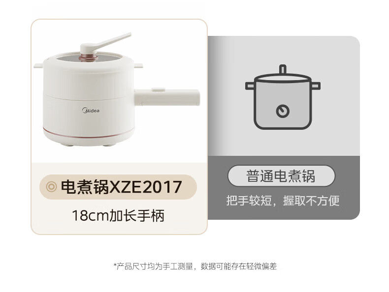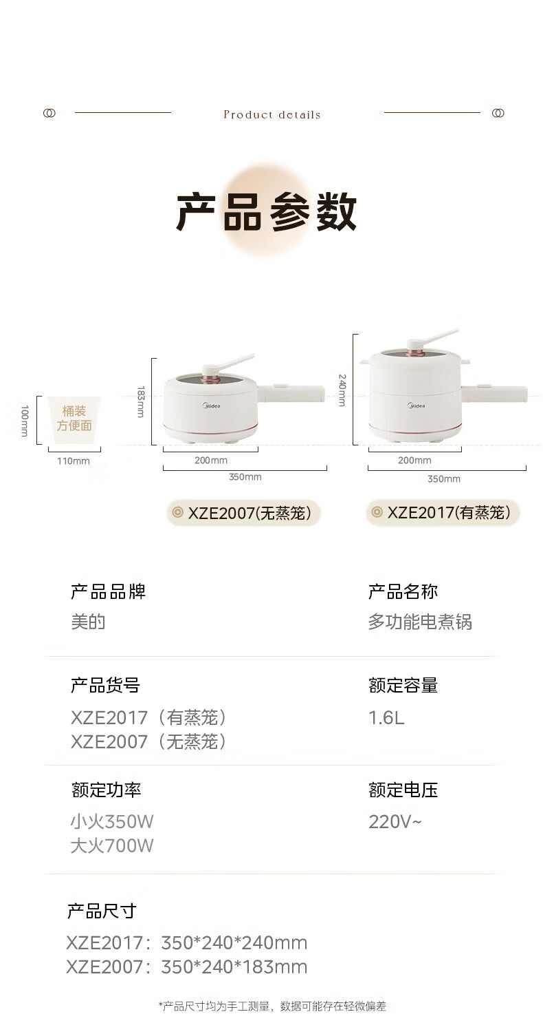美的(Midea)电煮锅 小电锅 宿舍小锅 电热锅 学生宿舍泡面电火锅 多功能多用途 电蒸锅 不粘涂层内胆 1.6L 【带蒸笼】MC-XZE2017