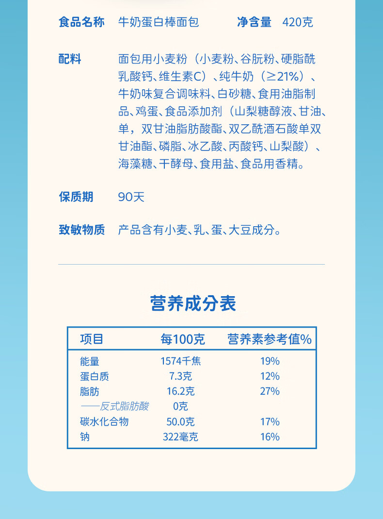 盼盼牛奶蛋白棒面包整箱健康饱腹早餐充饥糕点小吃零食点心 牛奶蛋白棒面包*2箱【约23枚】