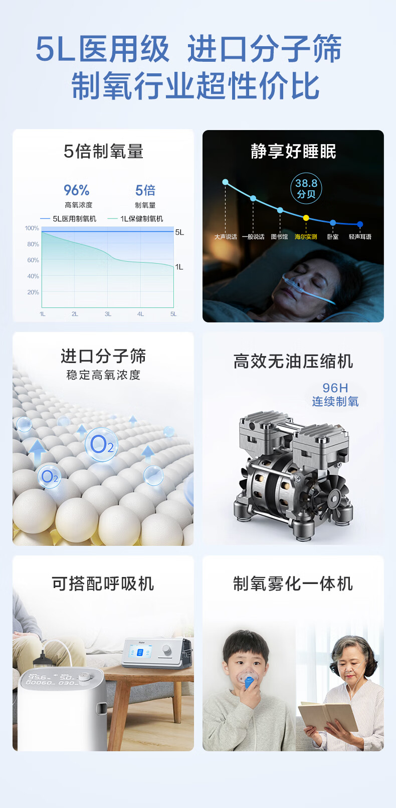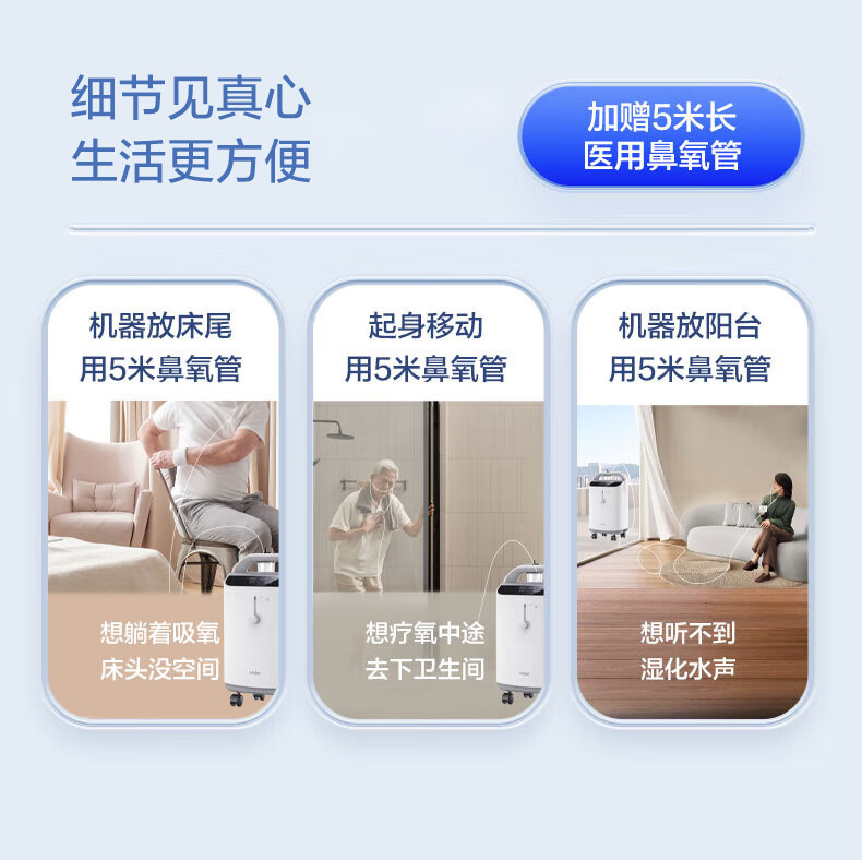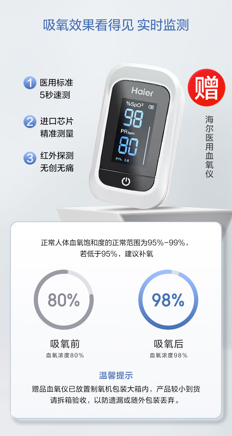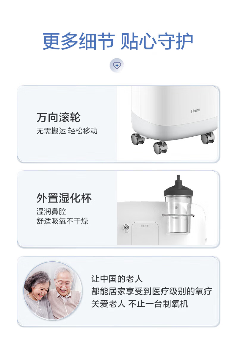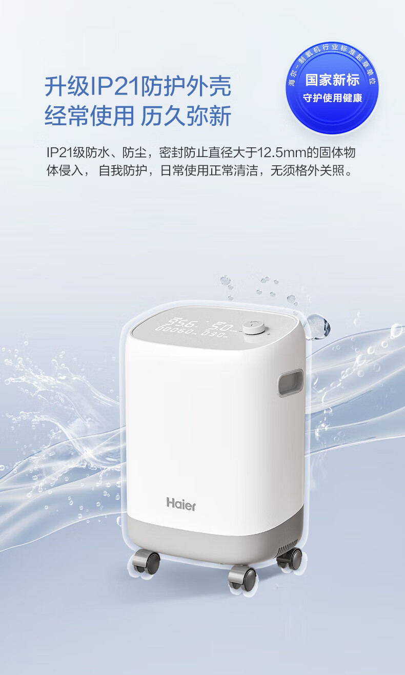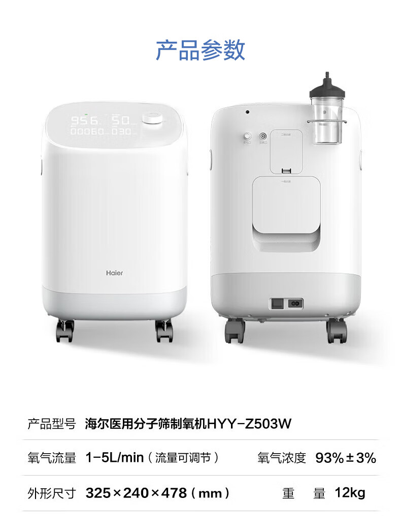 海尔(Haier)5L升制氧机家用老人医用级吸氧机孕妇氧气机呼吸雾化503W国家补贴