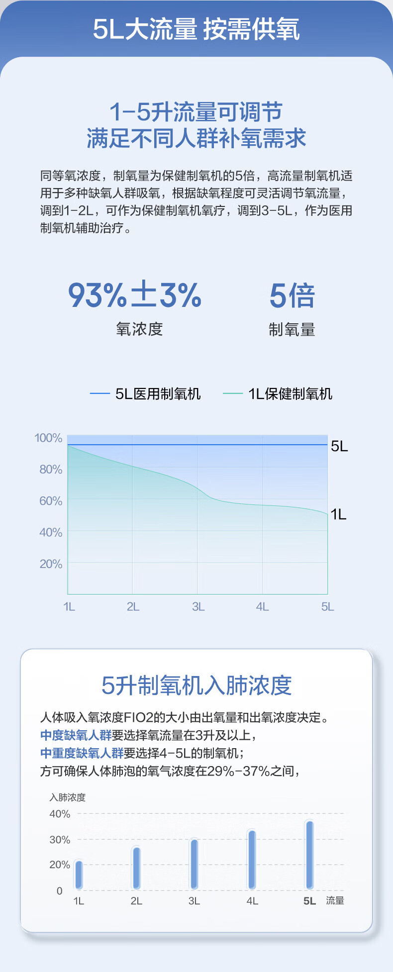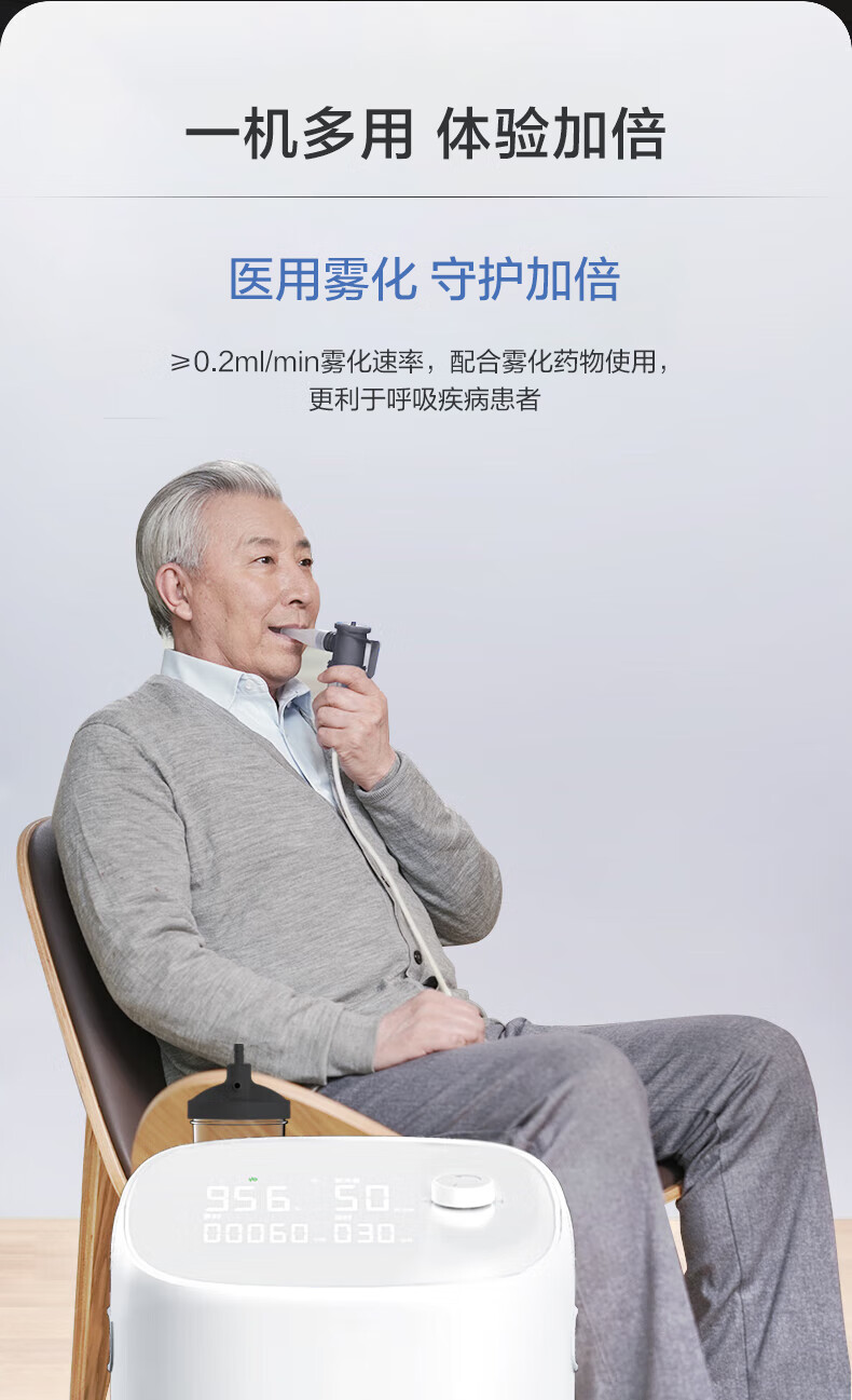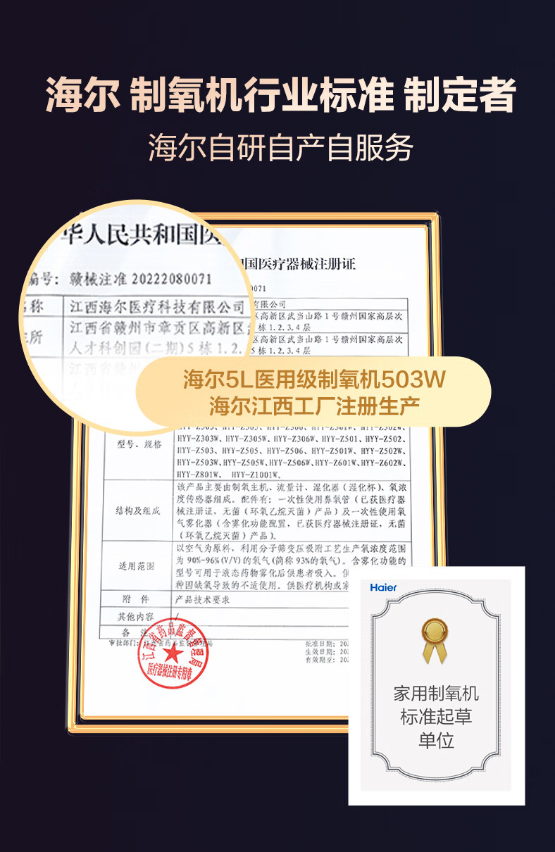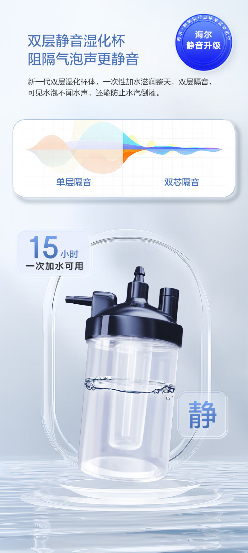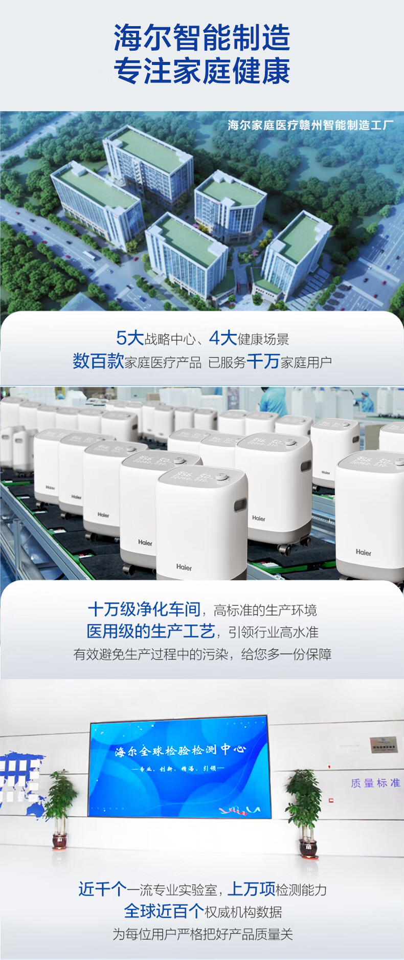 海尔(Haier)5L升制氧机家用老人医用级吸氧机孕妇氧气机呼吸雾化503W国家补贴