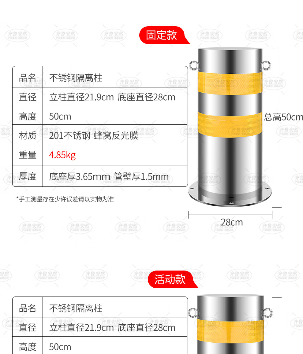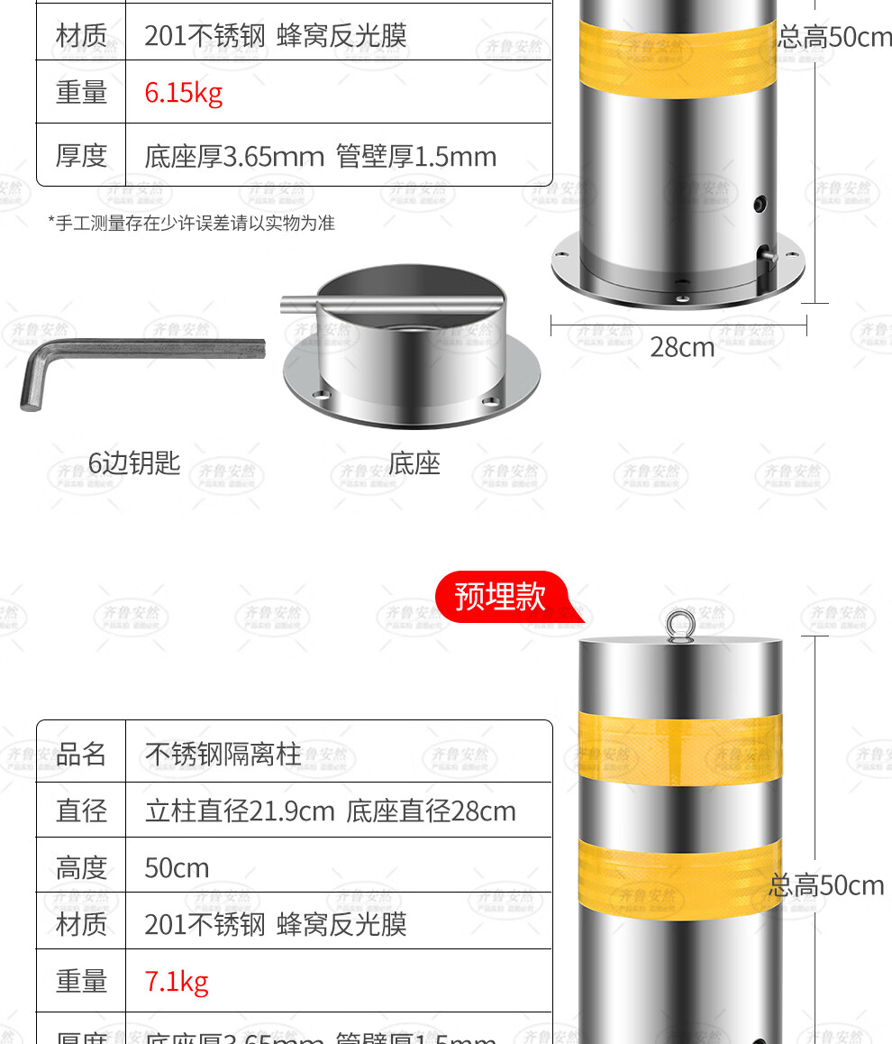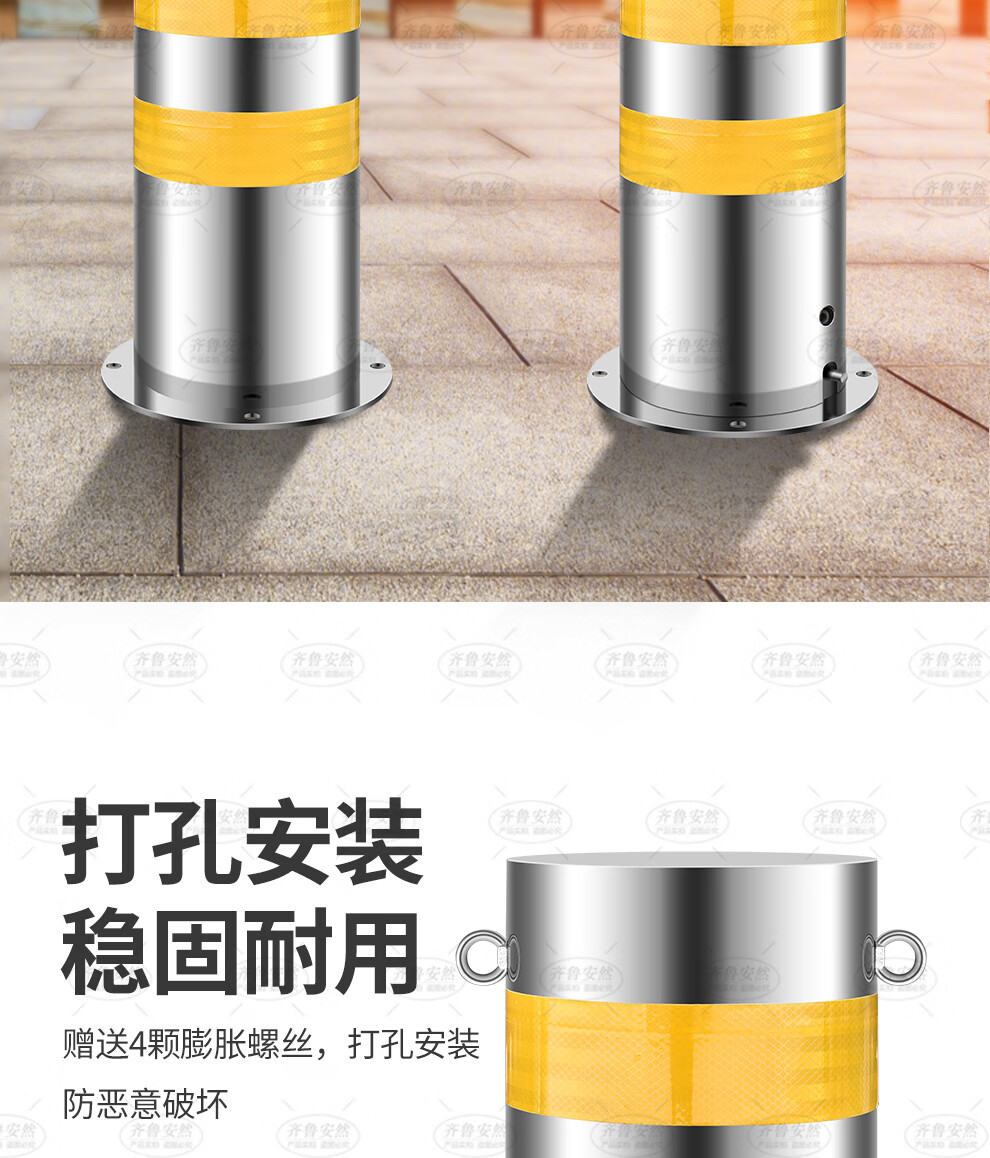 齐鲁安然 不锈钢地桩立柱挡车器停车桩加厚防撞路障车位锁地锁警示柱 加粗 高50cm粗21.9cm【活动款】