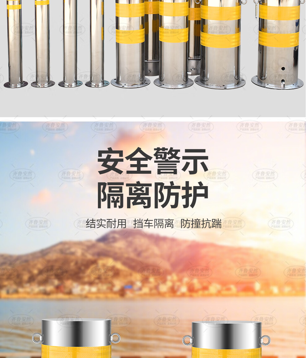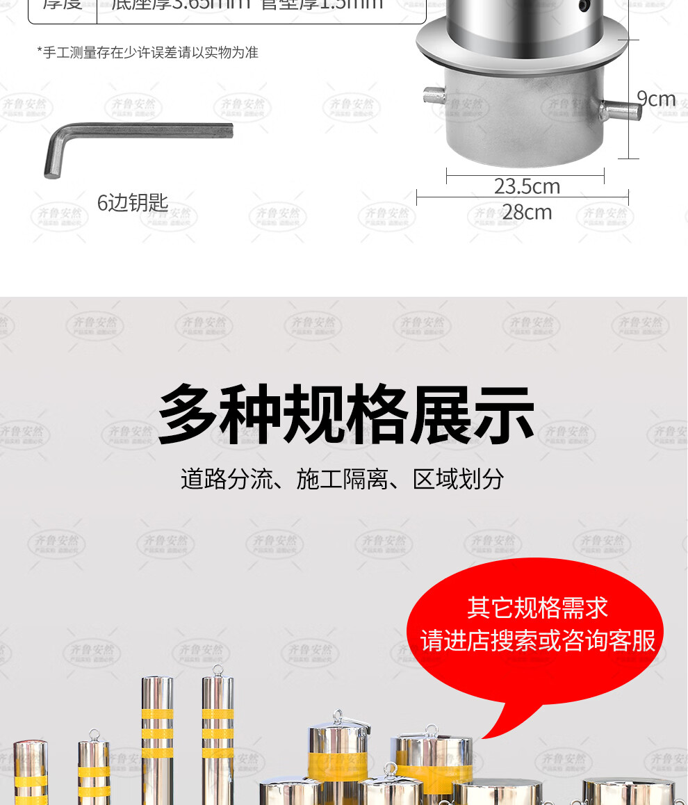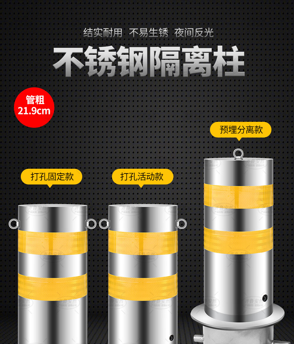 齐鲁安然 不锈钢地桩立柱挡车器停车桩加厚防撞路障车位锁地锁警示柱 加粗 高50cm粗21.9cm【活动款】