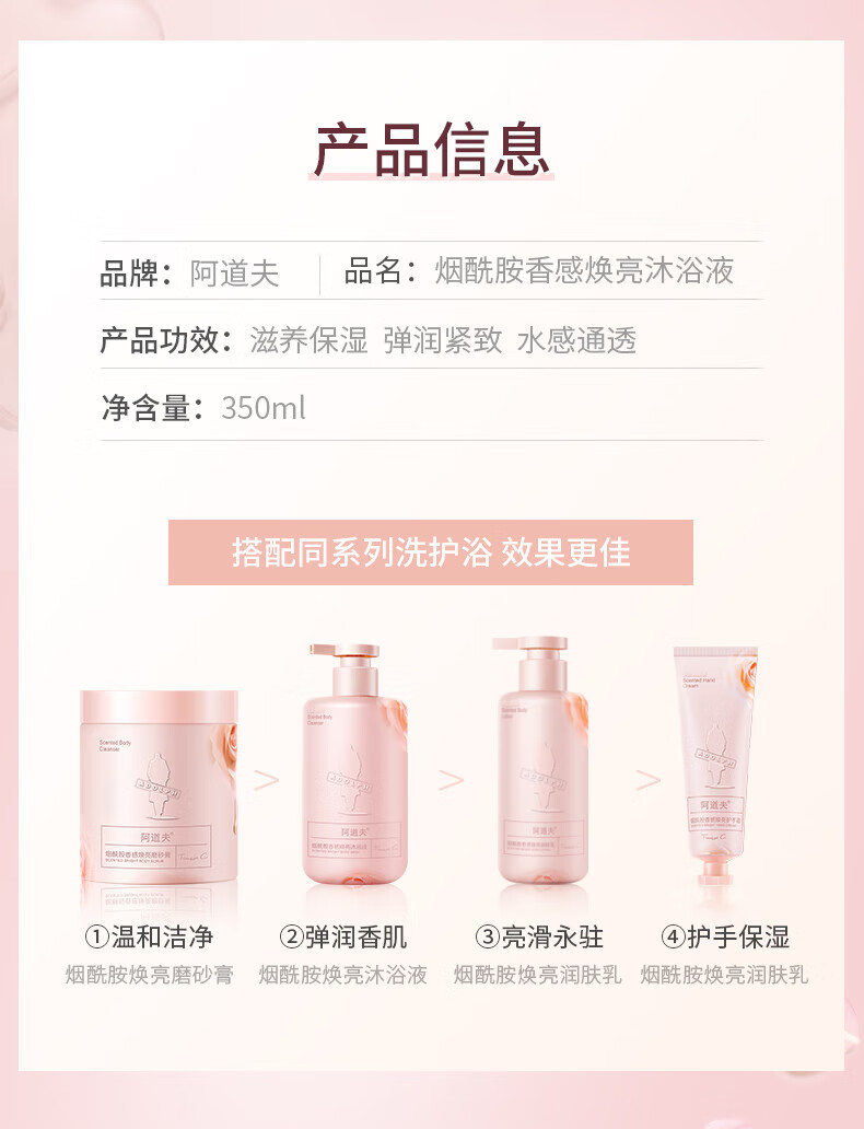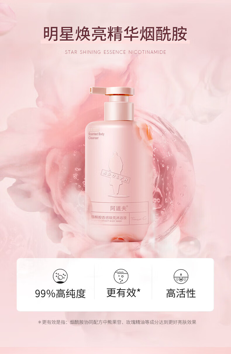 阿道夫烟酰胺香感焕亮沐浴露温和清洁沐浴液持久留香滋润保湿沐浴乳 烟酰胺香感焕亮沐浴液350ml
