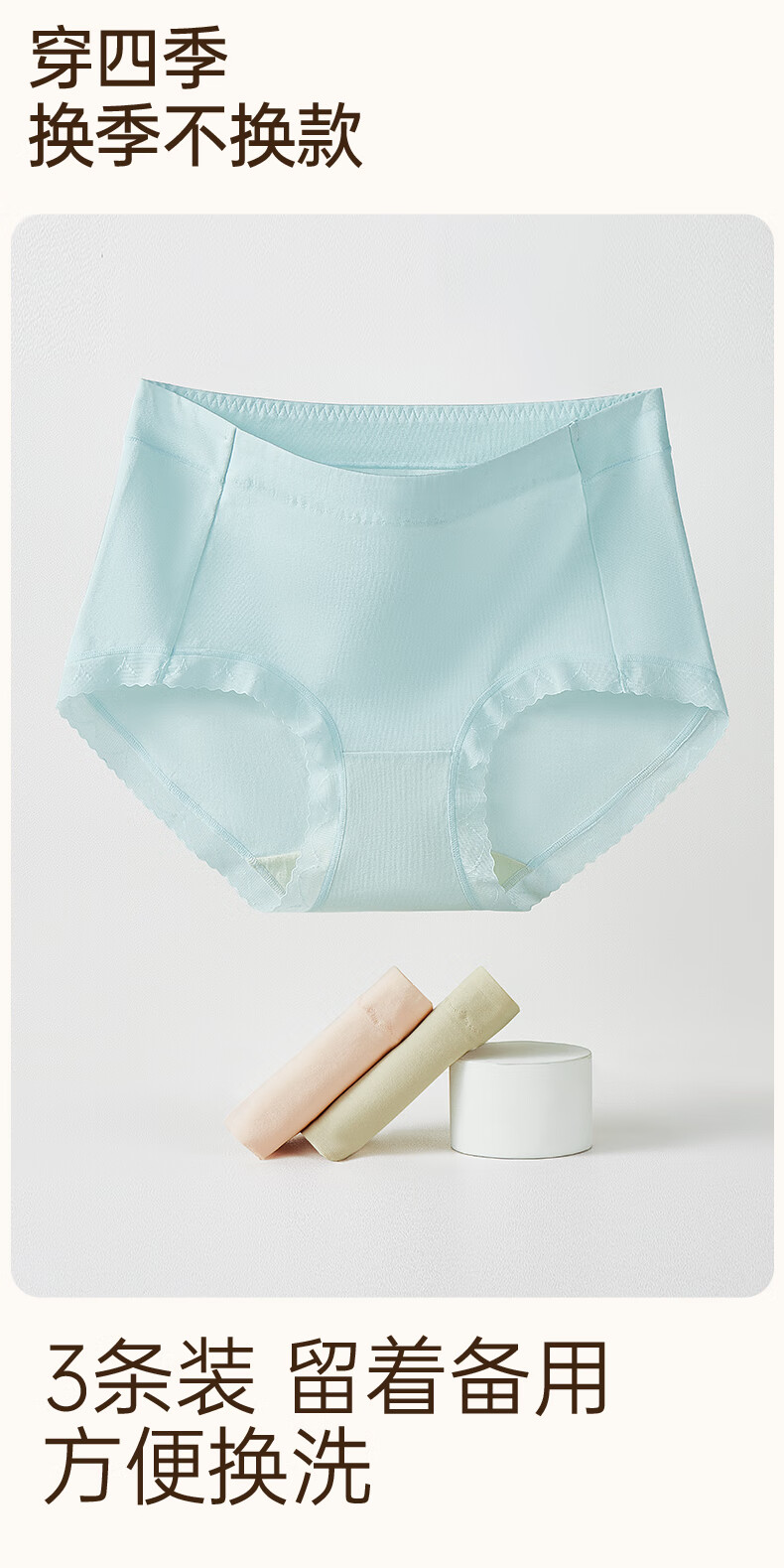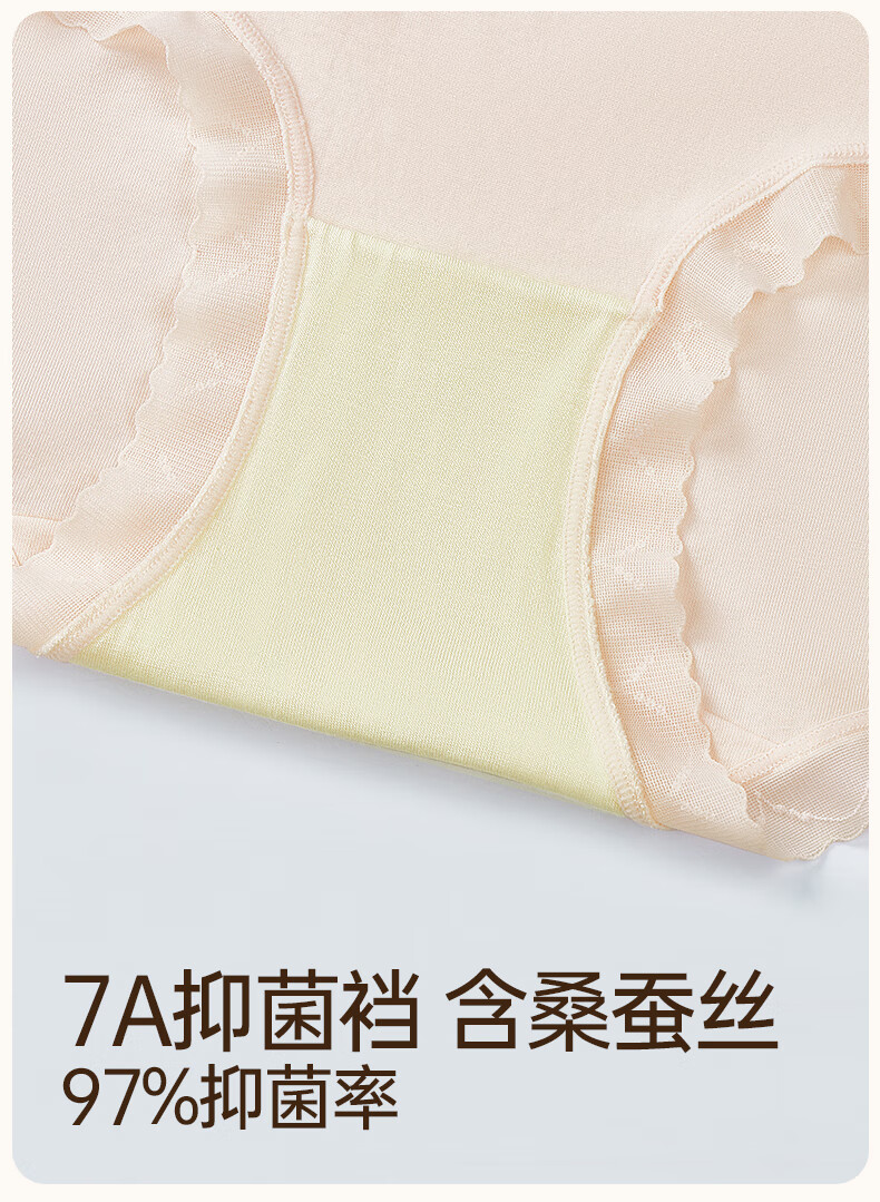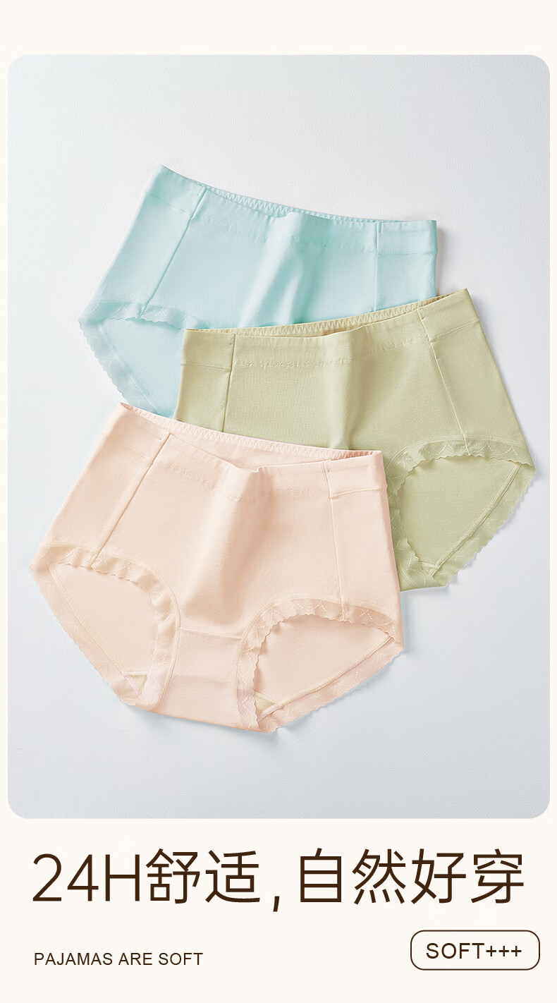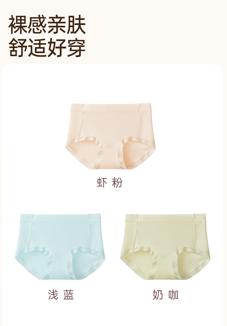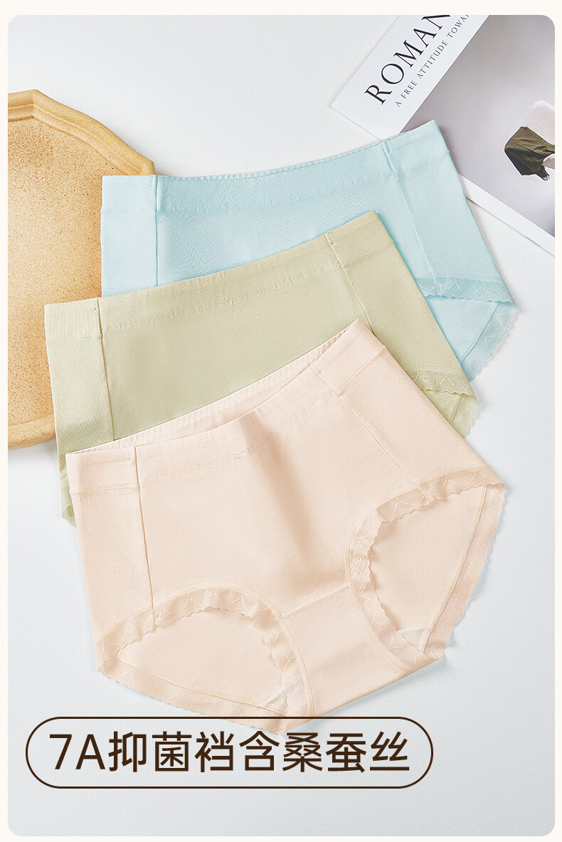 玛伦萨95%棉内裤女2025新款桑蚕丝裆中腰透气舒适女士三角裤头 浅蓝+虾粉+奶咖 M