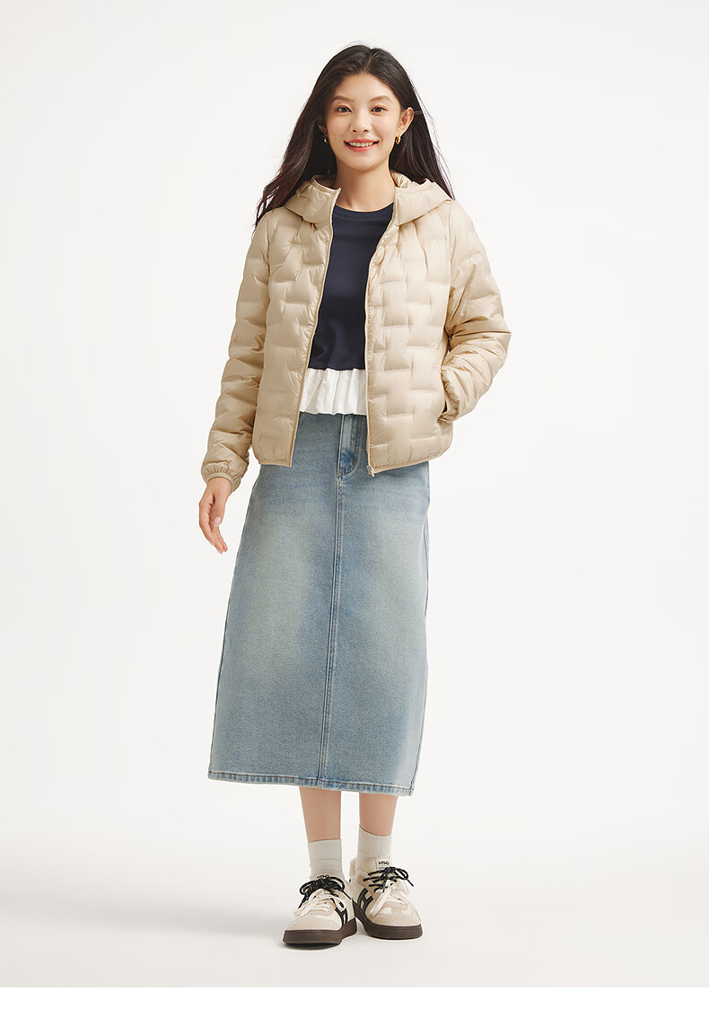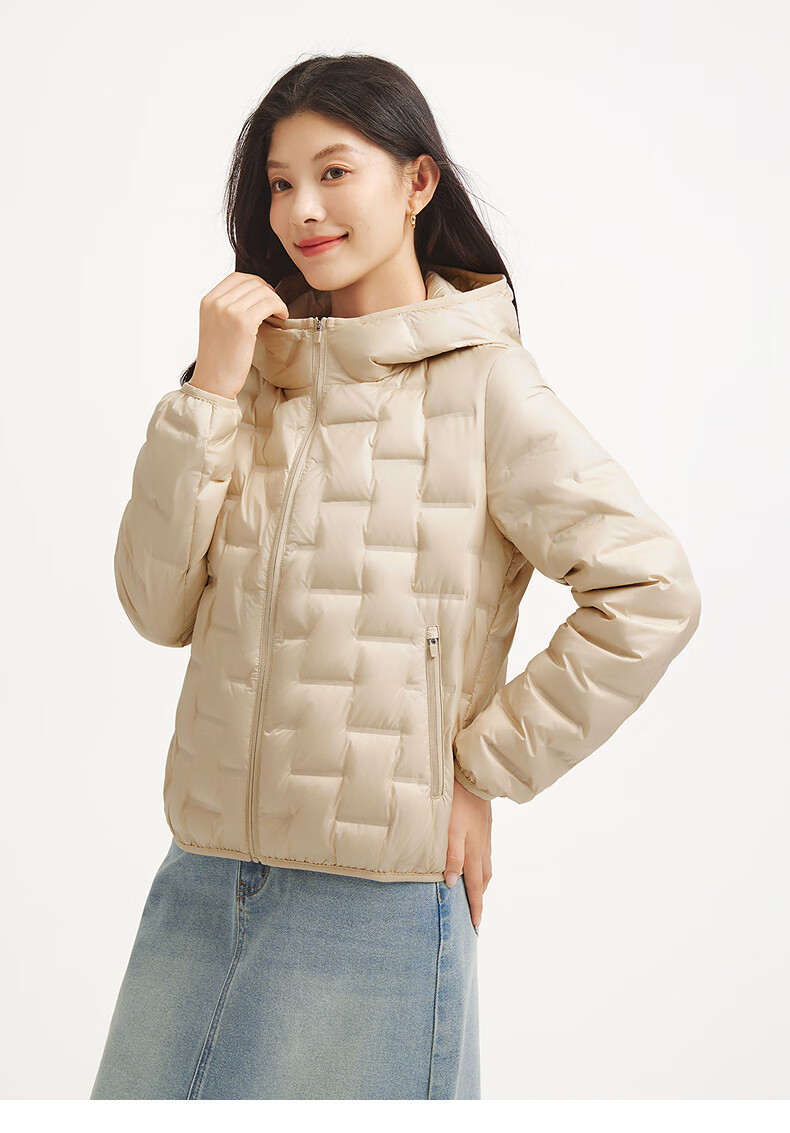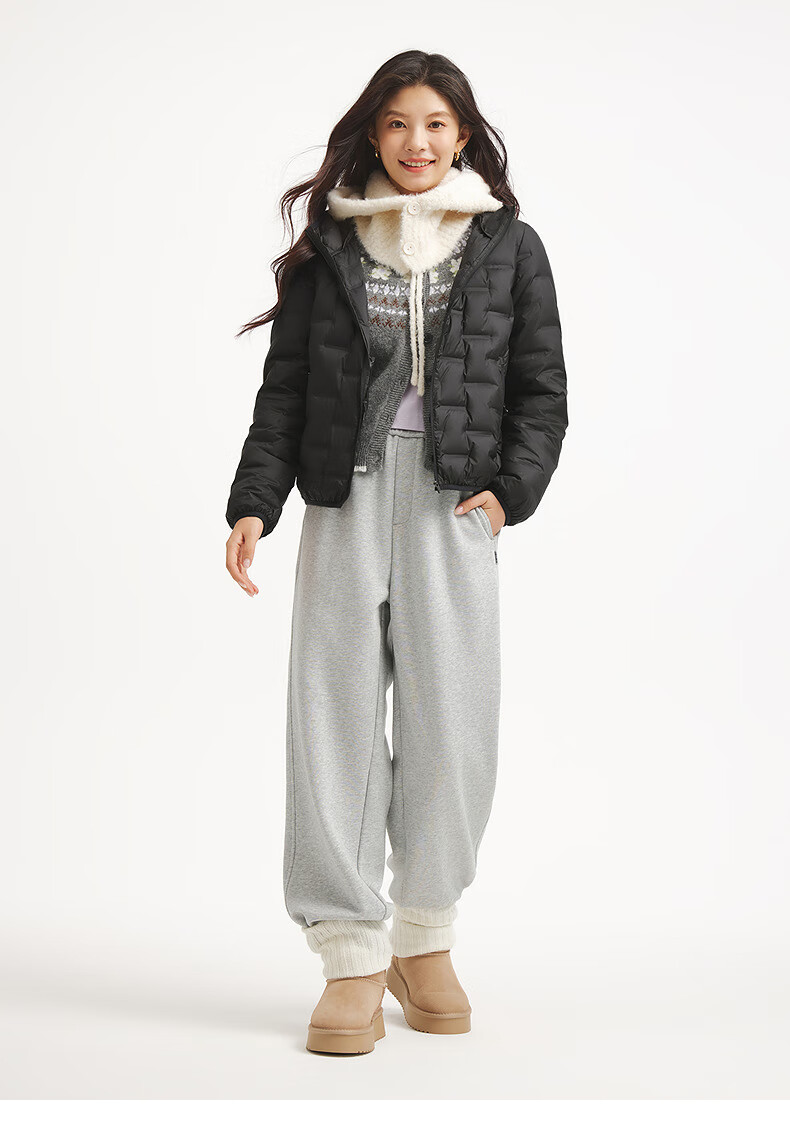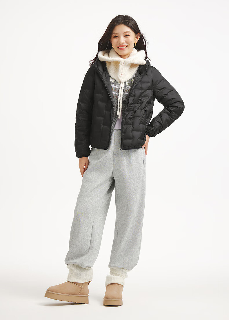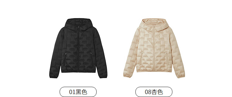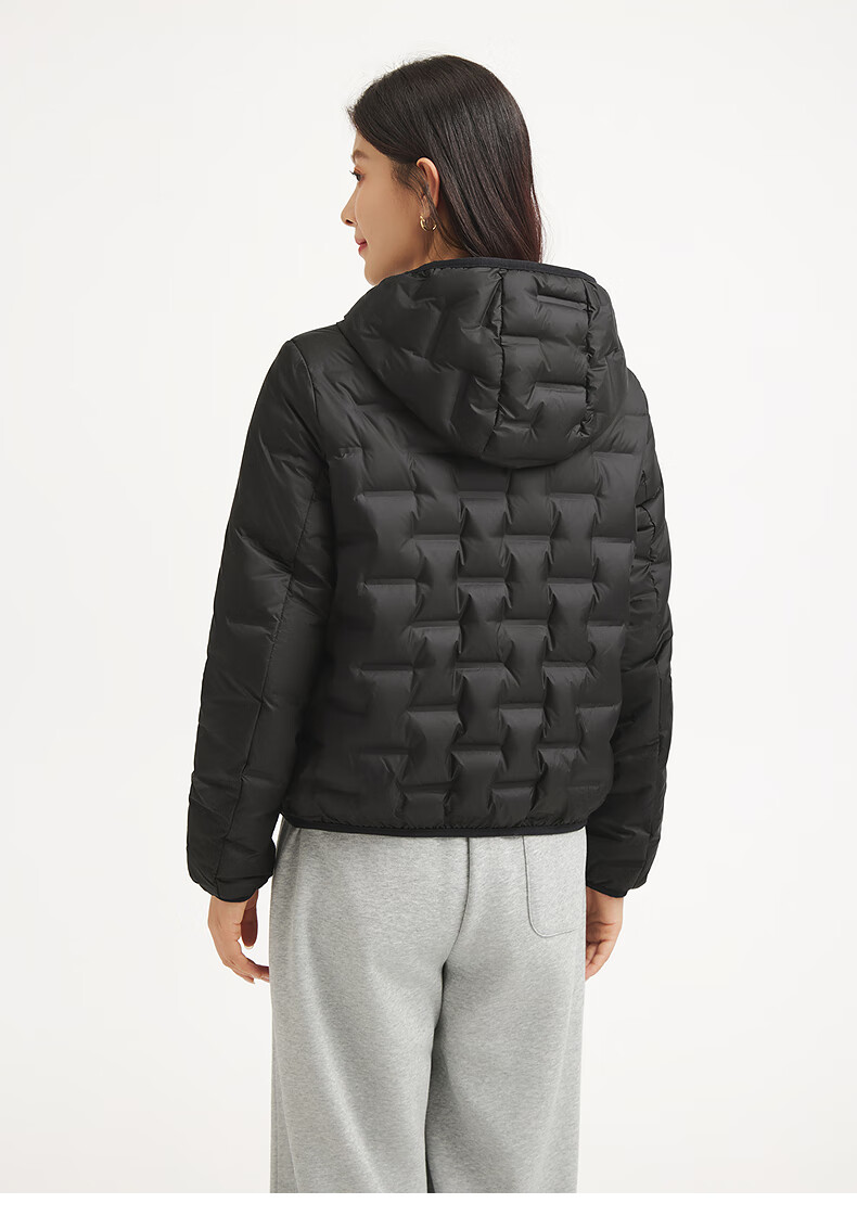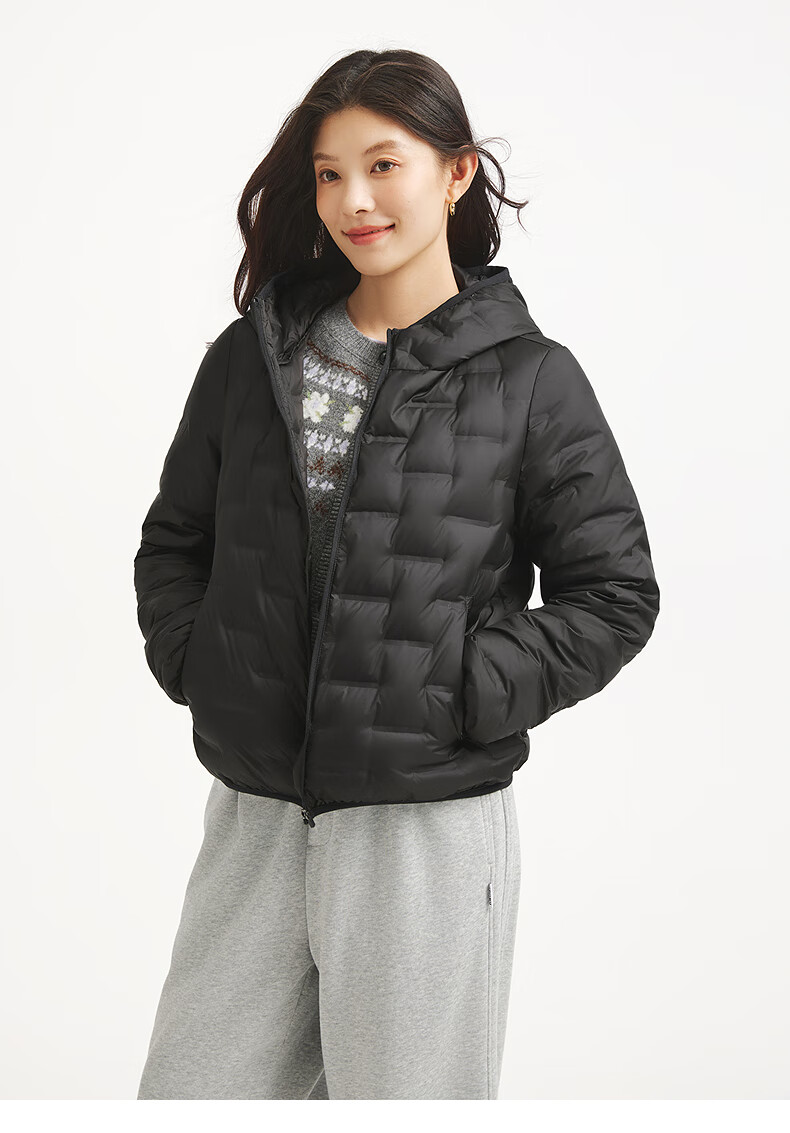 热风(Hotwind)女士羽绒服2025年冬季新款轻薄连帽羽绒服叠穿内搭夹克外套 01黑色 S 充绒量64g
