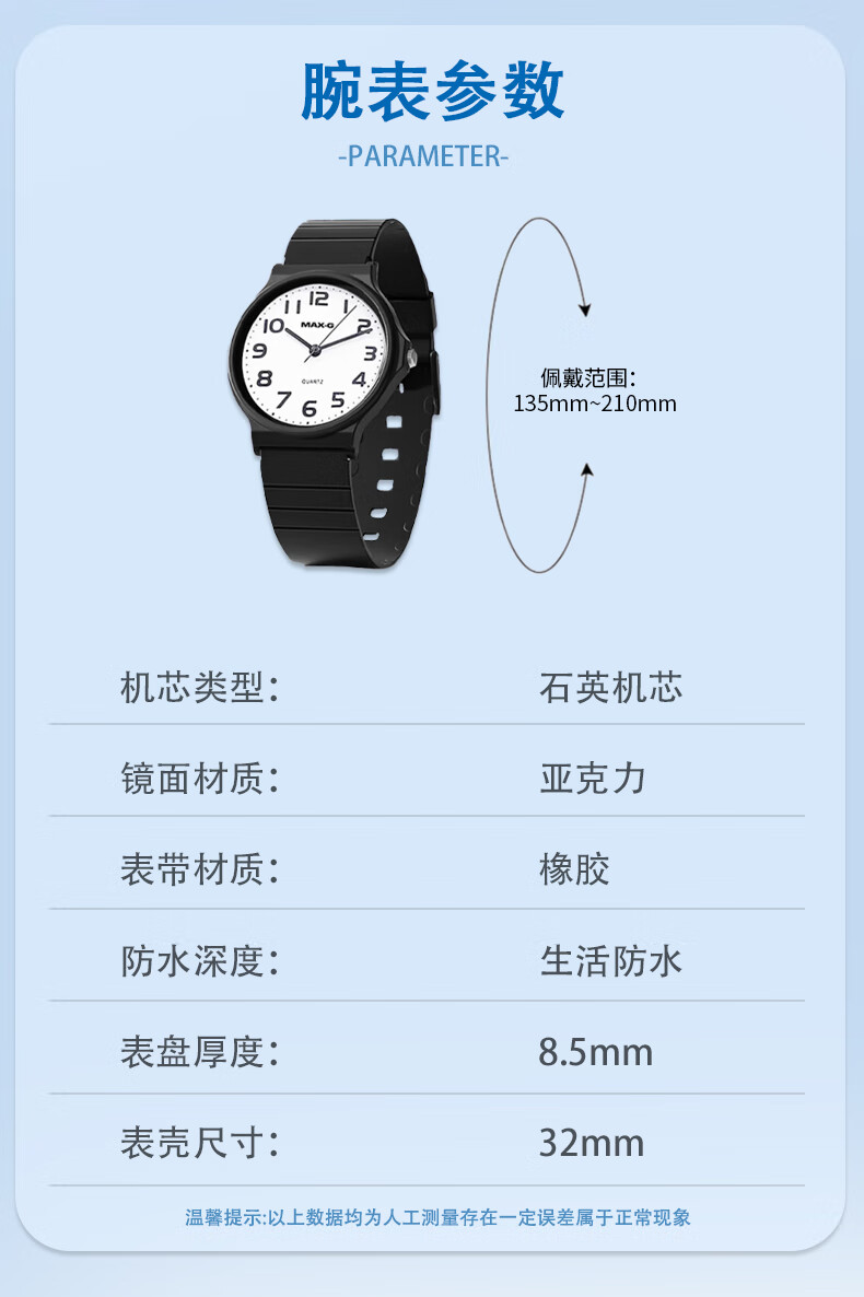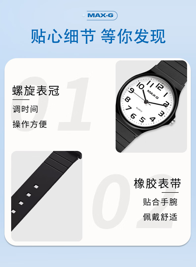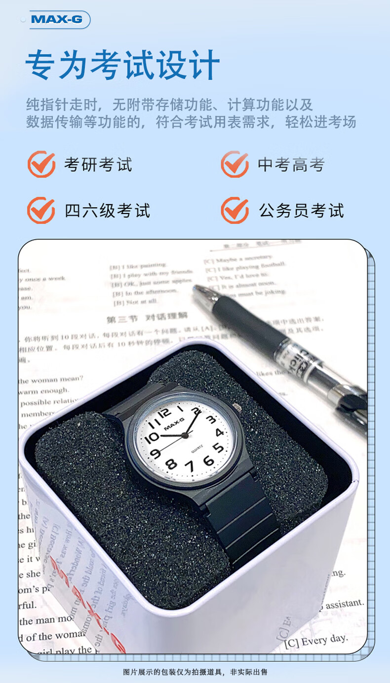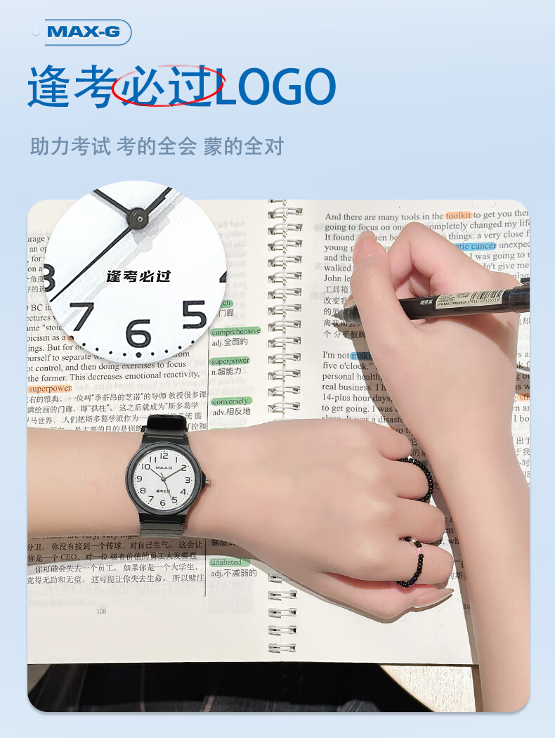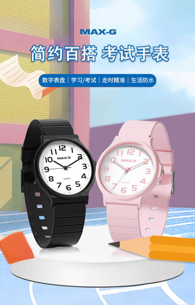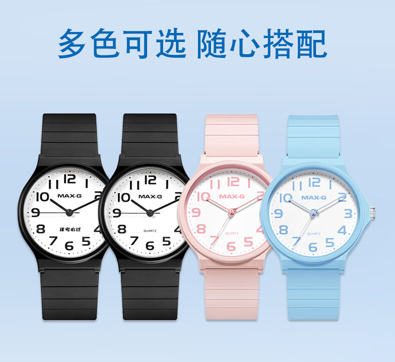 MAX-G学生手表男女小学生初高中青少年高考中考国考公务员考试石英手表