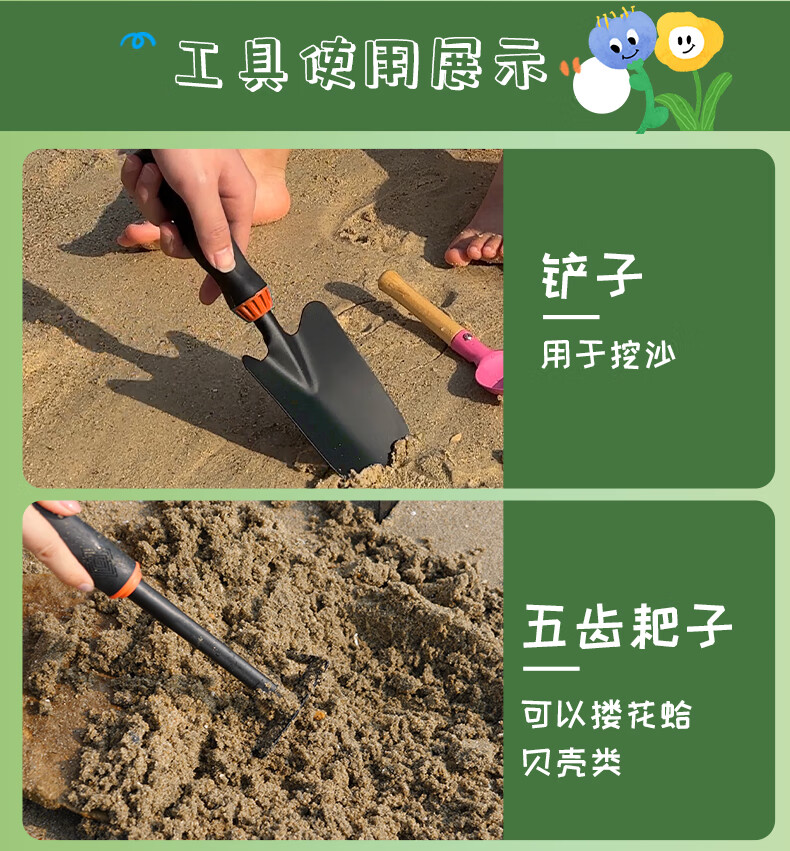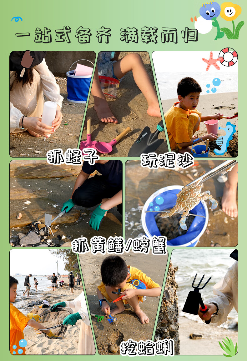 CPAI赶海工具套装大全海边挖蛤蜊抓螃蟹神器沙滩铲子儿童装备挖沙耙子 单人赶海欢乐游玩5件套