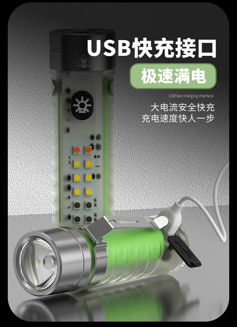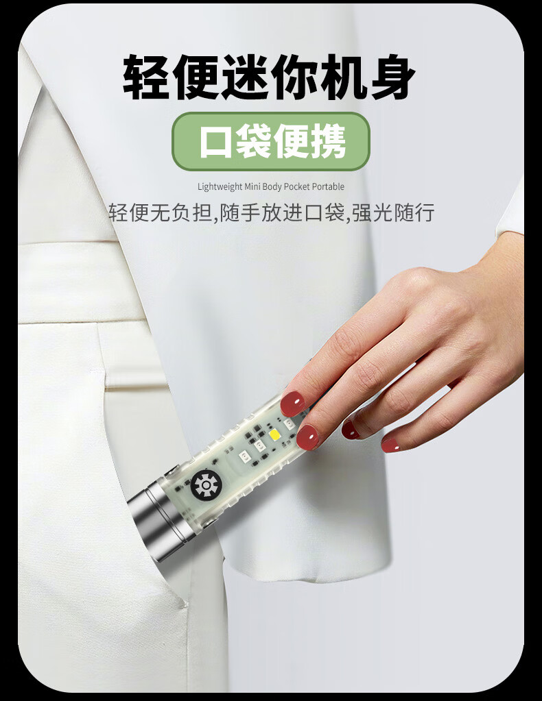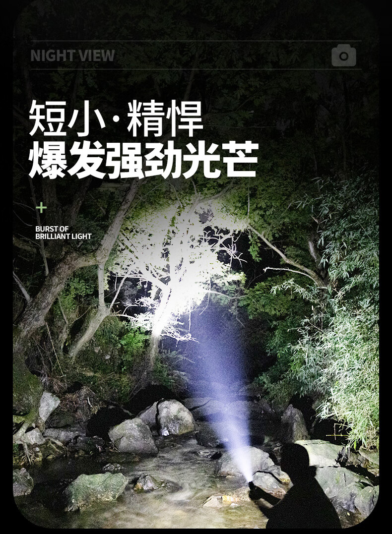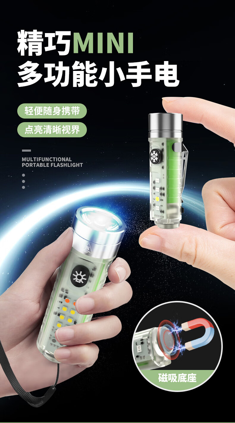 神鱼手电筒强光充电长续航侧灯户外变焦远射家用应急小便携多功能耐用 迷你便携-多档调节