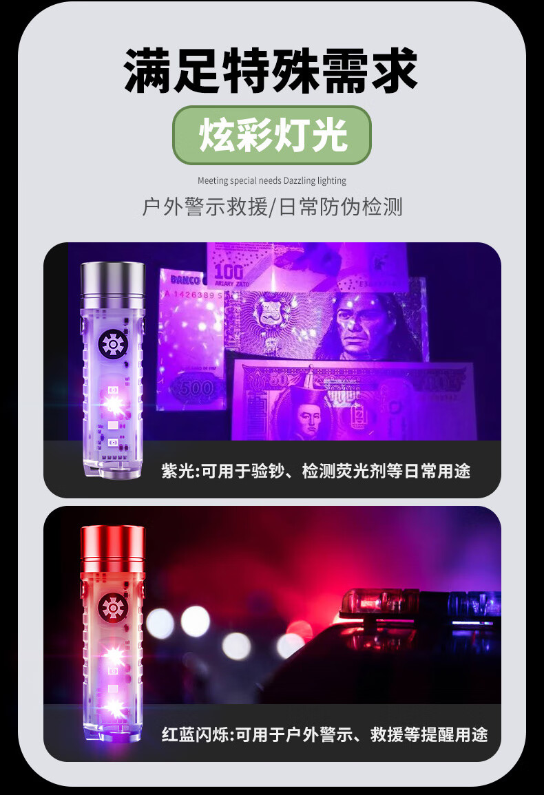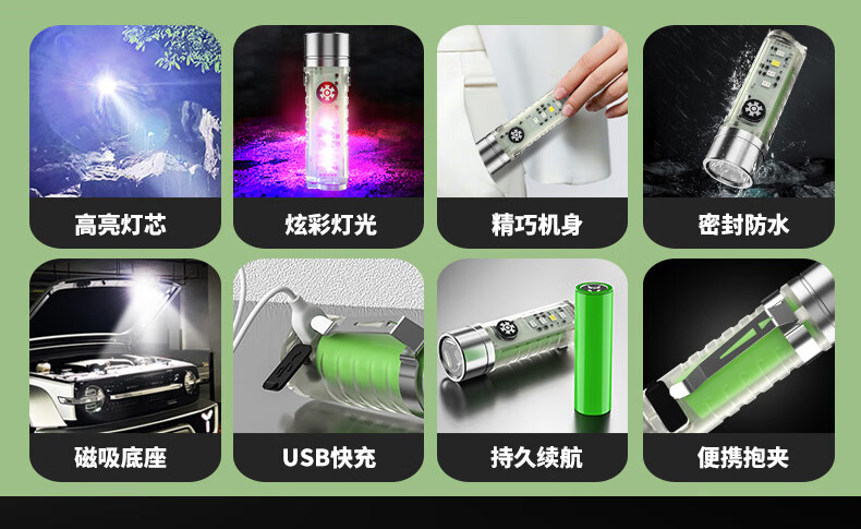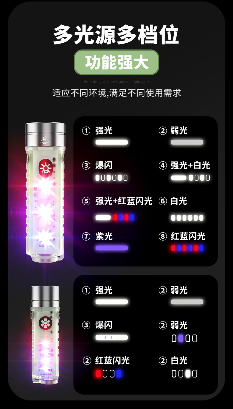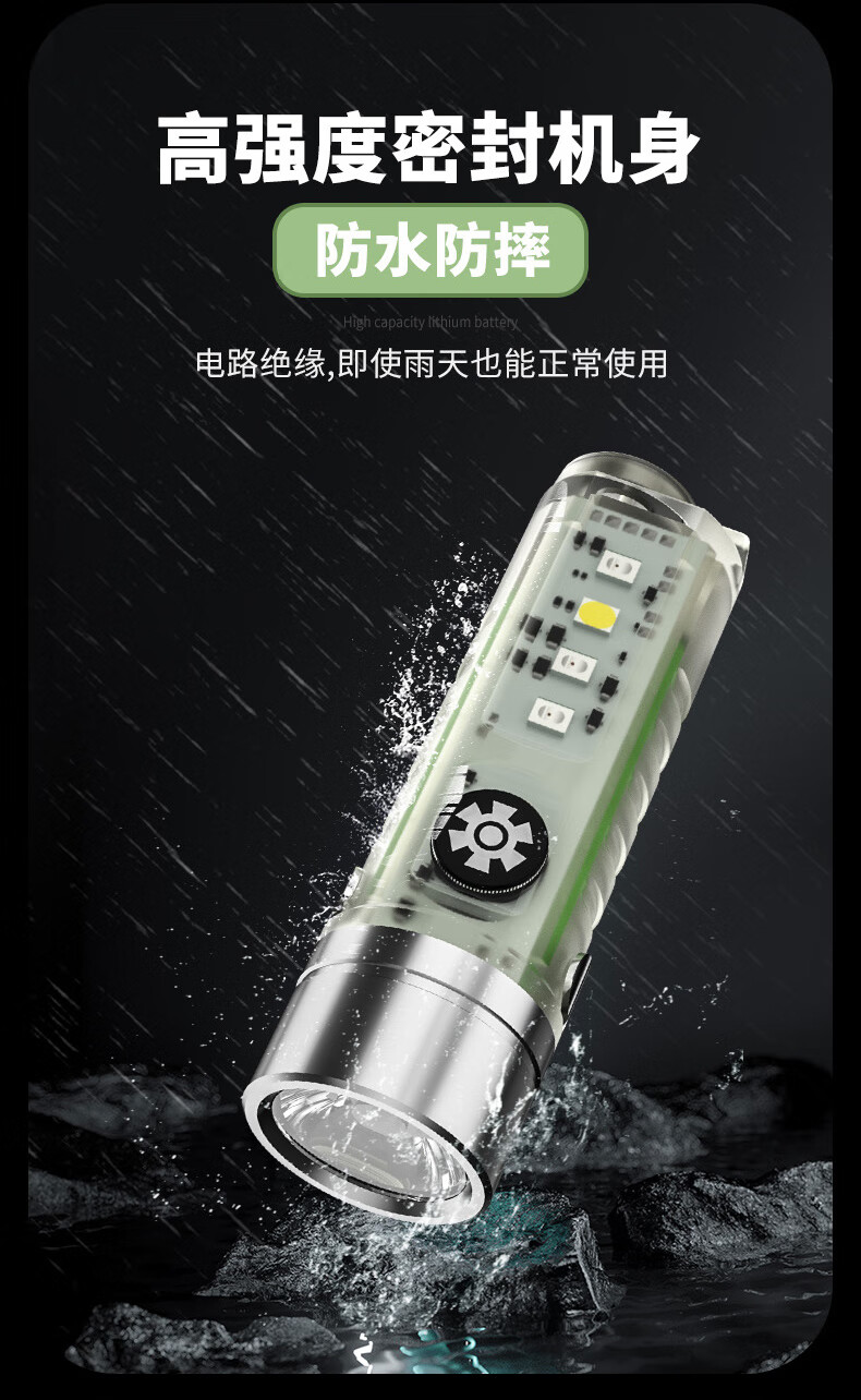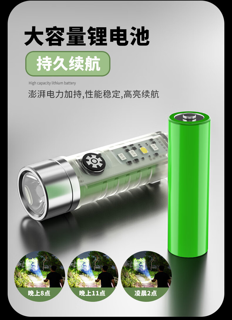 神鱼手电筒强光充电长续航侧灯户外变焦远射家用应急小便携多功能耐用 迷你便携-多档调节