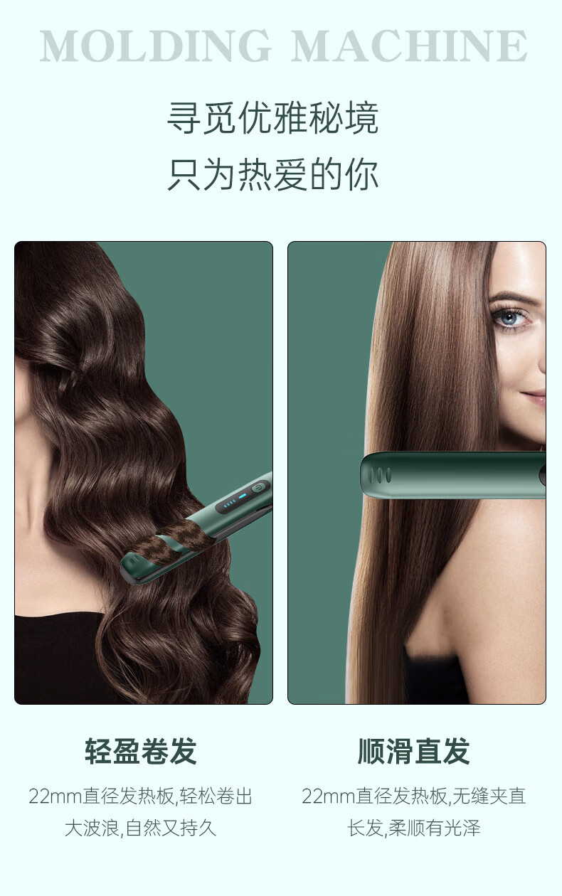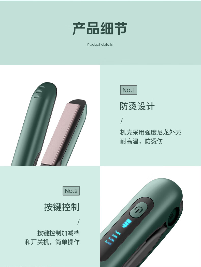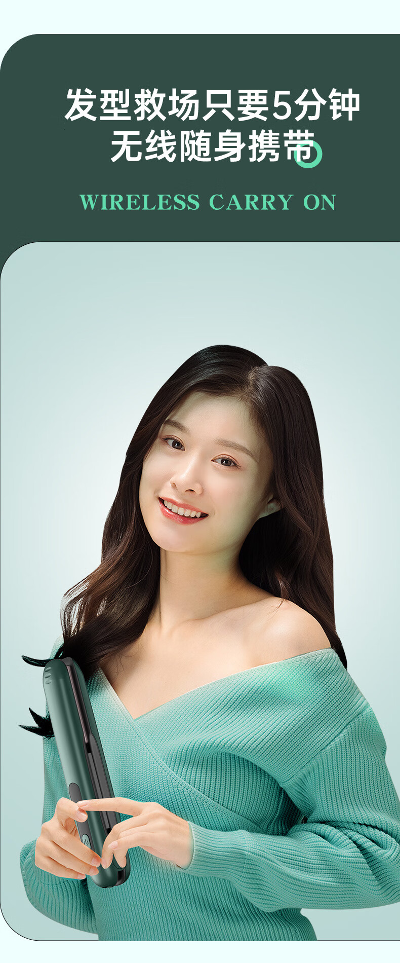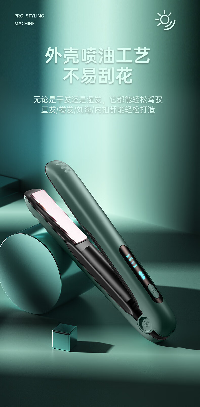 DEATKN德国充电夹板无线直板夹卷发棒usb便携迷你夹板学生宿舍刘海拉直 森墨绿【超长续航_直卷两用】