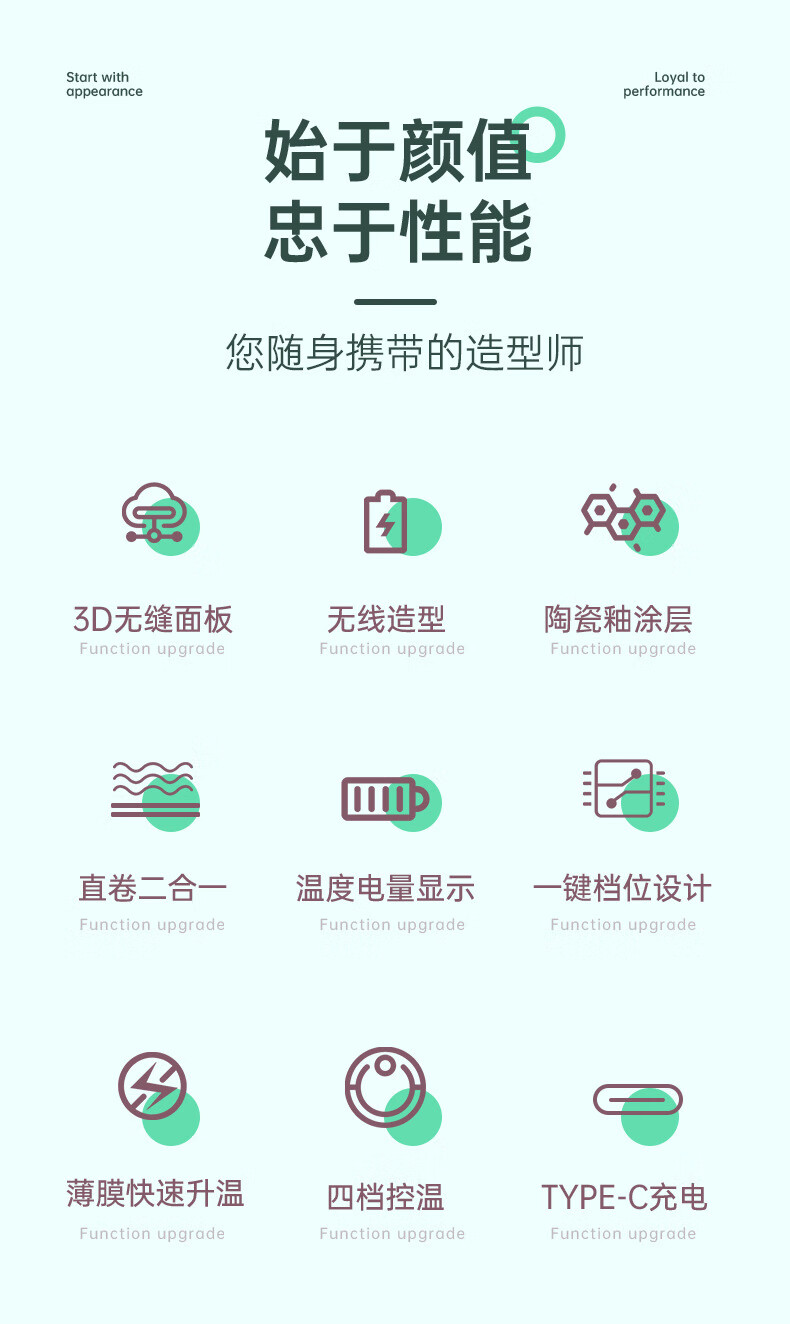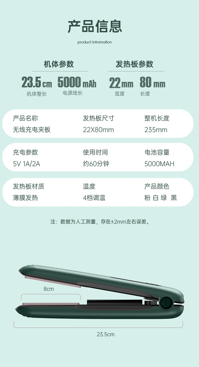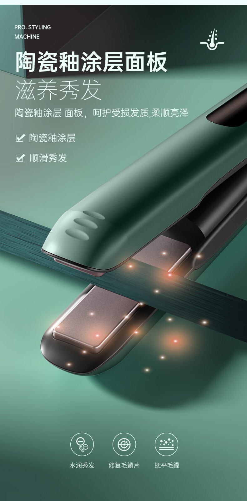 DEATKN德国充电夹板无线直板夹卷发棒usb便携迷你夹板学生宿舍刘海拉直 森墨绿【超长续航_直卷两用】