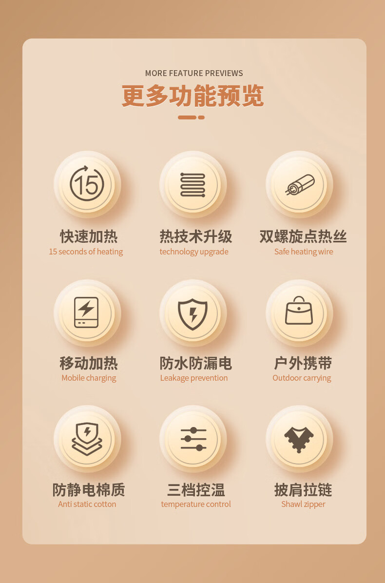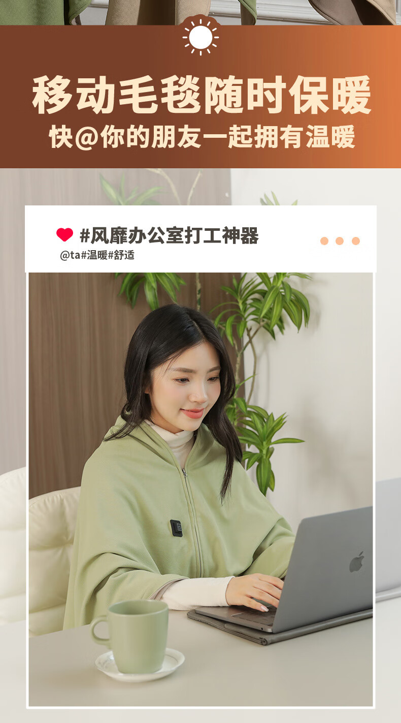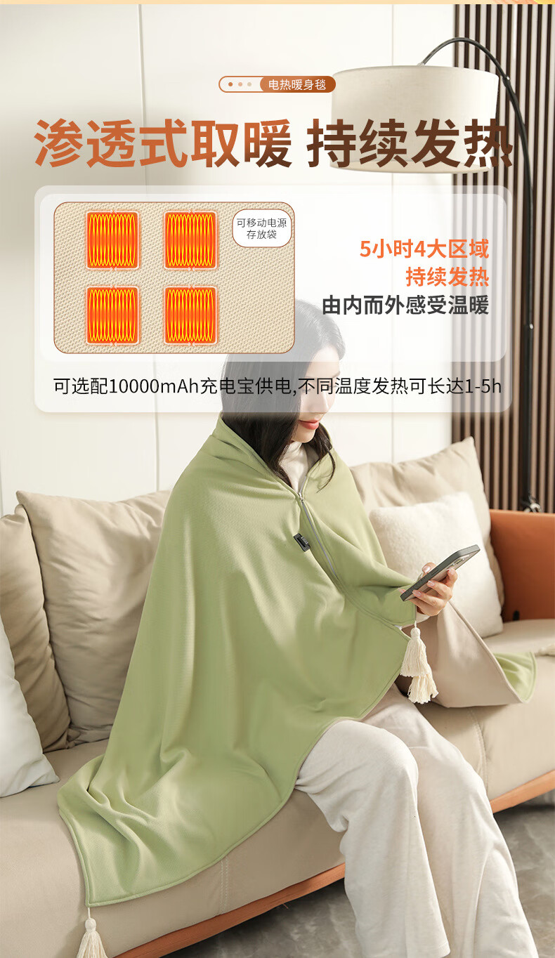 箱居电热暖身毯发热暖披肩USB免插电盖腿户外家用单人办公室午睡毯 电热披肩南极绒亲肤款