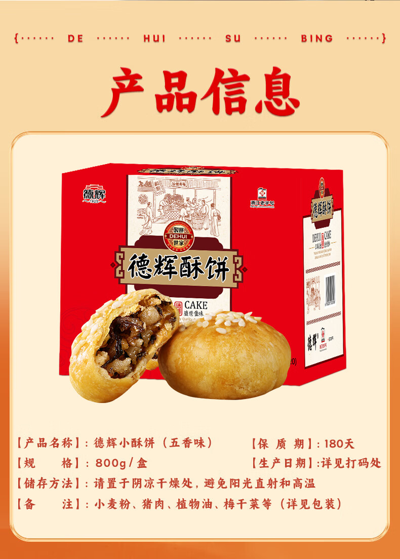 德辉 五香小酥饼120个梅干菜肉酥饼浙江特产小吃国货美食零食送礼佳 五香小酥饼800g*1盒