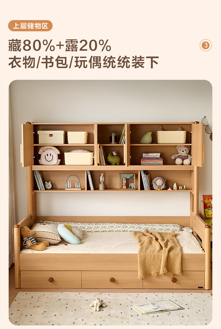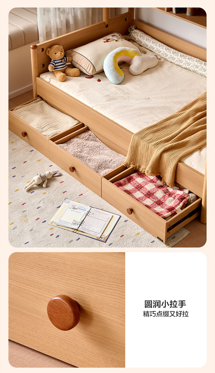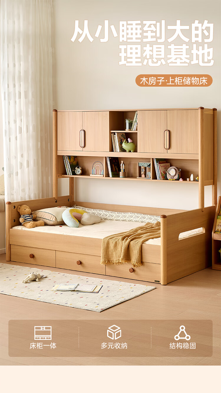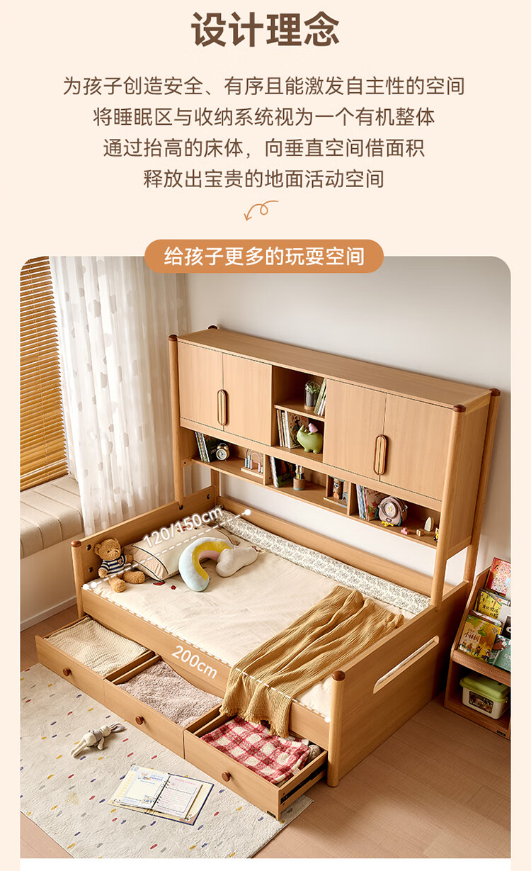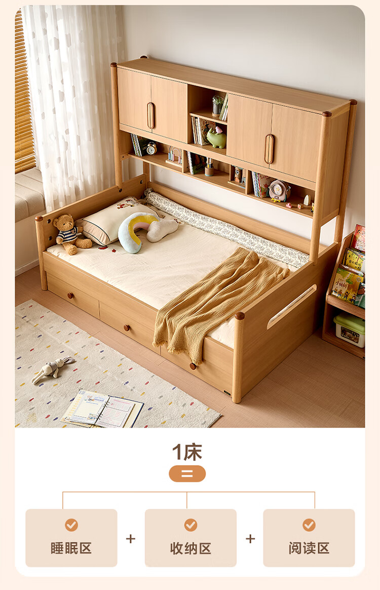 全友家居原木风儿童床柜子一体组合床1.5米储物床小户型单人榻榻米床 【原木色】功能床 1.2×2米【床柜一体 多元收纳】