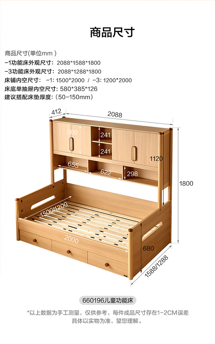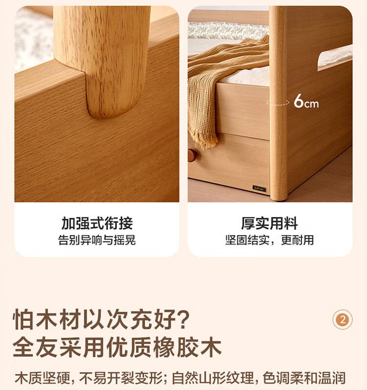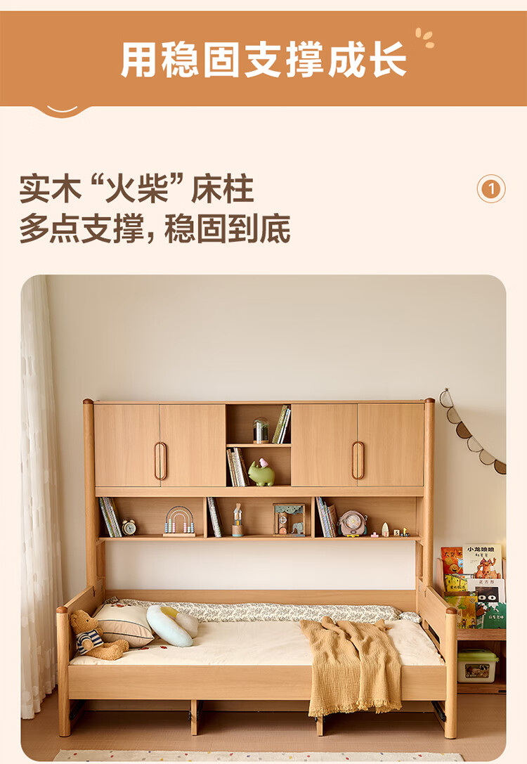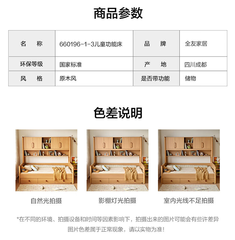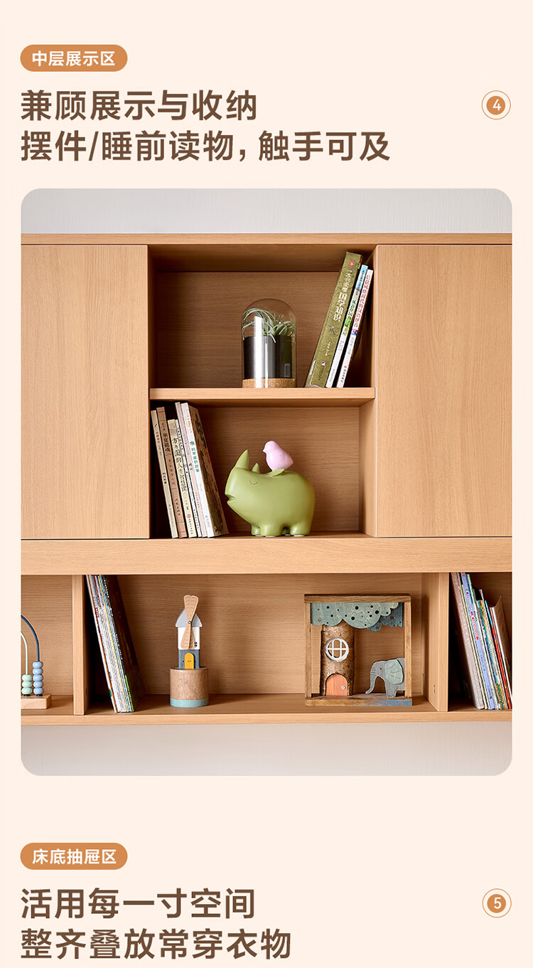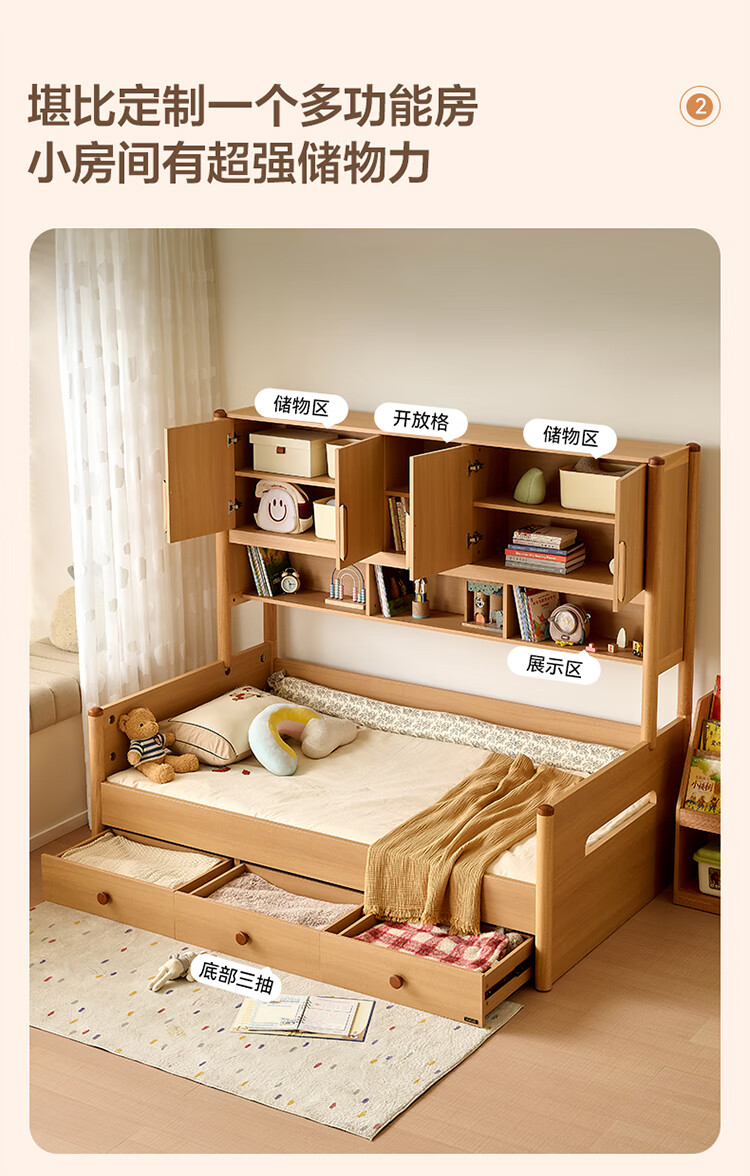 全友家居原木风儿童床柜子一体组合床1.5米储物床小户型单人榻榻米床 【原木色】功能床 1.2×2米【床柜一体 多元收纳】