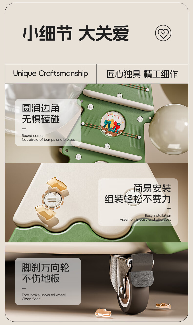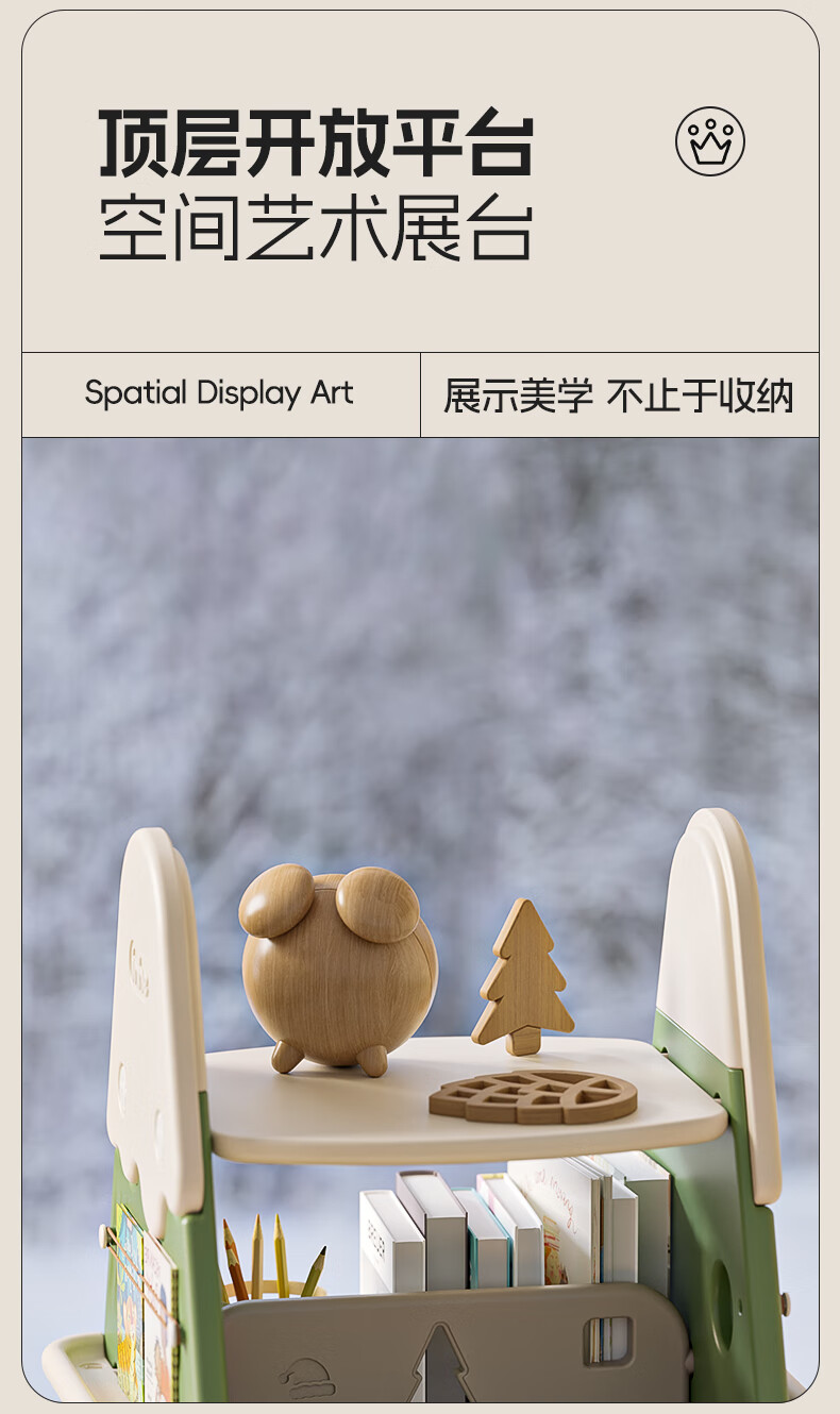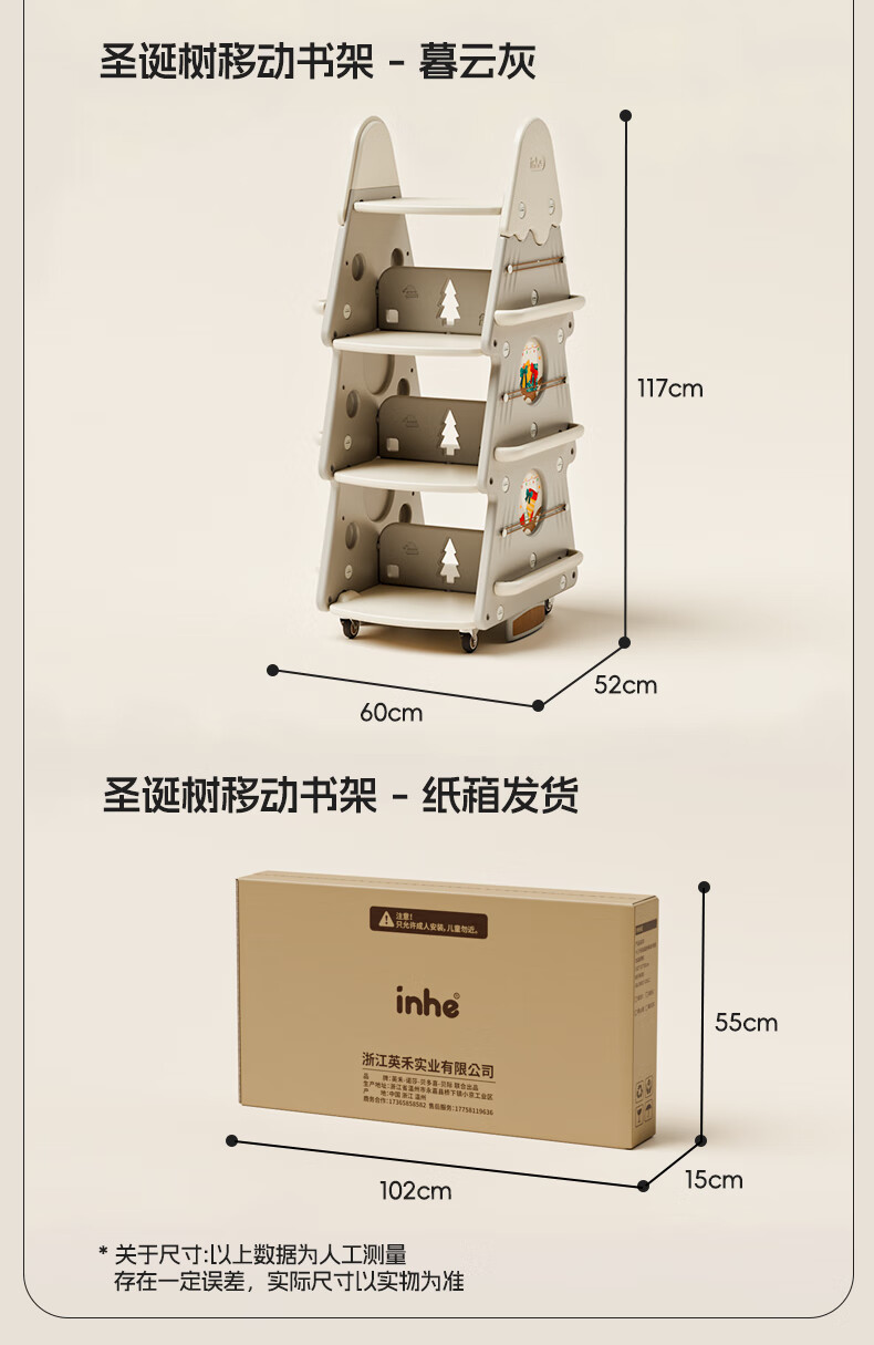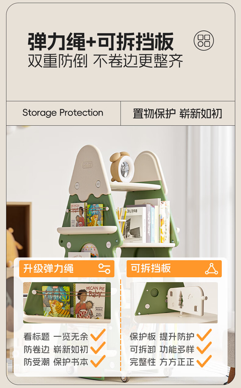 英禾儿童移动书架绘本架阅读宝宝玩具收纳架落地书架儿童房多层圣诞树 【0甲醛】圣诞树书架-青山绿 【静音万向轮 +带侧收纳】