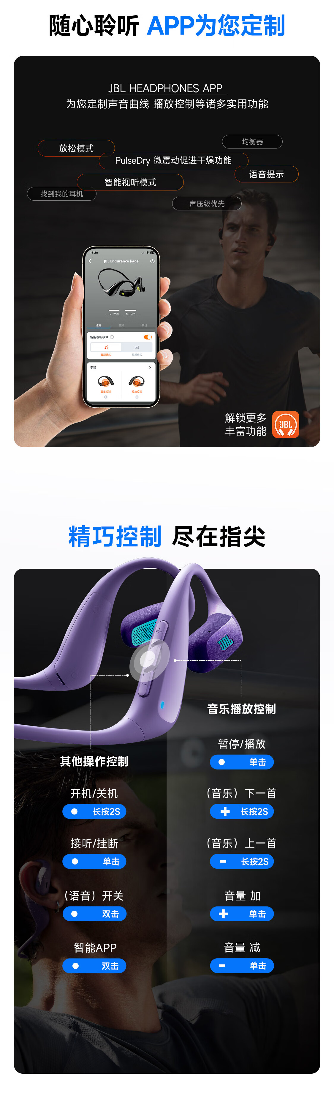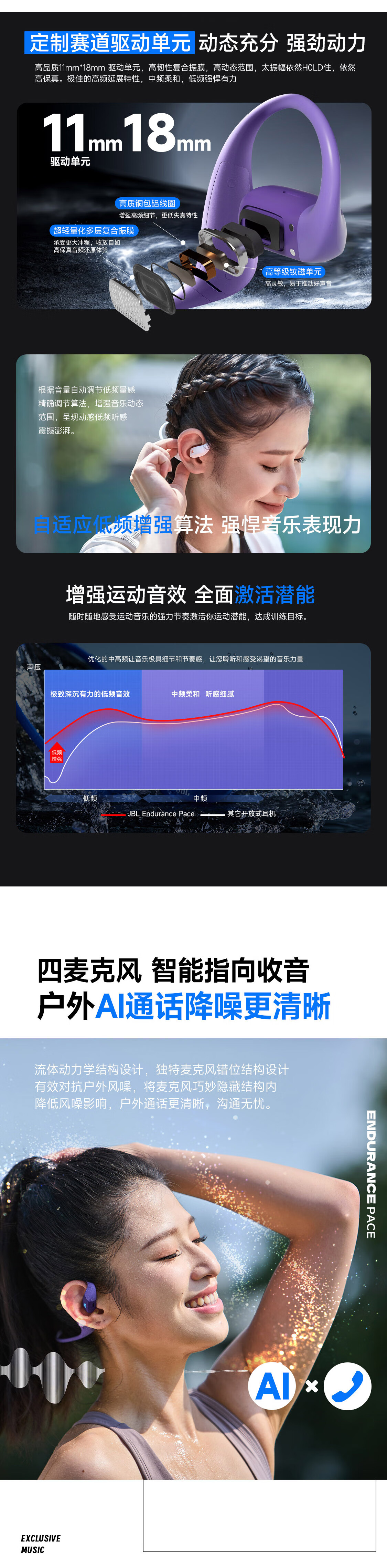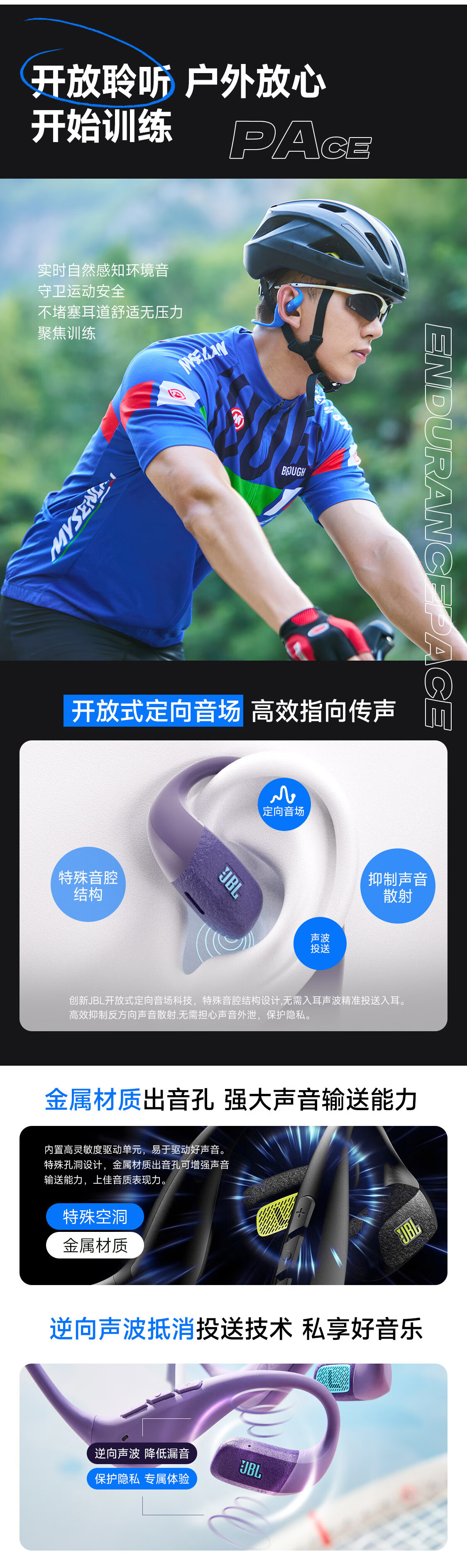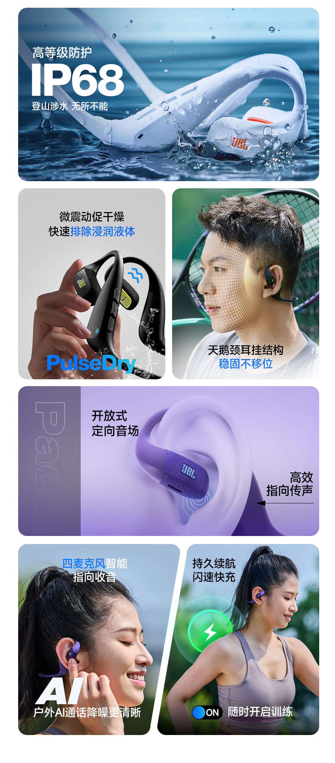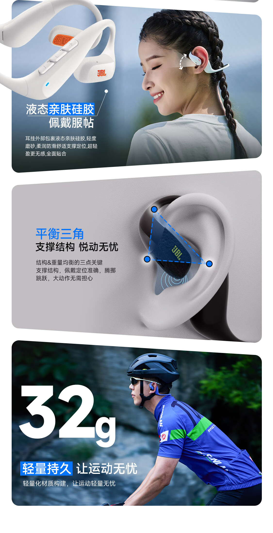 JBL PACE 悦跑环 真无线开放式运动耳机 蓝牙耳机 跑步挂耳式 不入耳舒适防水 双11购物推荐 峡谷绿