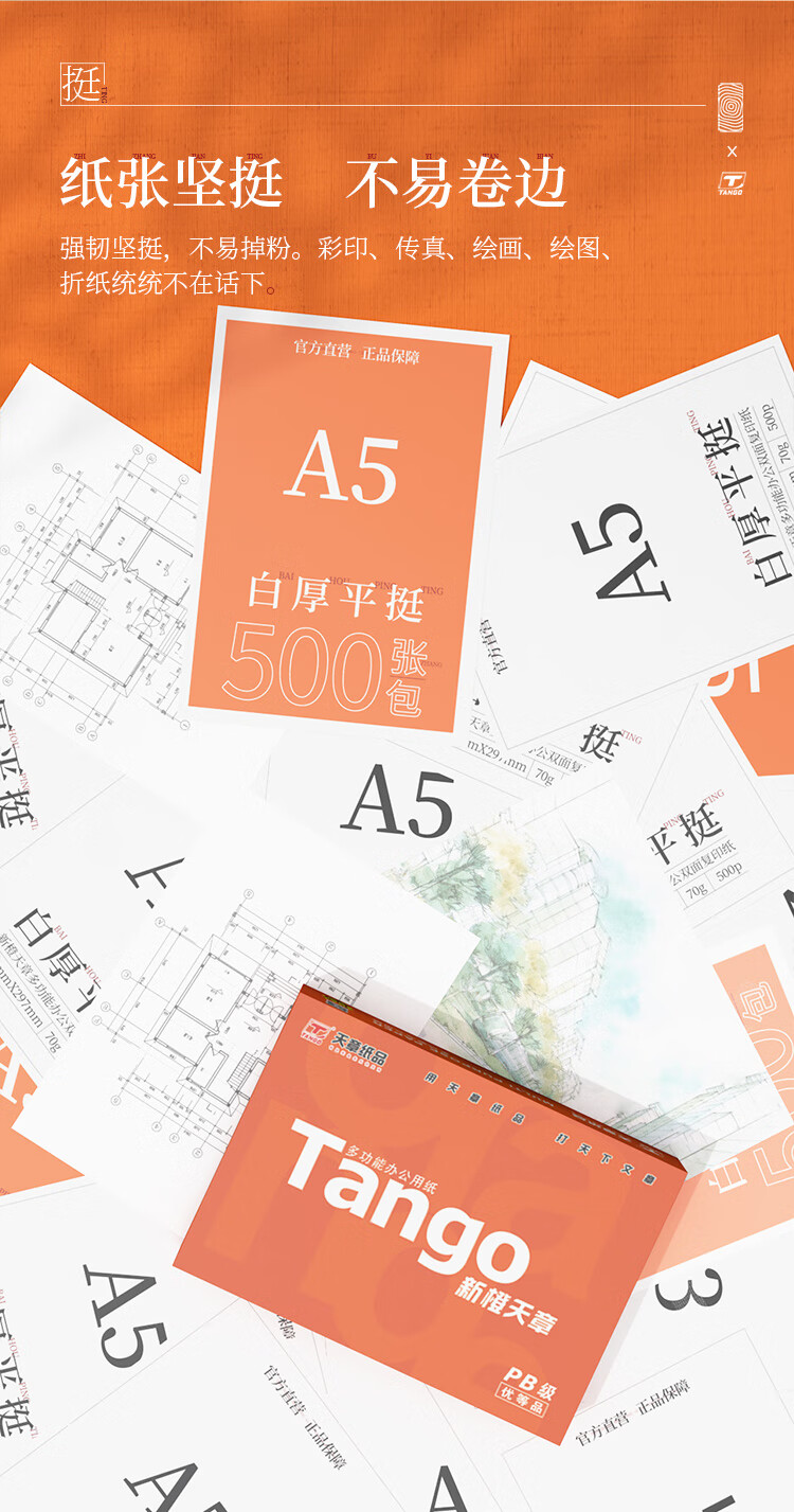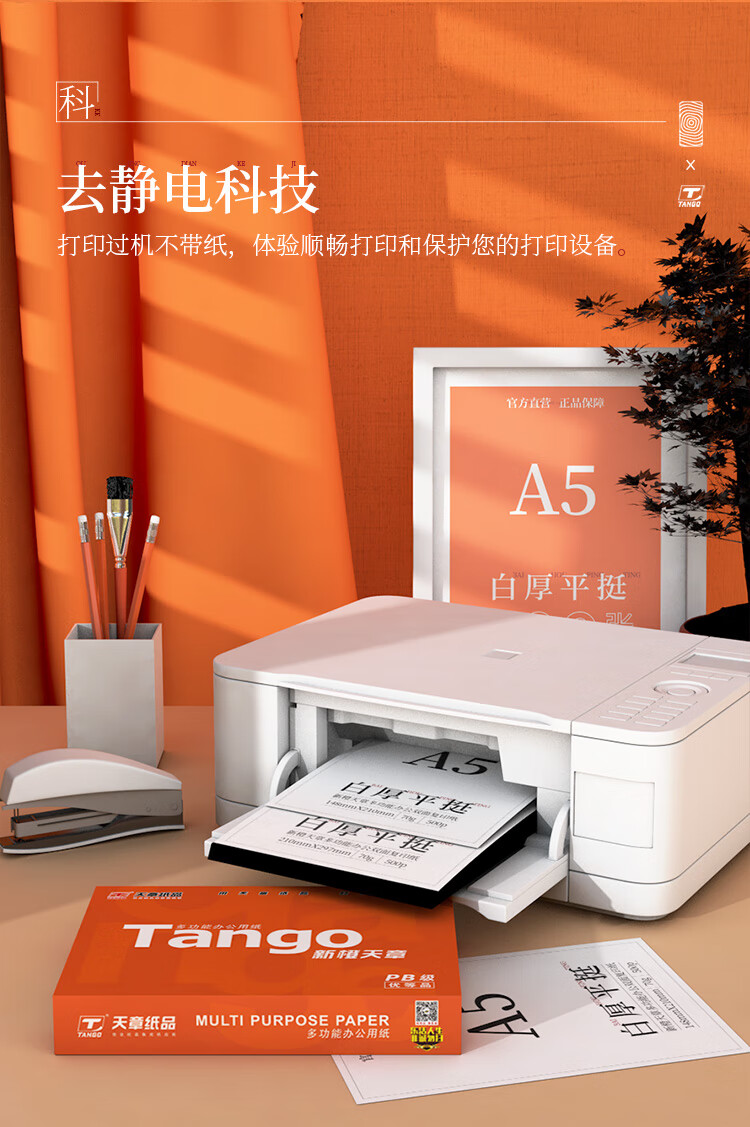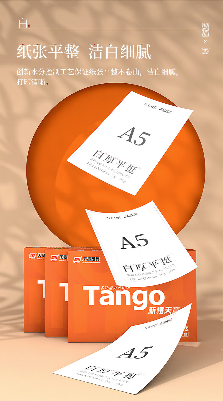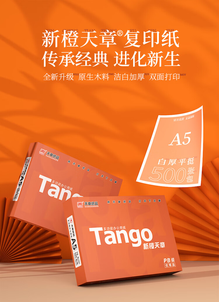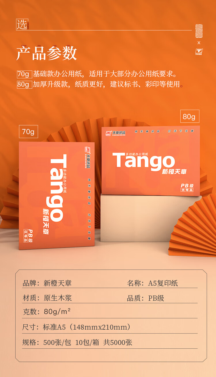 天章新橙天章A5打印纸80g500张*10包 数电发票电子发票 门诊处方笺空白复印纸5000张整箱(148*210mm)