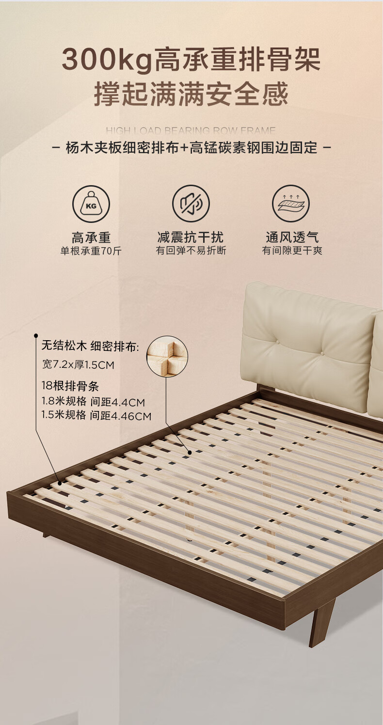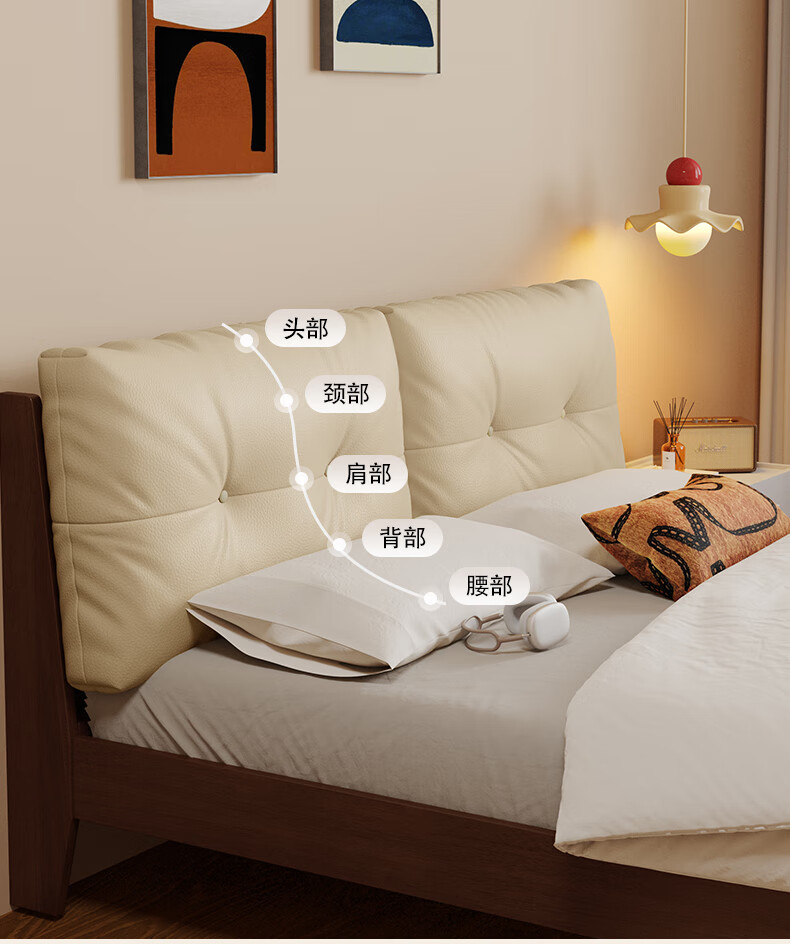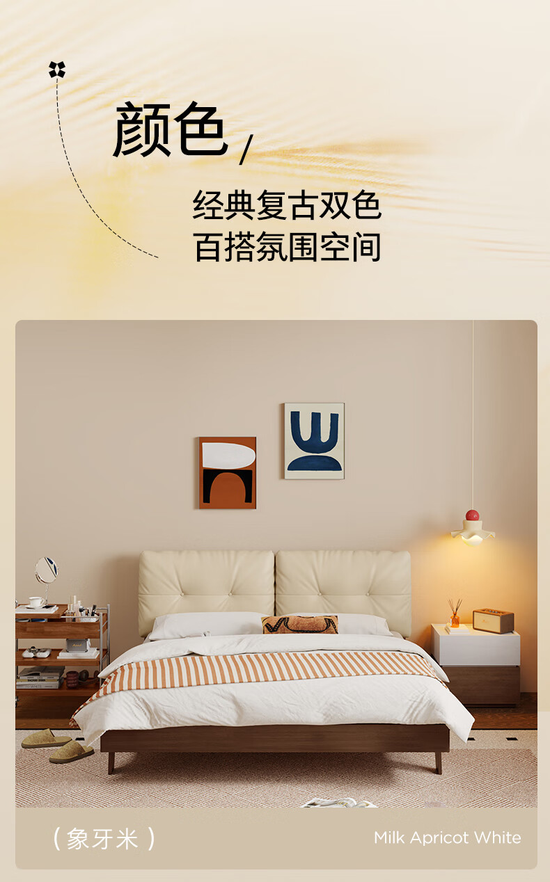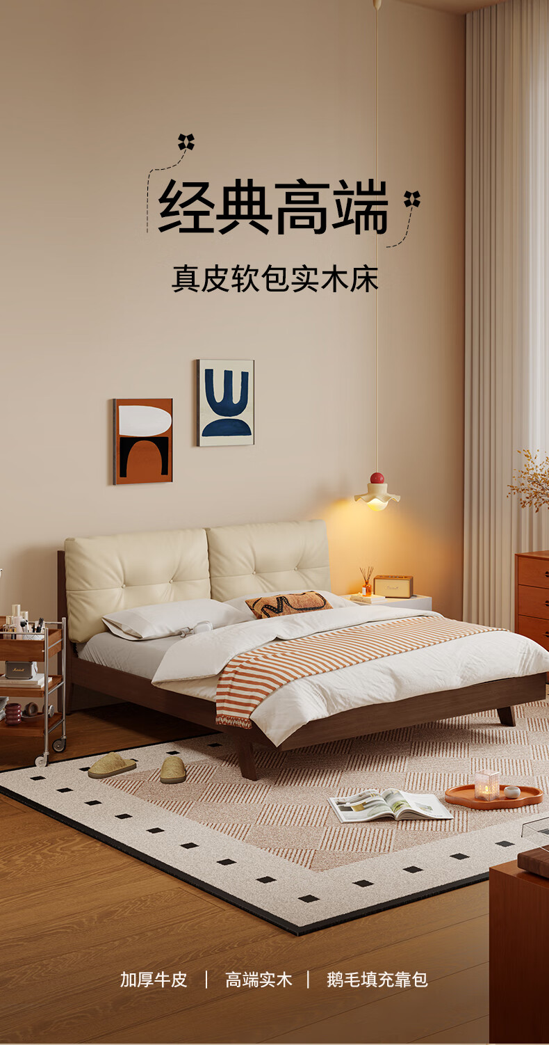 顾家家居(KUKA)现代简约高端大气主卧大床加厚牛皮真皮床实木床双人床鹅毛9238 【象牙米】旗舰高脚款1.8米