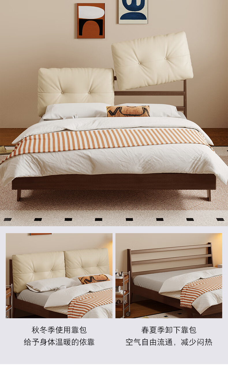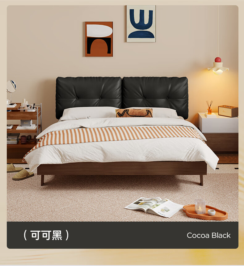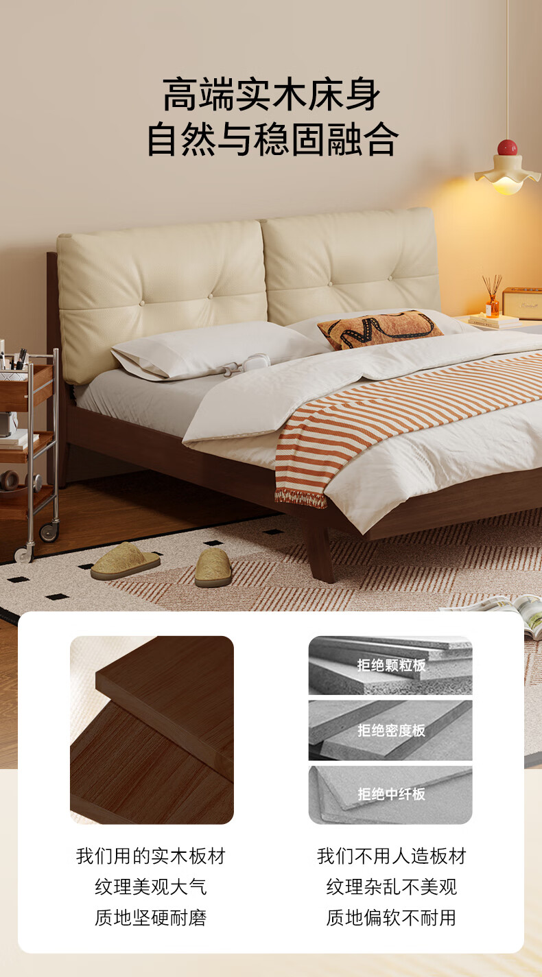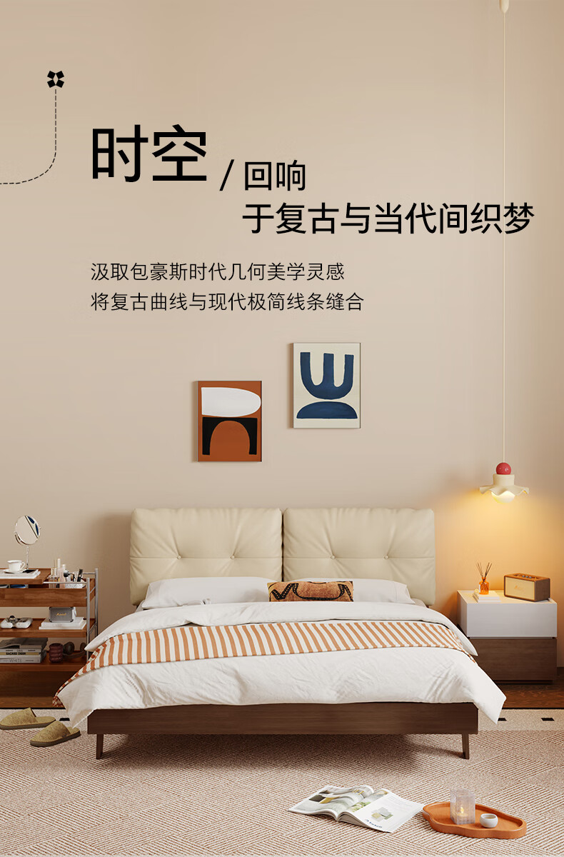 顾家家居(KUKA)现代简约高端大气主卧大床加厚牛皮真皮床实木床双人床鹅毛9238 【象牙米】旗舰高脚款1.8米