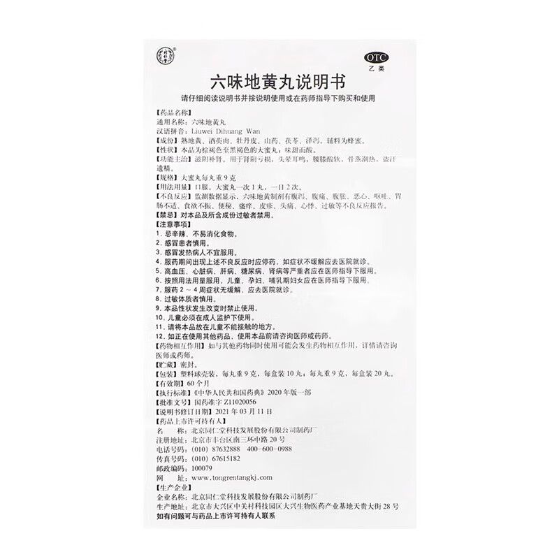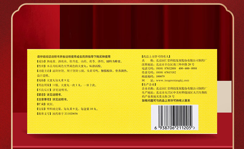 北京同仁堂 六味地黄丸 大蜜丸 9g*10丸*5盒 滋阴补肾 腰膝酸软 盗汗遗精