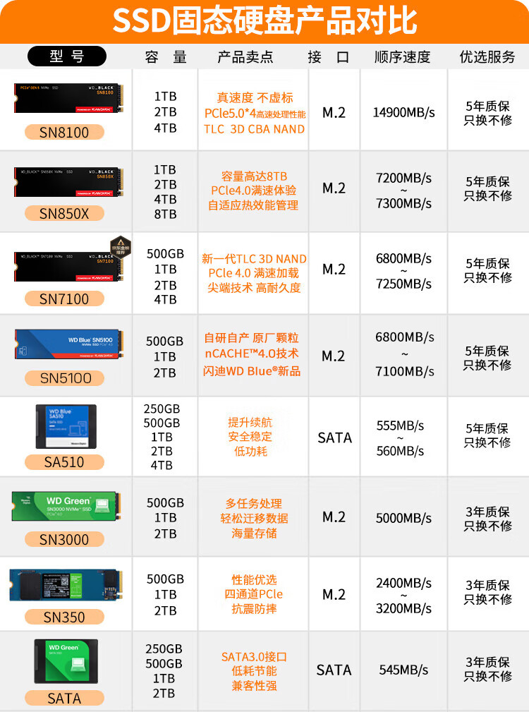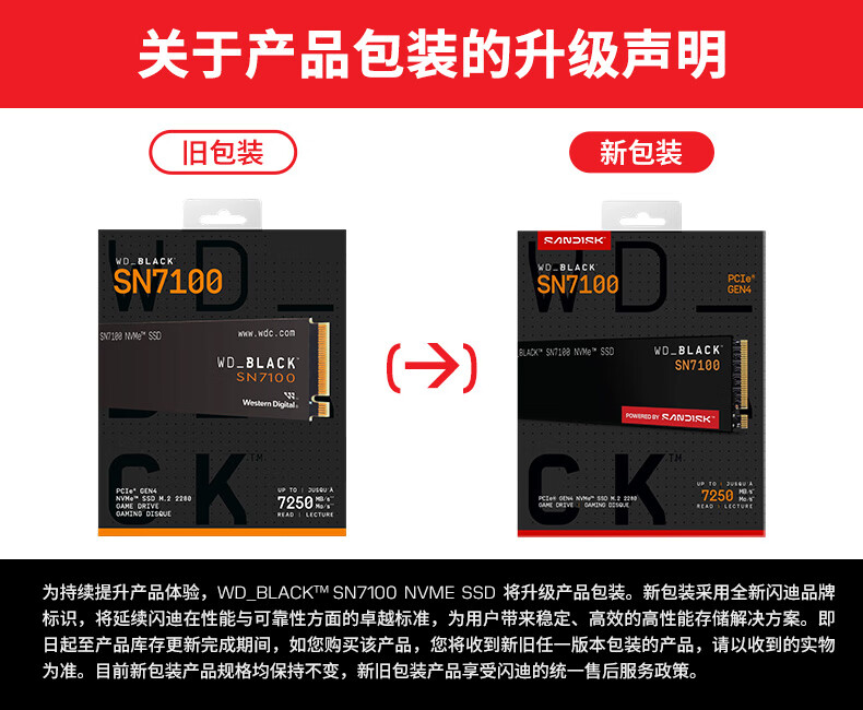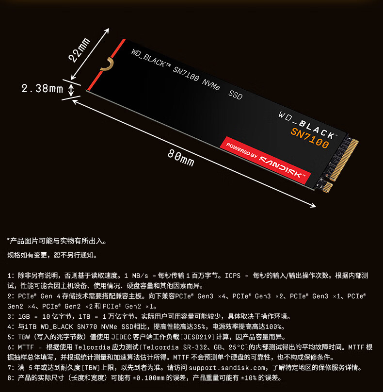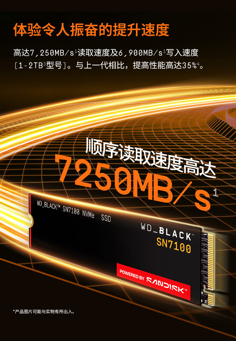 西部数据(WD)SSD固态硬盘M.2接口 SN7100 PCIe4.0 笔记本台式机固态硬盘 AI电脑配件 SN7100 1TB