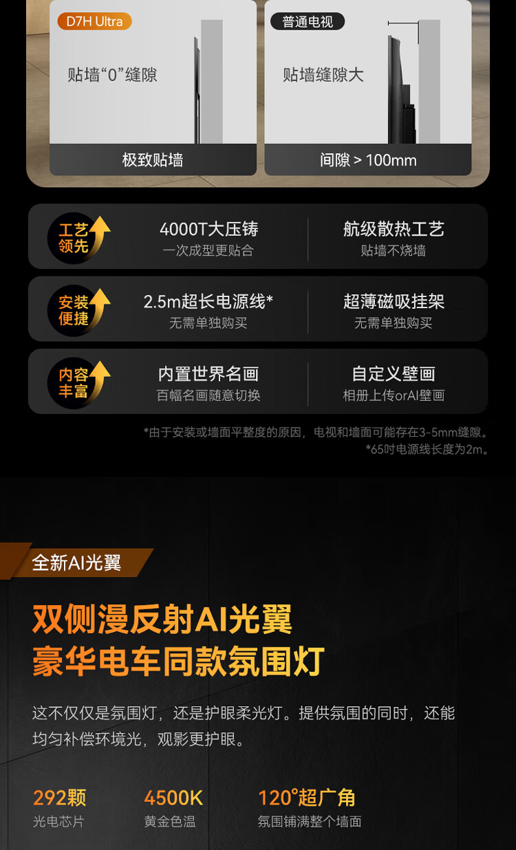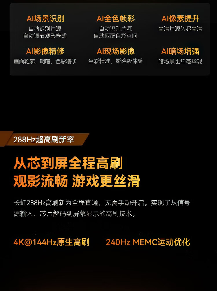 长虹85D7H Ultra【包安装】85英寸288Hz高刷智能护眼液晶壁纸壁画超薄电视机一级能效以旧换新国家补贴 85英寸