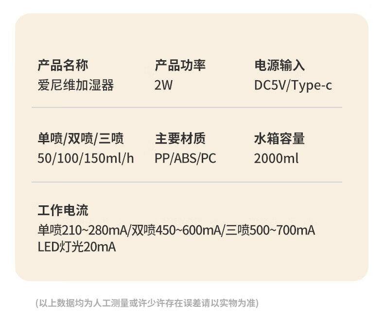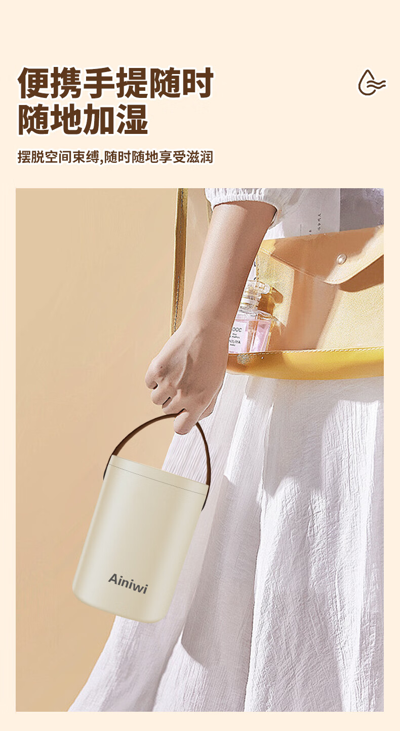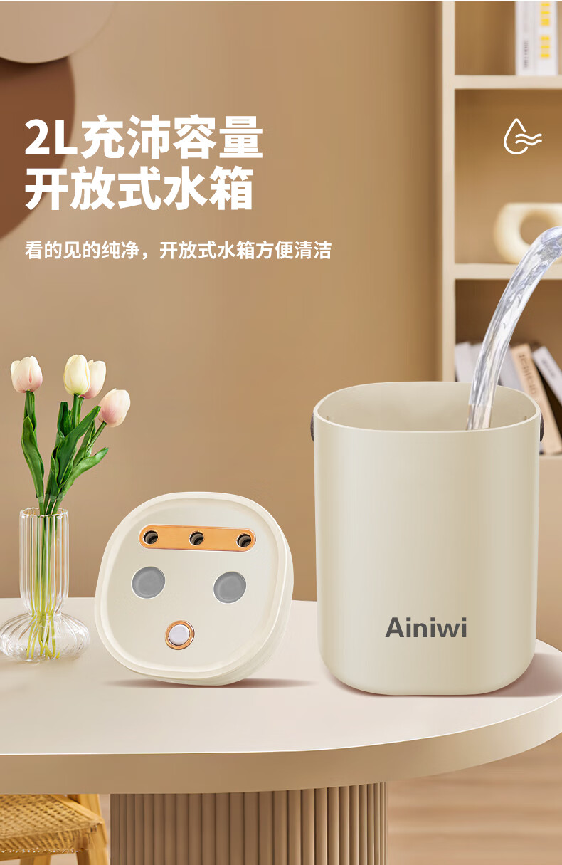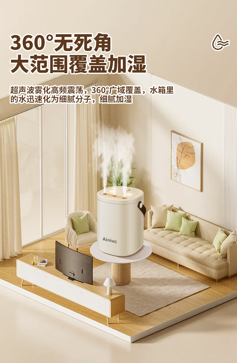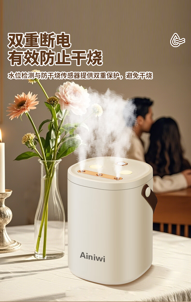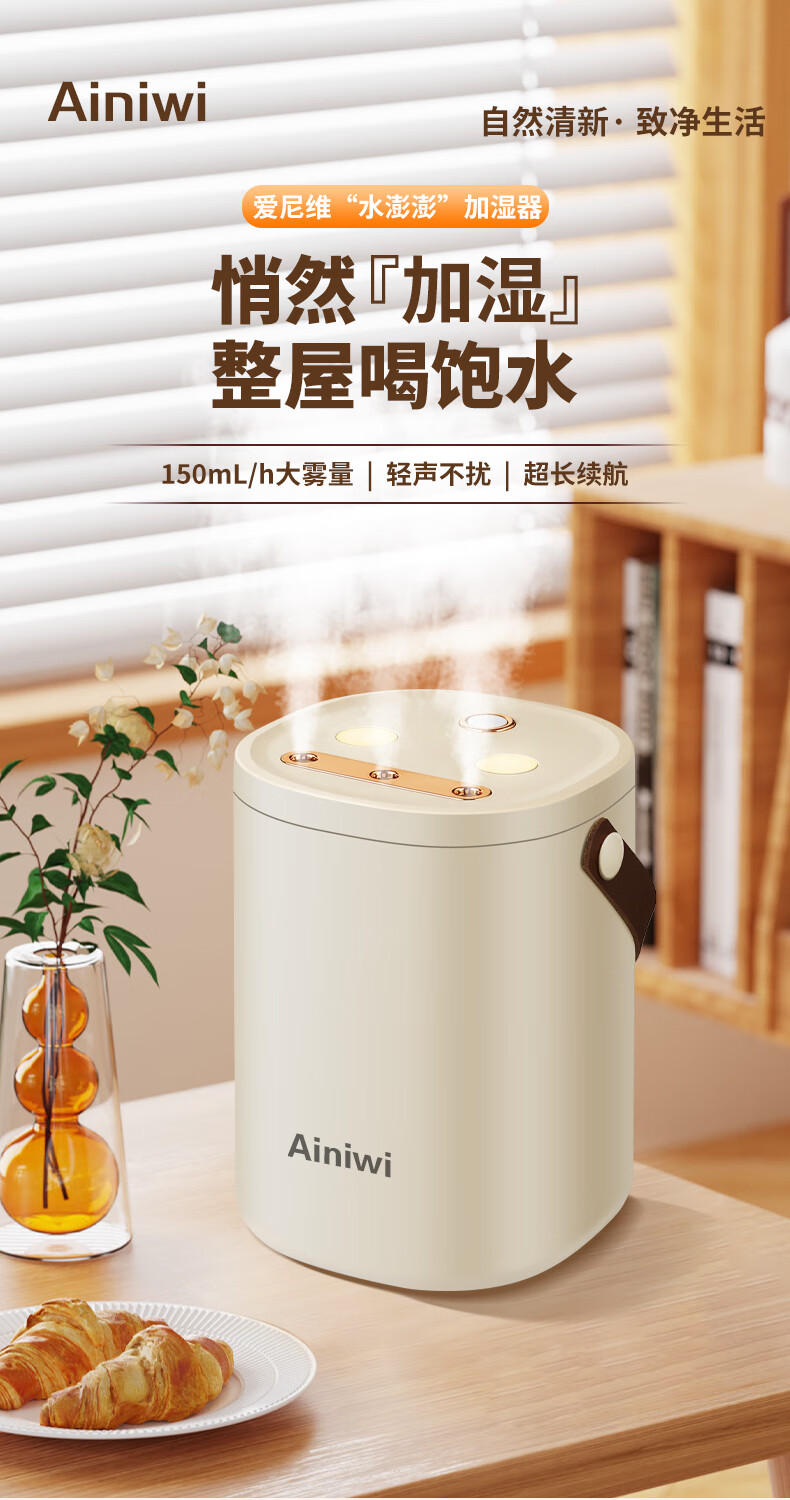 爱尼维(Ainiwi)加湿器家用桌面加湿机智能大容量香薰机静音大雾量办公室增湿器 三孔喷雾+夜灯【USB充电款】