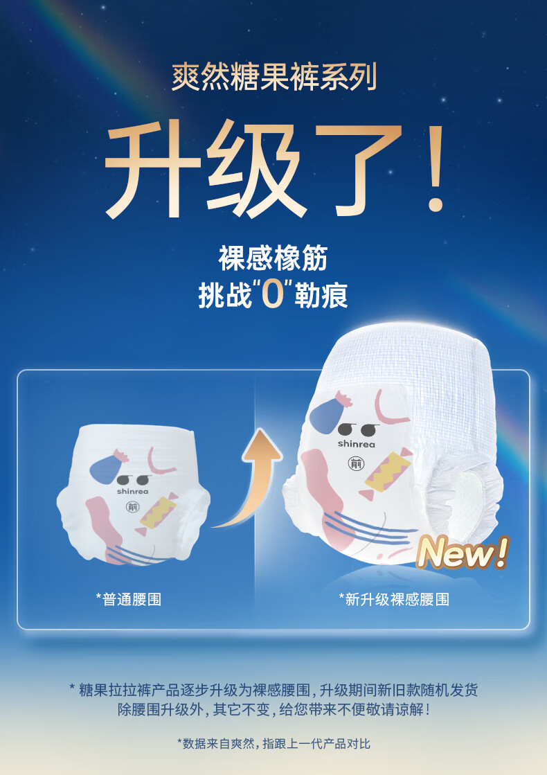 爽然糖果小内裤S7至柔透气成长裤 婴儿日用夜用拉拉裤宝宝秋冬尿不湿 拉拉裤 XXXL56片【17kg以上】