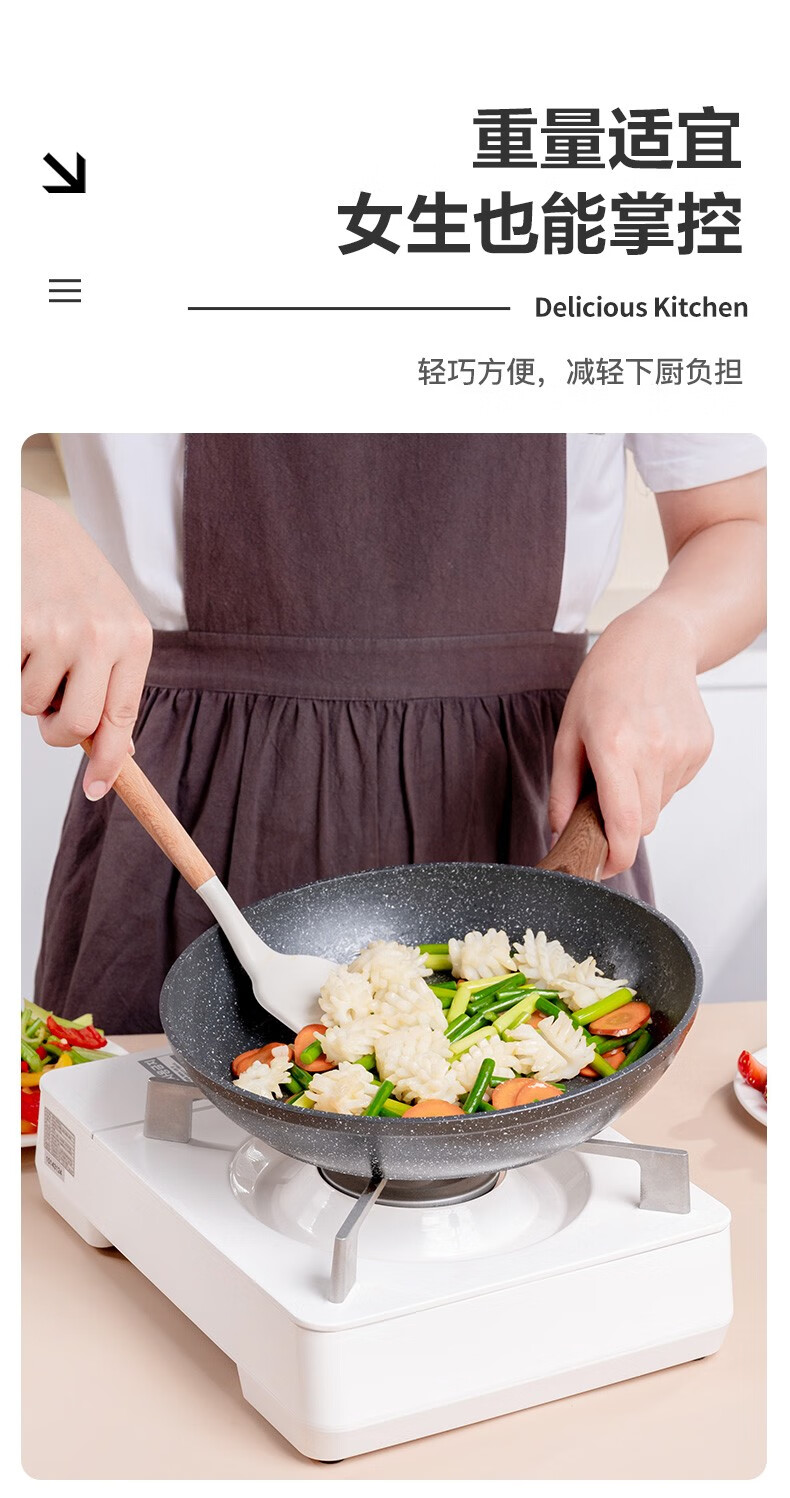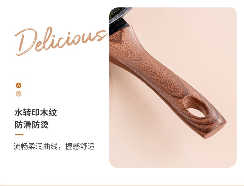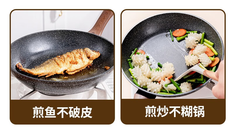乐扣乐扣平底锅煎锅麦饭石色煎蛋饼牛排不粘锅燃气电磁炉通用煎炒两用 24cm+锅盖【带硅胶铲】
