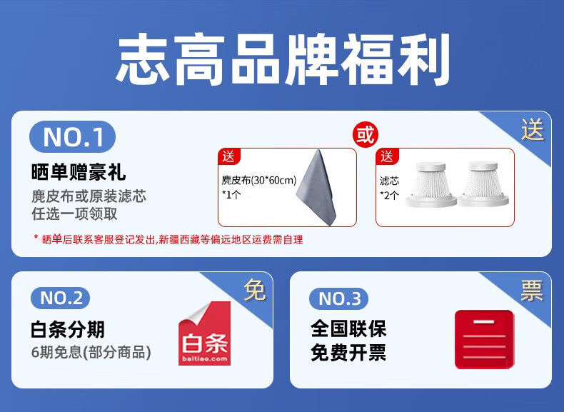 志高(CHIGO)无线车载吸尘器家用手持大吸力车用小型汽车桌面便携新能源随手吸 150W+吸抽充吹+滤芯*3+收纳袋