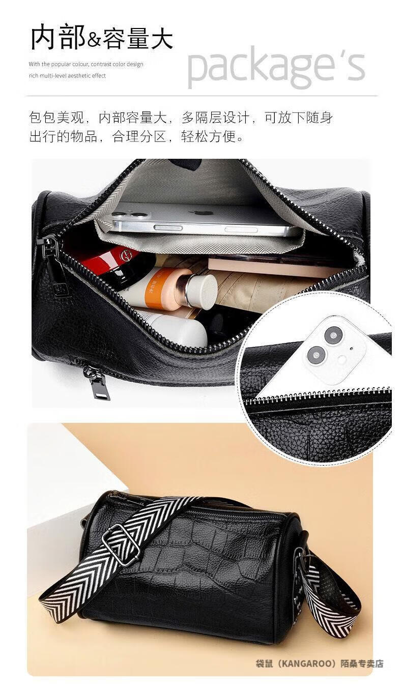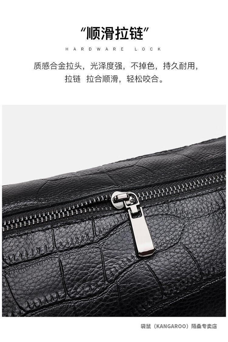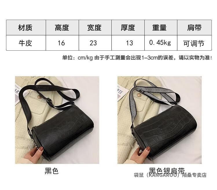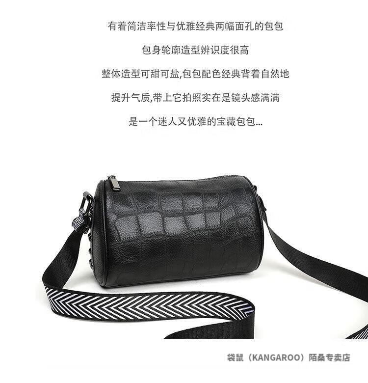 袋鼠(KANGAROO)真皮包包枕头包女夏2025新款时尚鳄鱼纹大容量单肩包宽肩带斜挎包 黑色