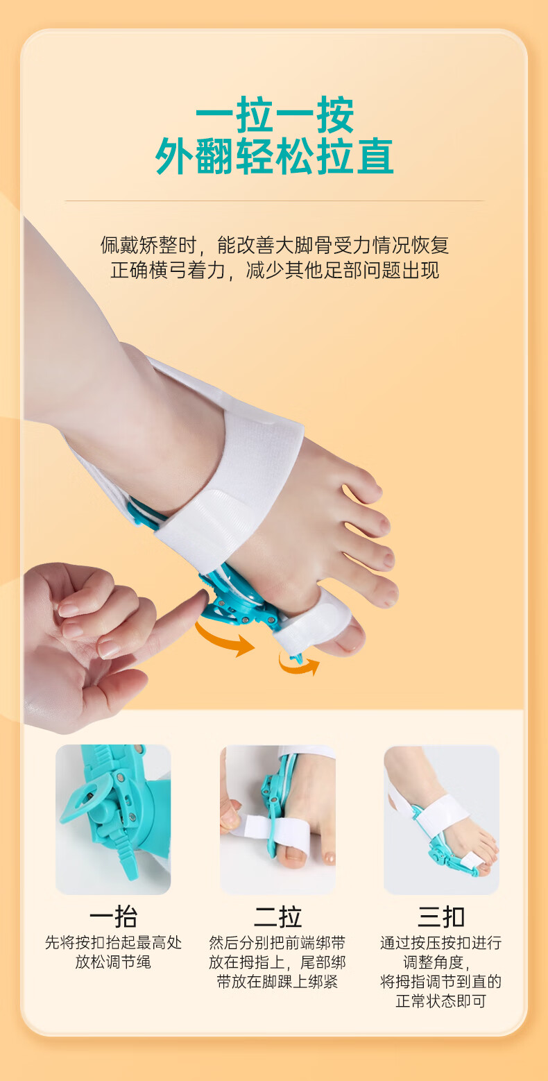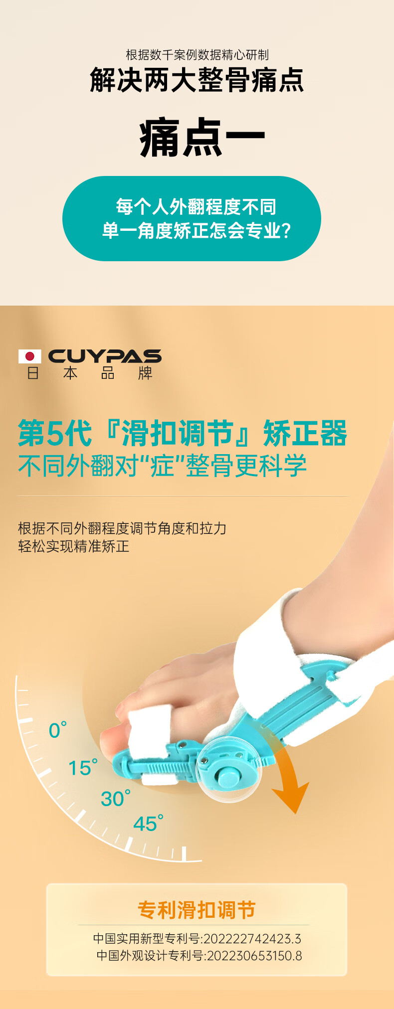 CUYPAS医用拇指外翻矫正器大拇指儿童成人脚趾可调节旋钮分趾固定器 蓝绿色 L【适用于男性39-44码】